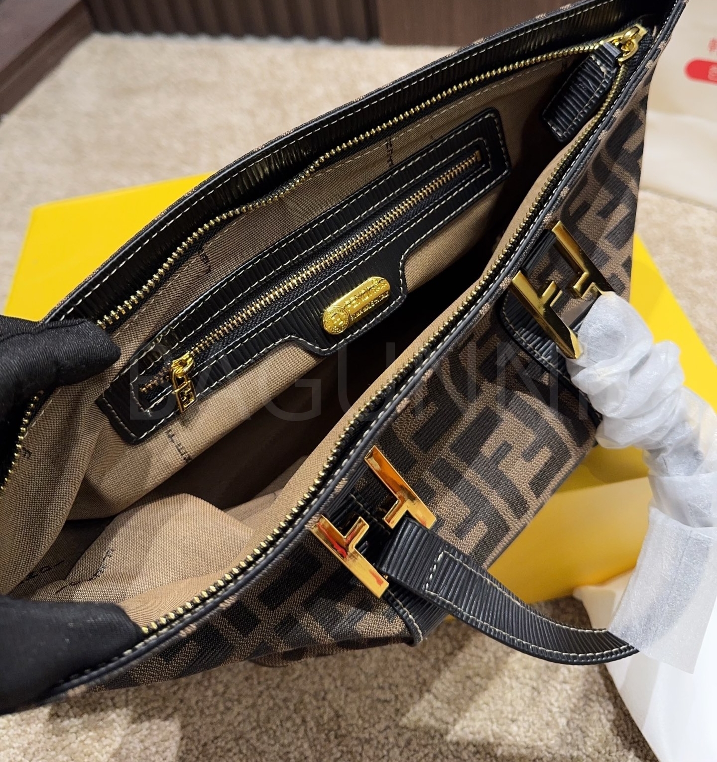 펜디 만두백입니다. 골드 톤이 어우러져 브랜드 특유의 분위기를 편하게 즐기기 좋습니다.