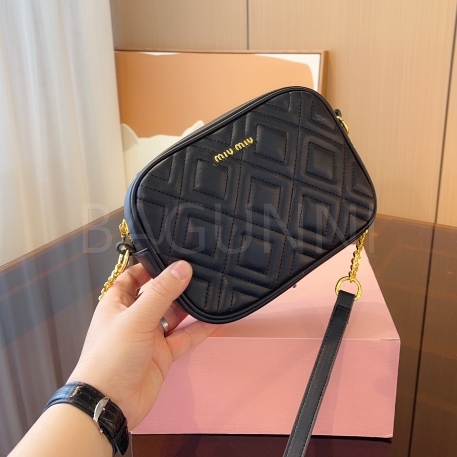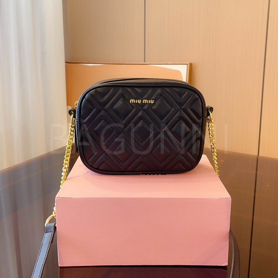미우미우 마테라쎄 카메라백입니다. 가죽 특유의 질감이 자연스럽게 살아 있으며 브랜드 특유의 분위기를 편하게 즐기기 좋습니다.