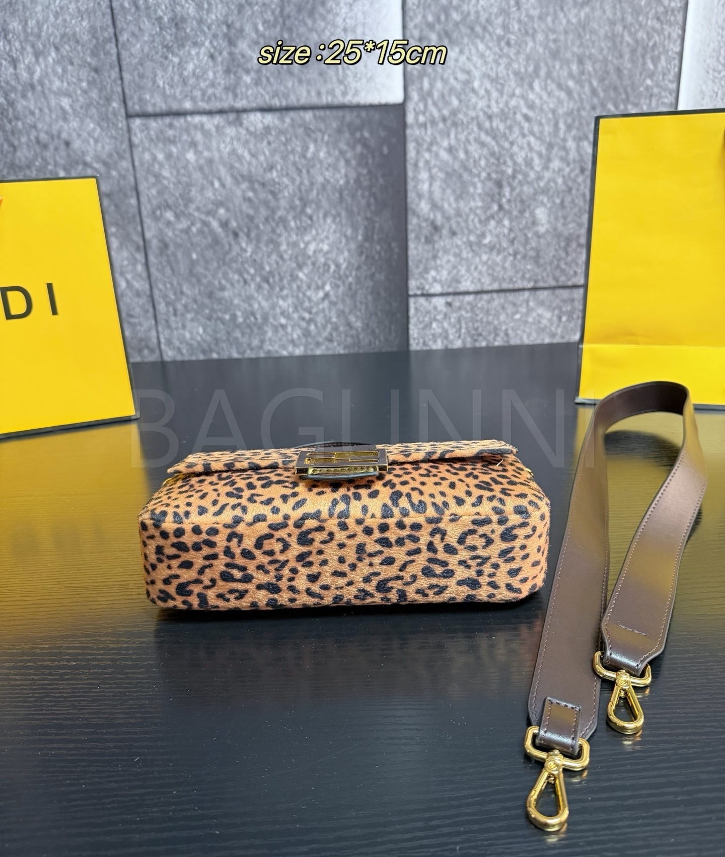 펜디 레오파드 미니 바게트백