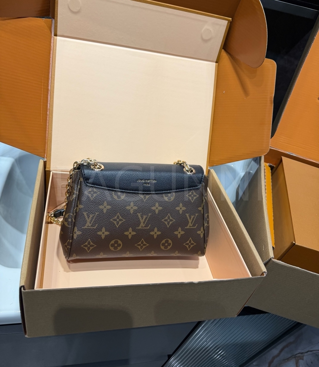 모노그램 패턴, 탑핸들 디테일이 조화롭게 어우러져 완성도를 높여줍니다