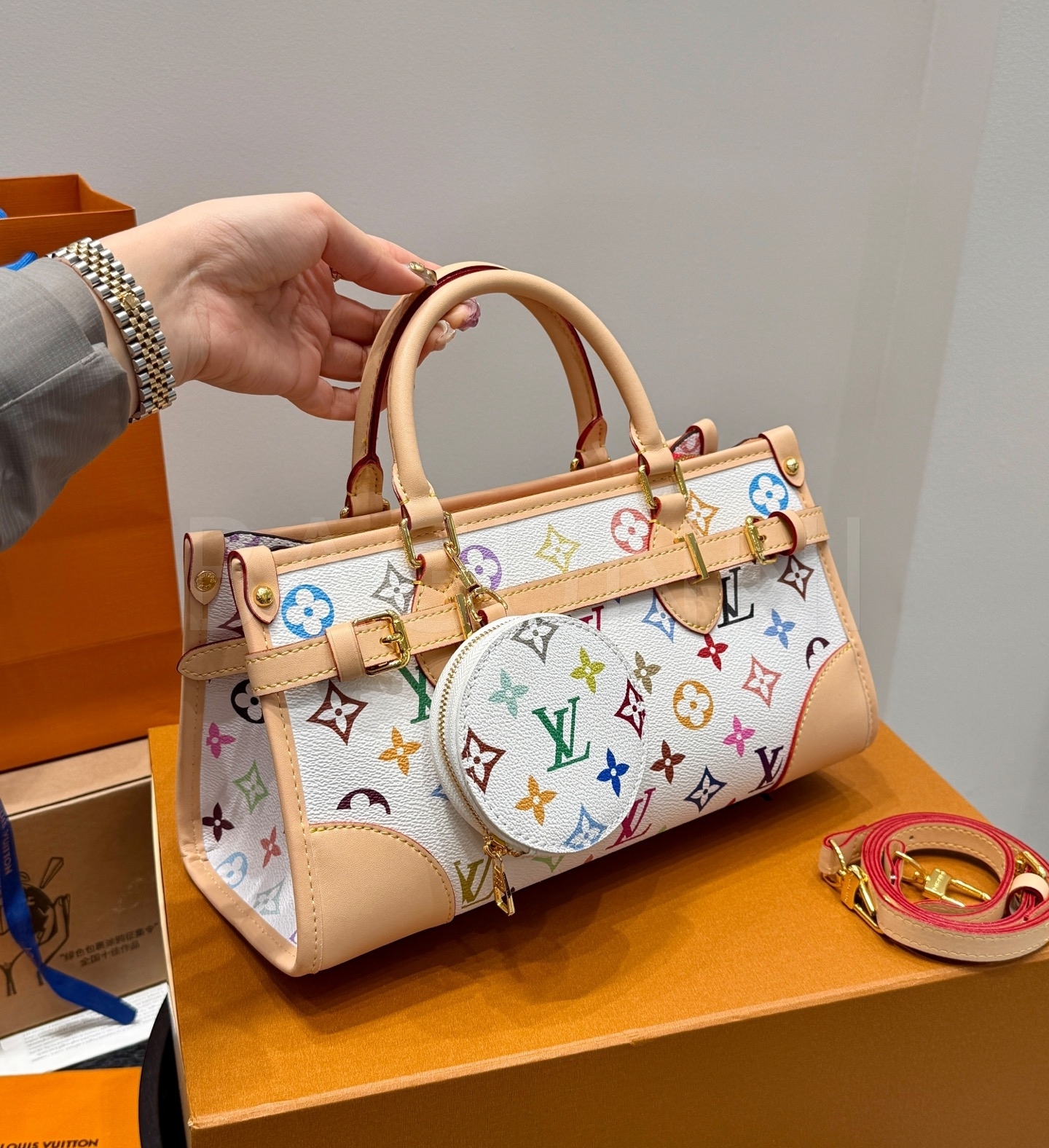 루이비통 특유의 세련된 분위기가 돋보이는 루이비통 멀티컬러 탑핸들 숄더백입니다.