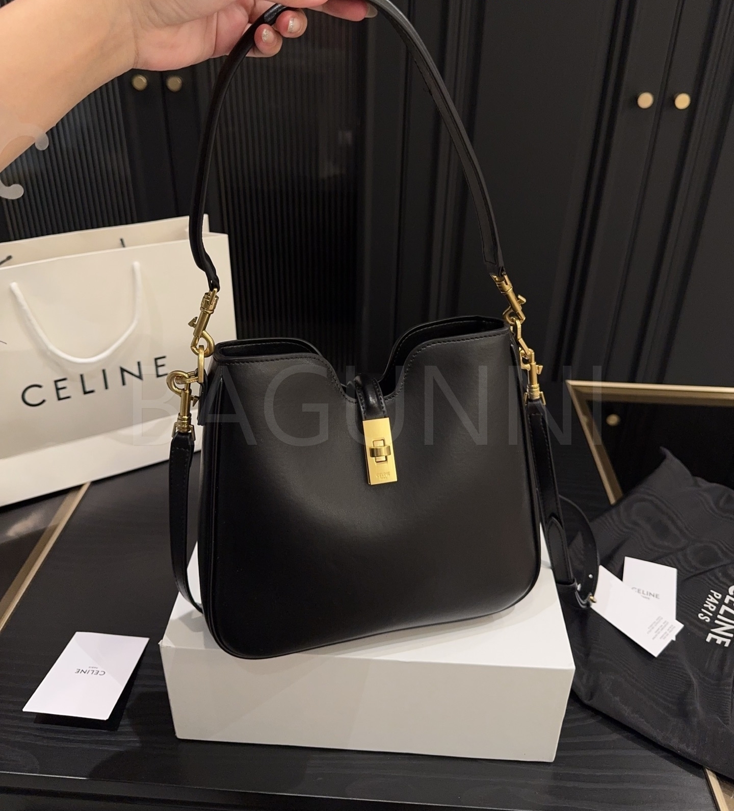 셀린느 카밀 숄더백입니다. 가죽 특유의 질감이 자연스럽게 살아 있으며 브랜드 특유의 분위기를 편하게 즐기기 좋습니다.