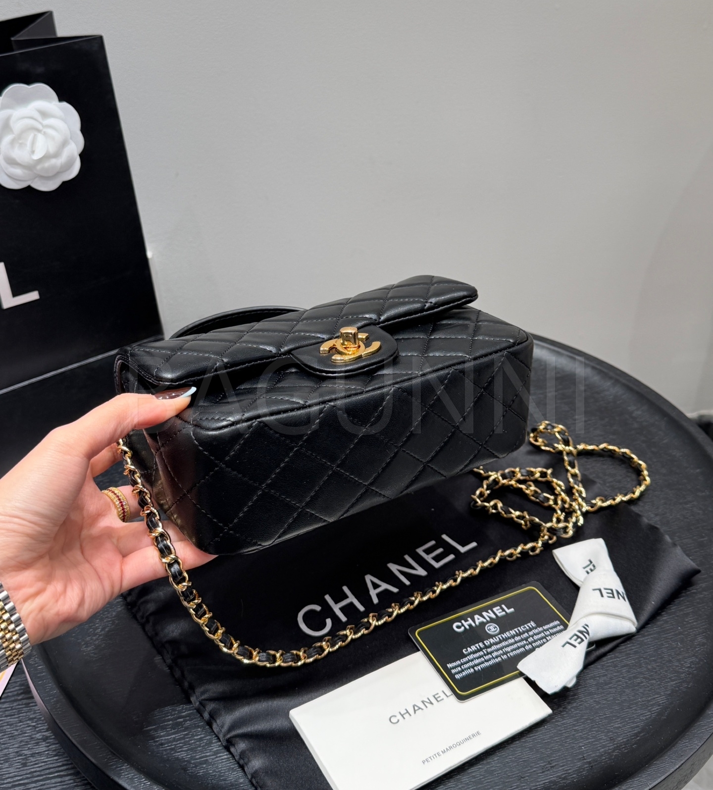세련된 무드가 돋보이는 샤넬 클래식 플랩 미니백입니다.