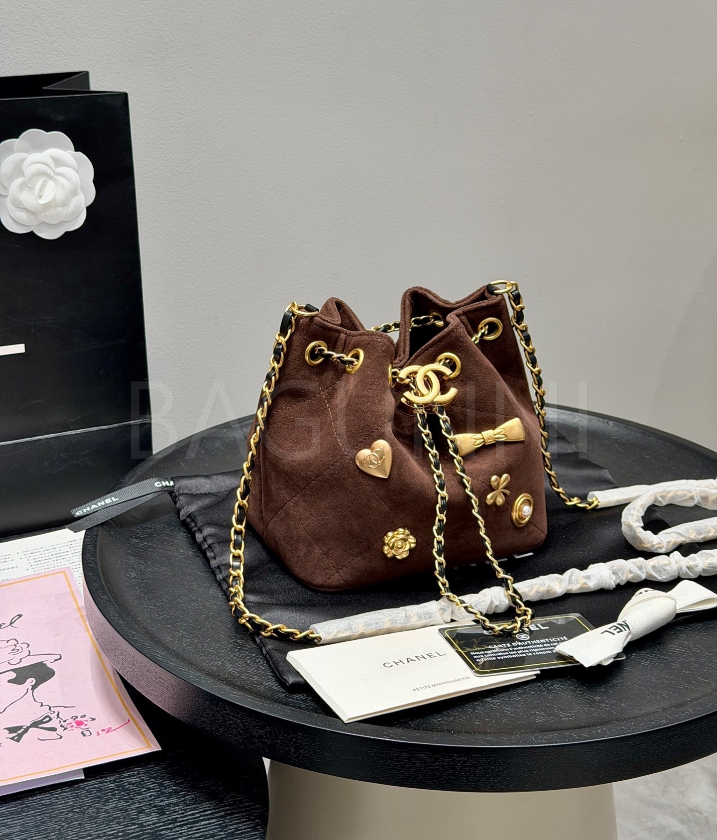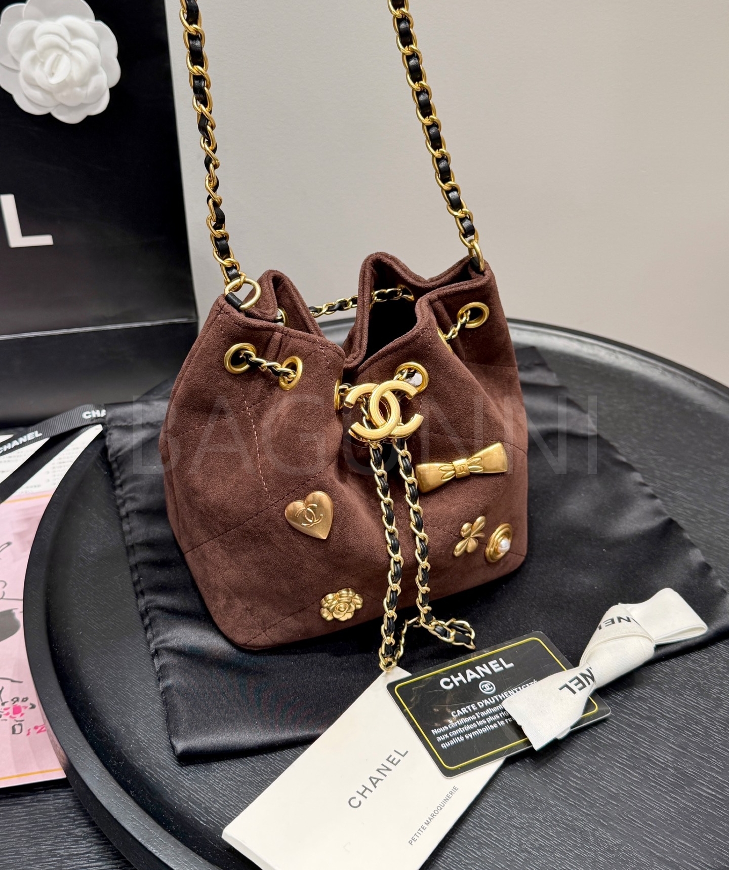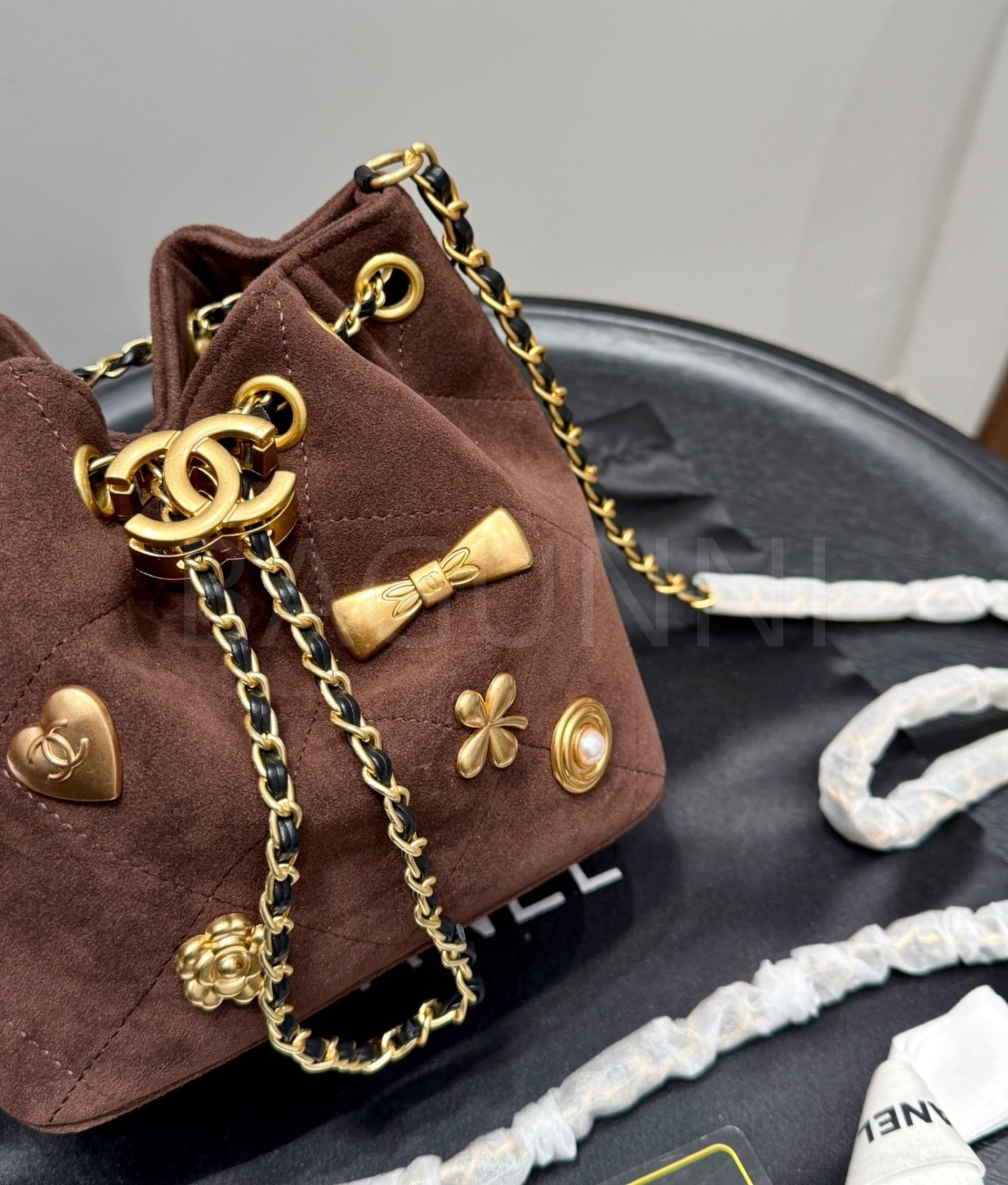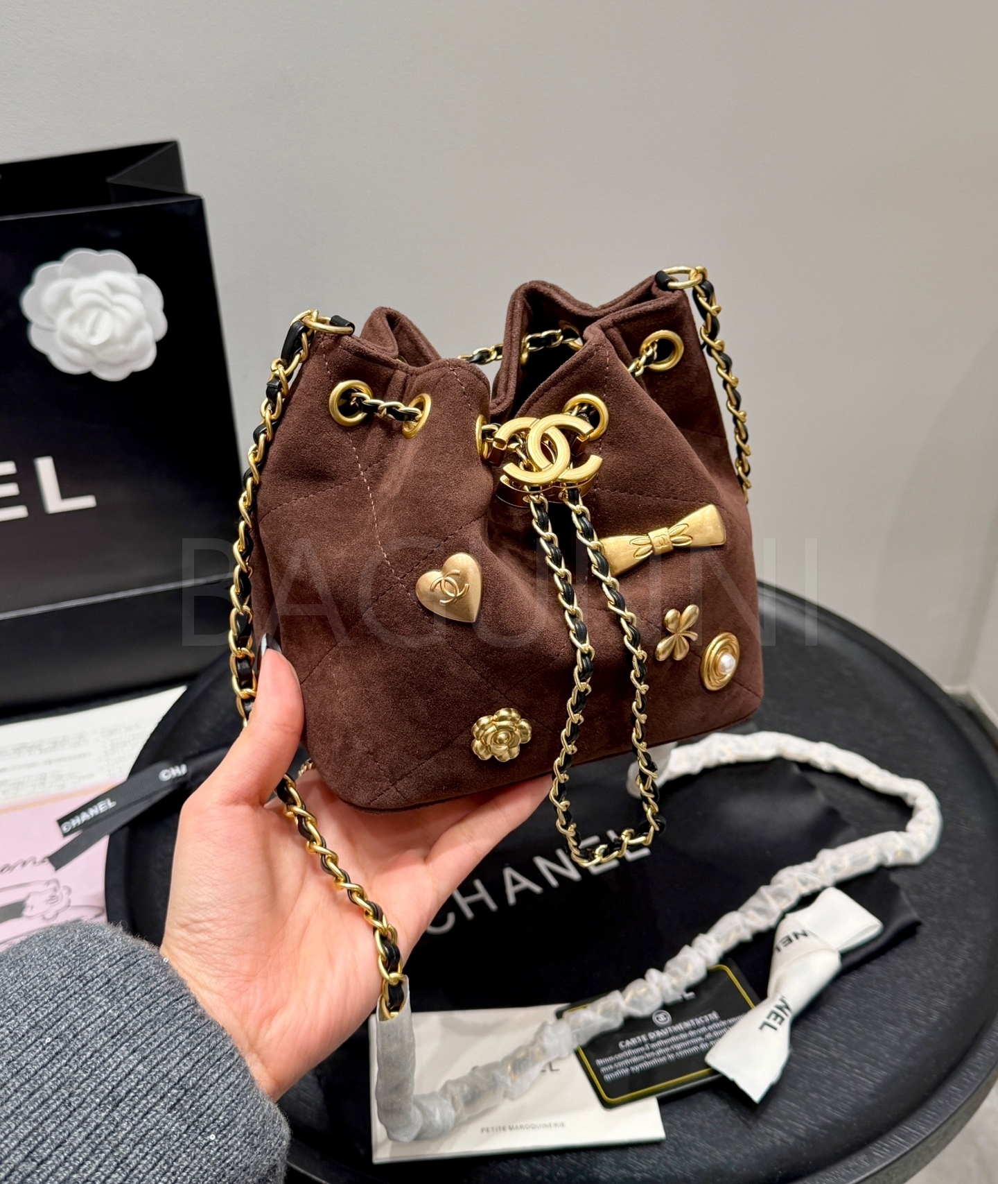 샤넬 보우 드로스트링 버킷 백은 세련된 실루엣을 담은 아이템입니다.
