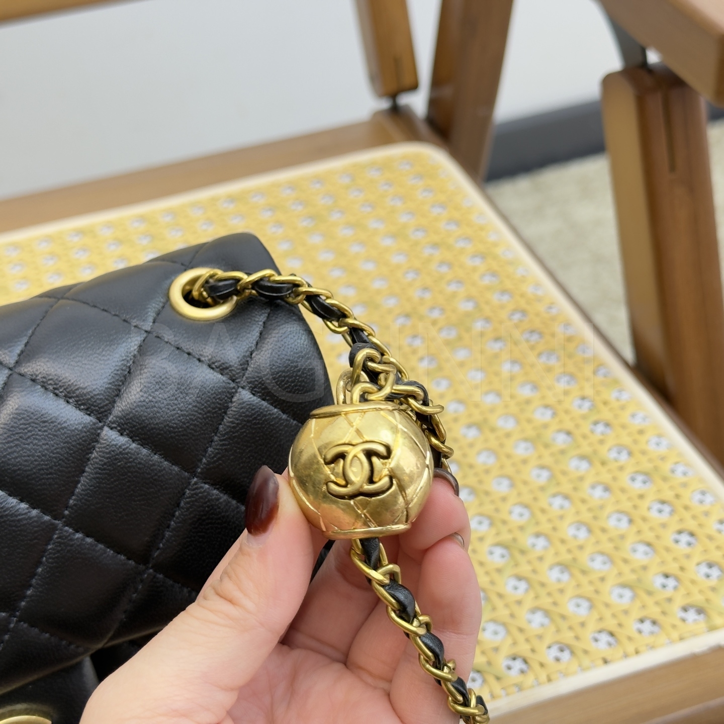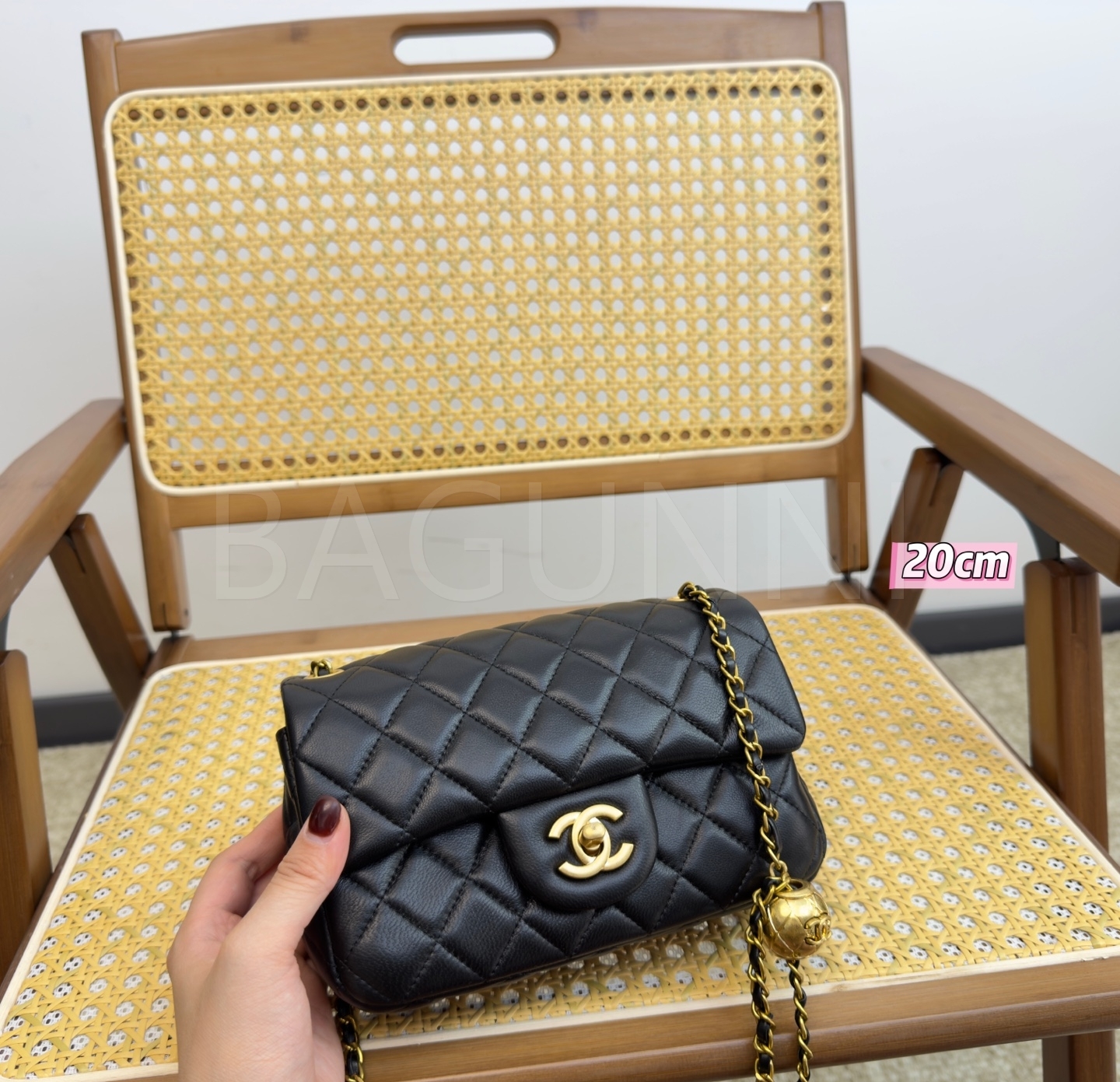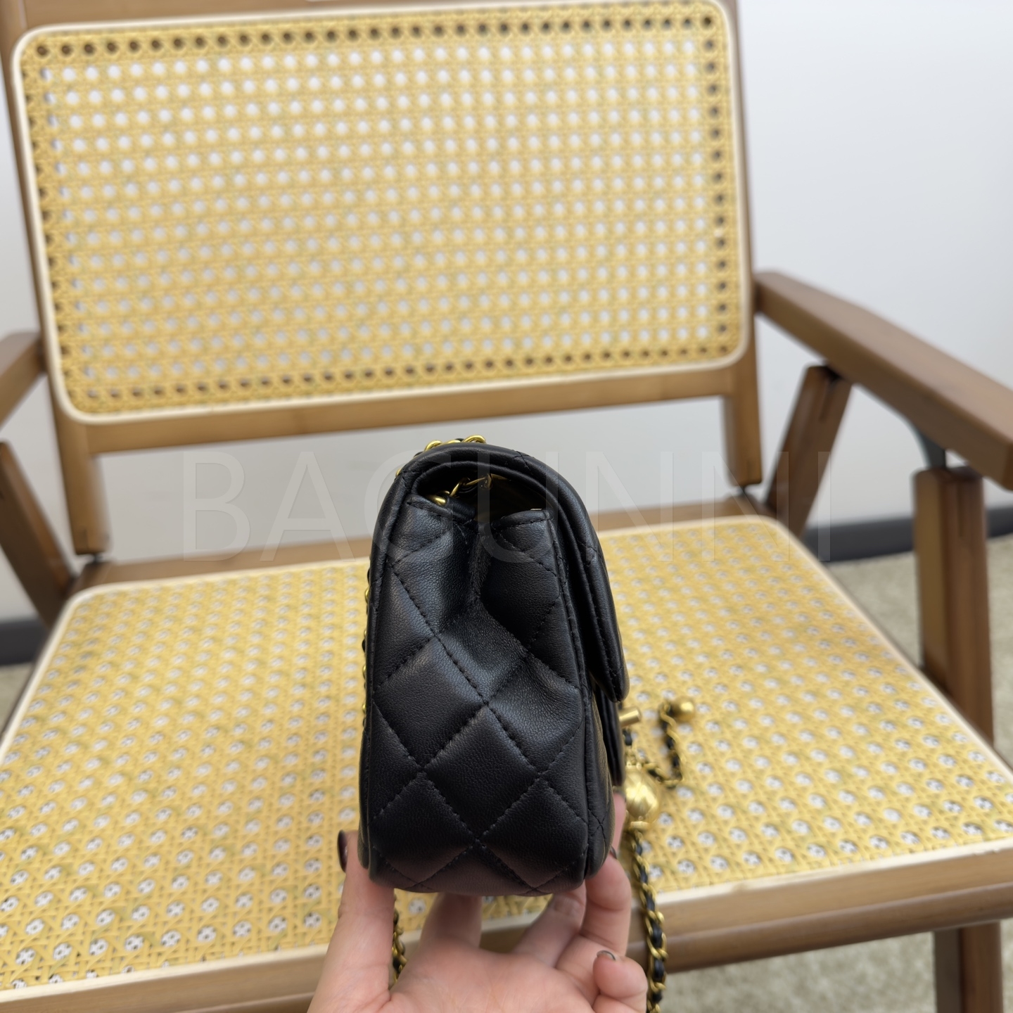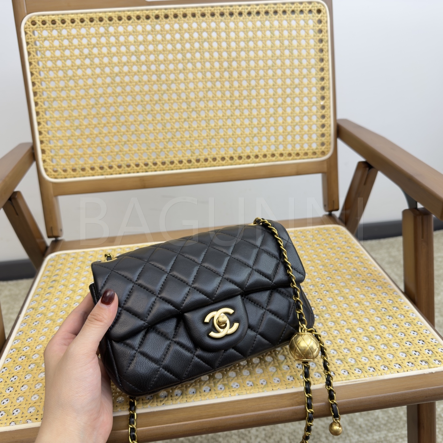 램스킨 특유의 매력이 돋보이는 샤넬 금볼 스퀘어 플랩 백입니다.