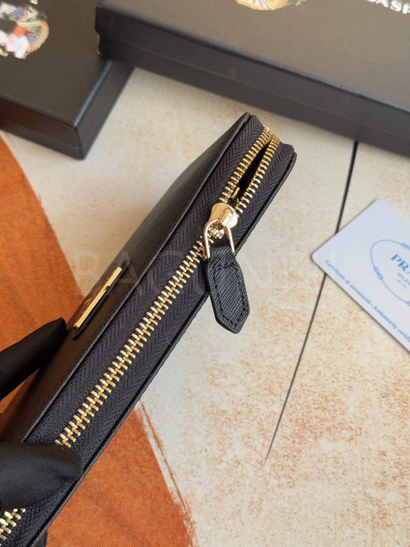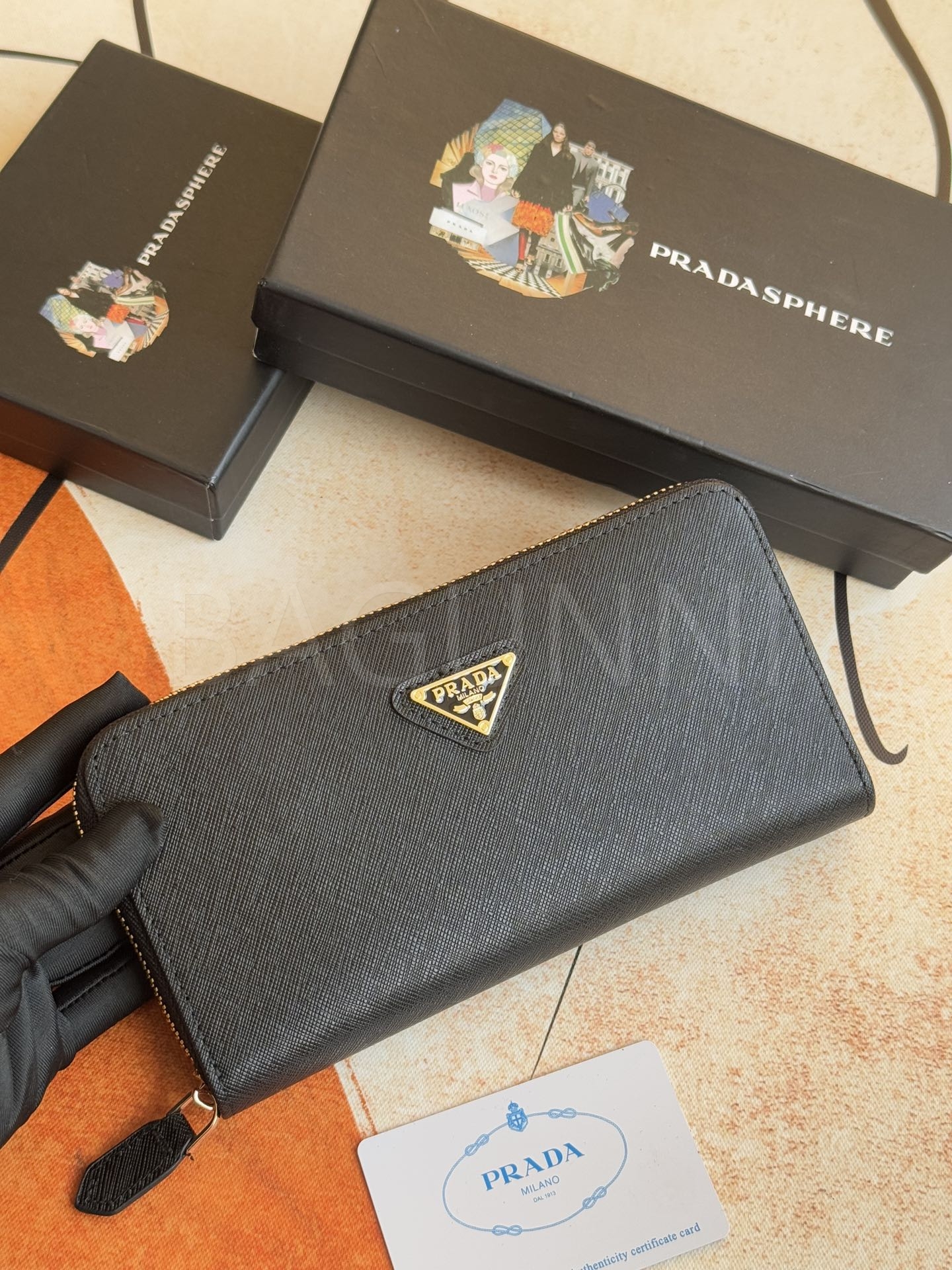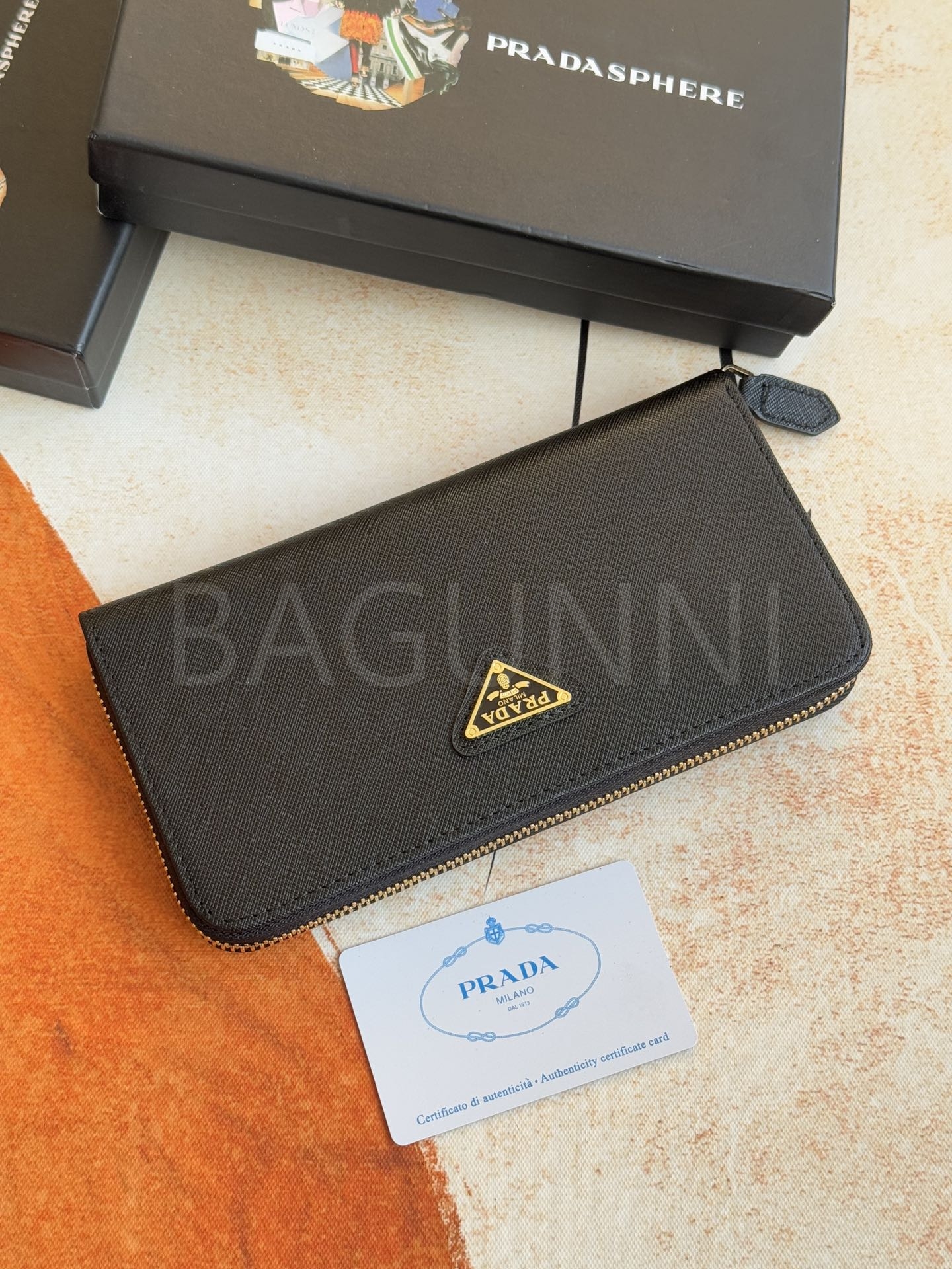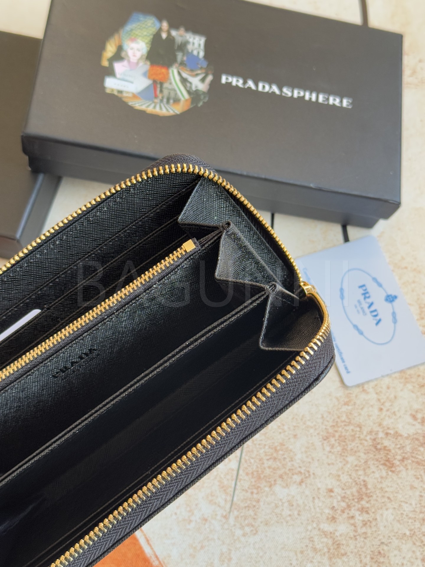 사피아노 질감이 깔끔하게 살아있는 프라다 사피아노 지퍼 장지갑입니다.
