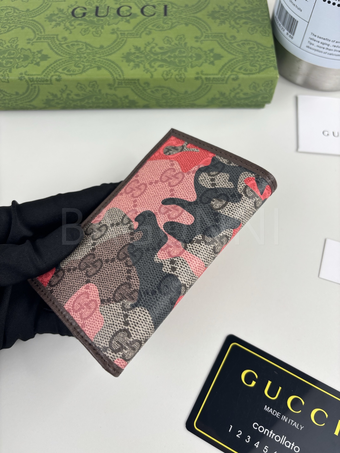 구찌 특유의 무드가 자연스럽게 살아있는 장지갑입니다.
