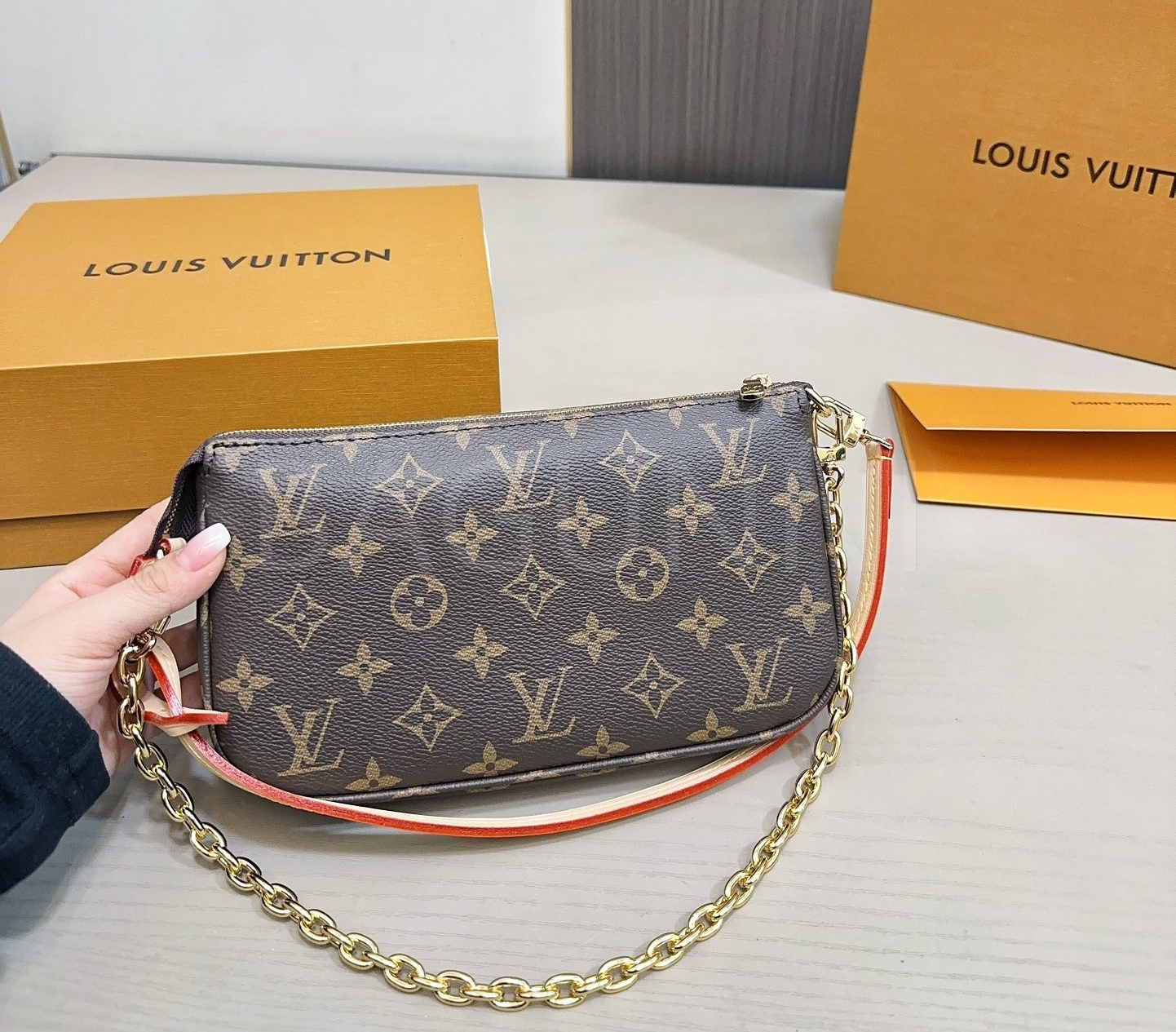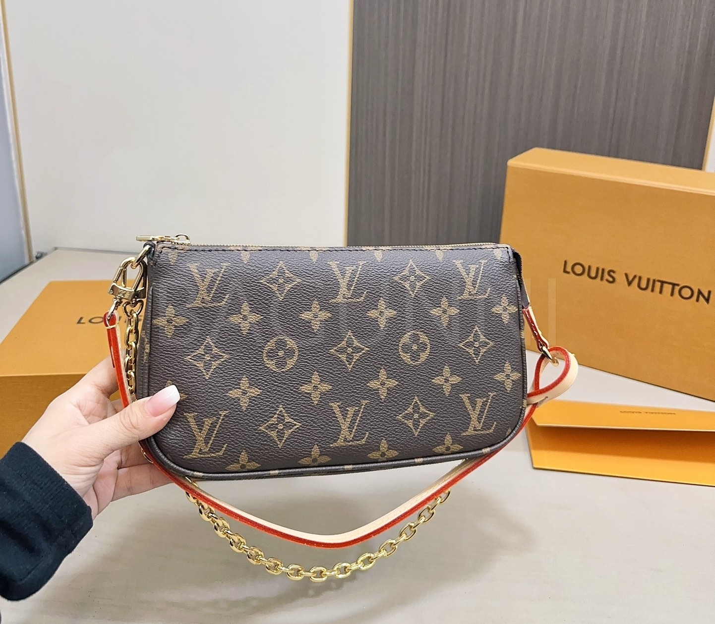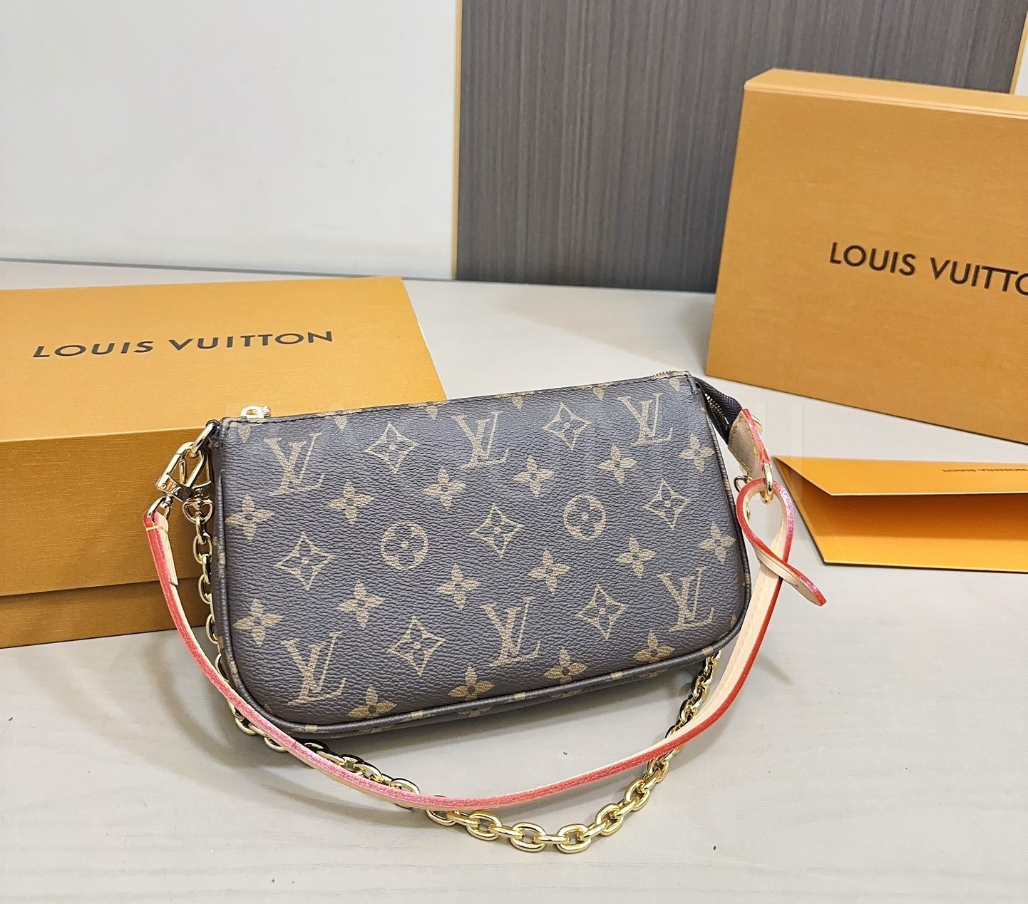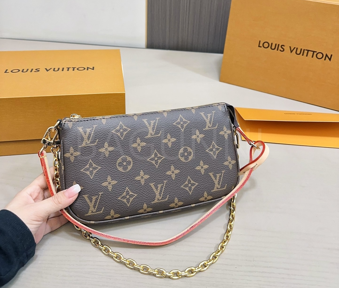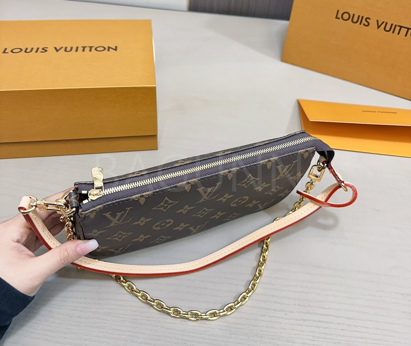 클래식한 캔버스 무드가 돋보이는 루이비통 숄더 파우치입니다.