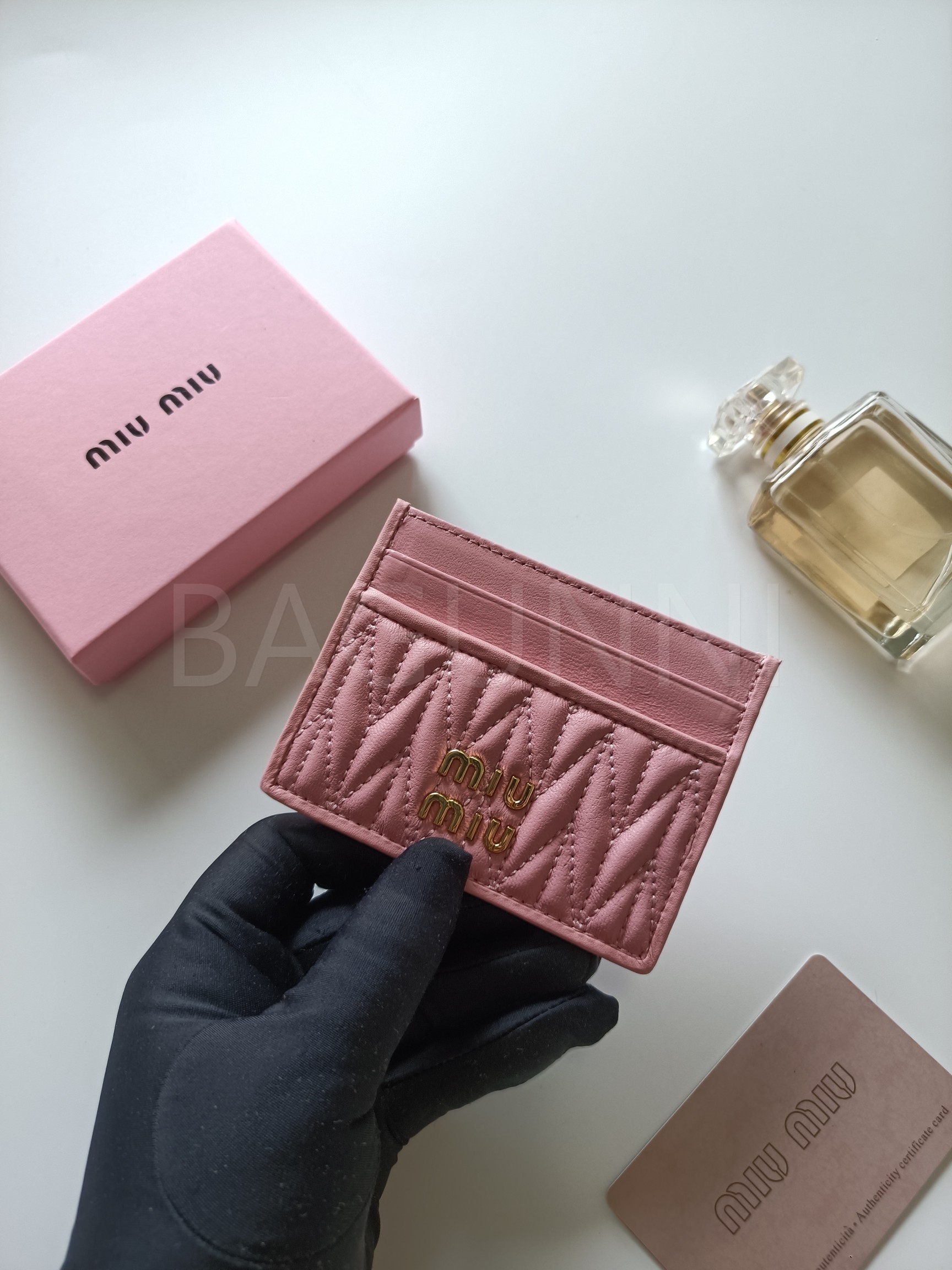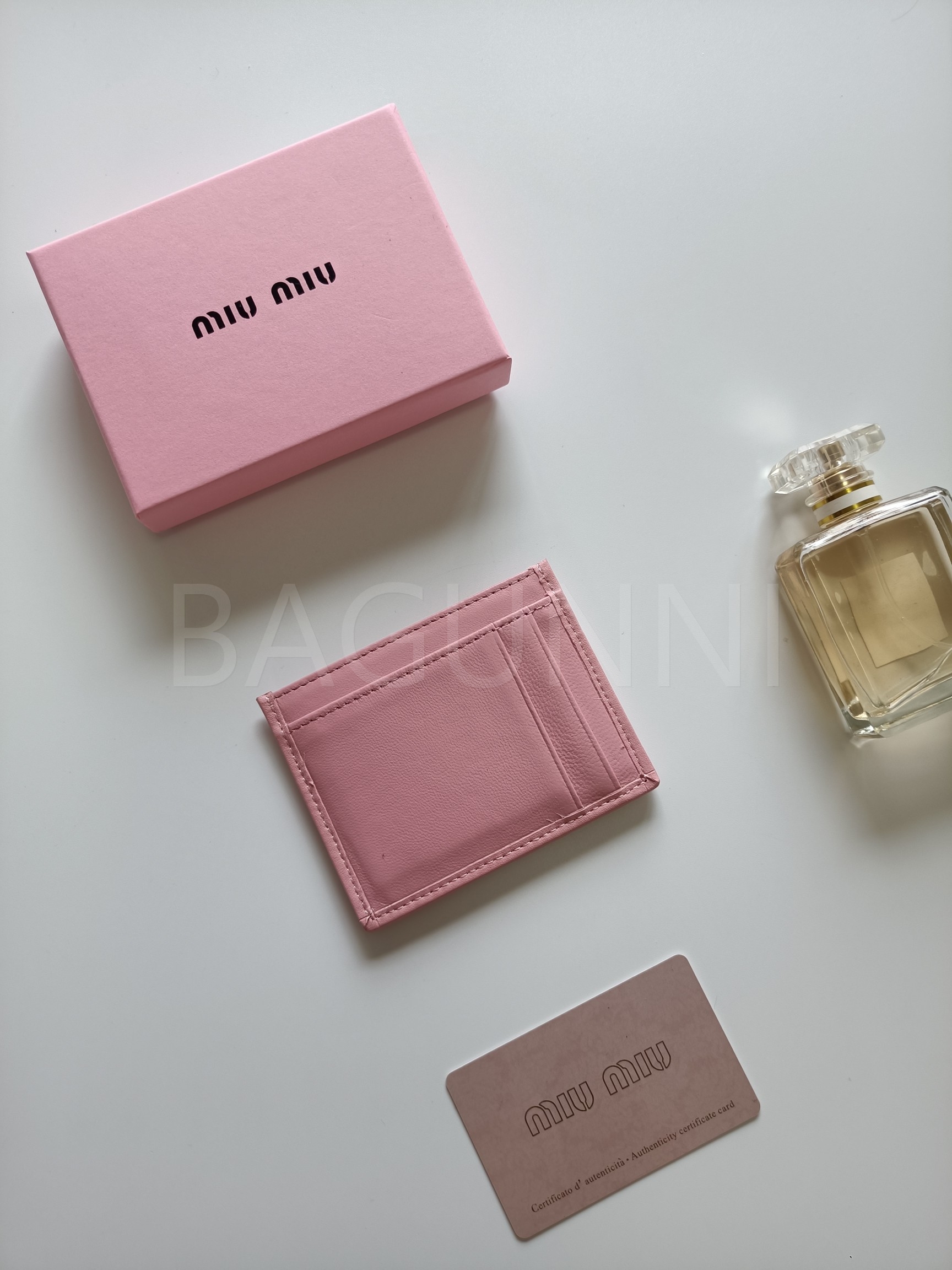 마테라쎄 가죽의 질감이 돋보이는 미우미우 마테라쎄 카드지갑입니다.