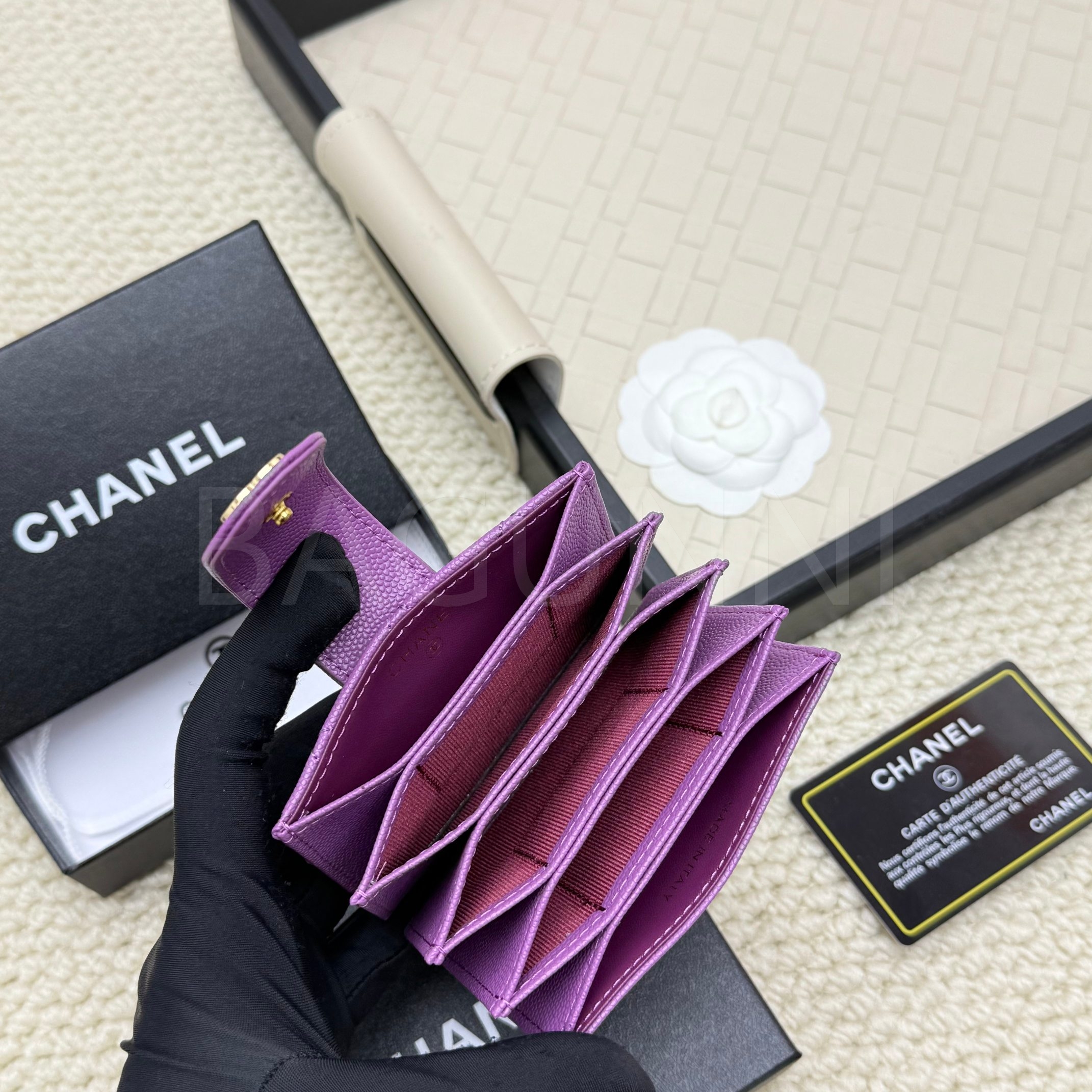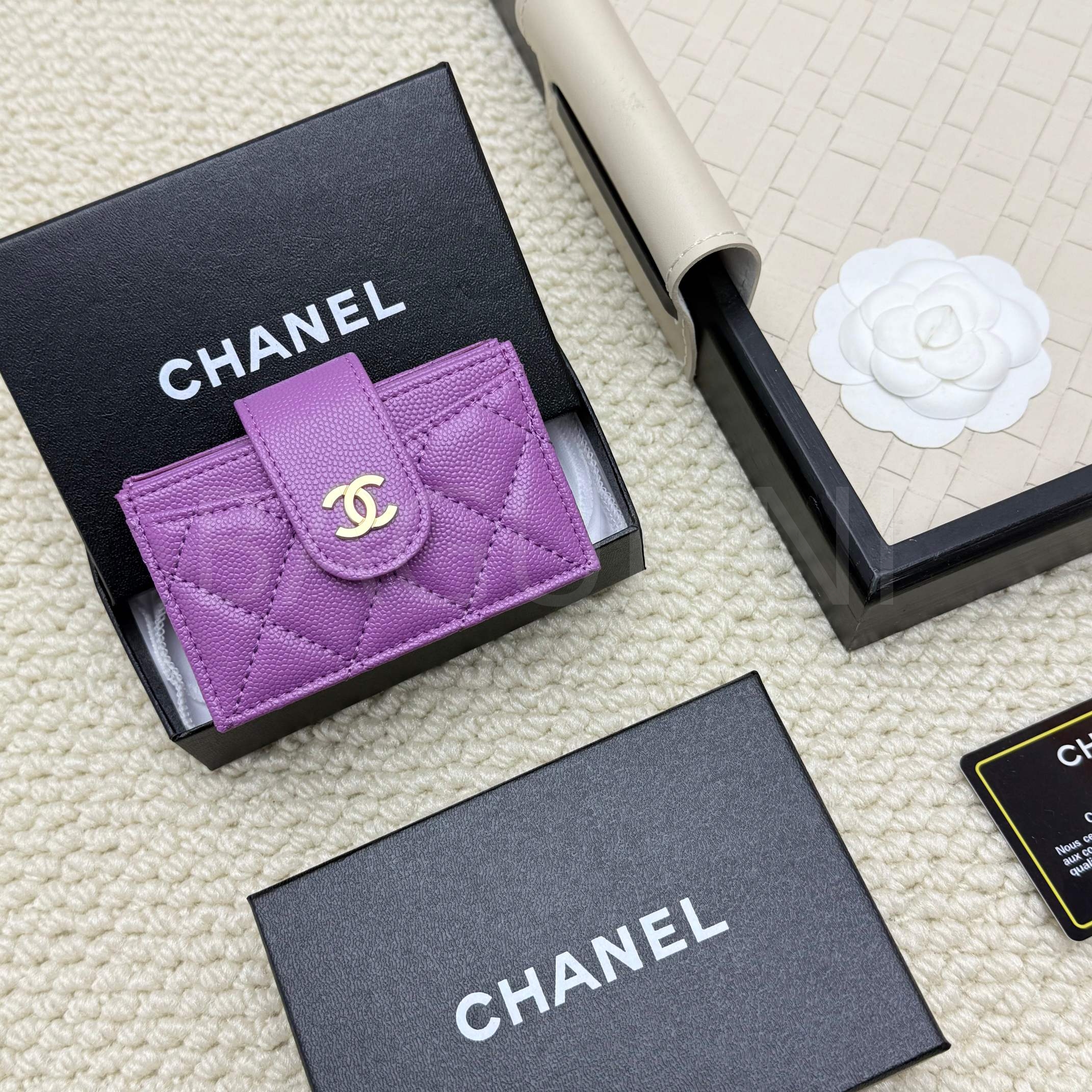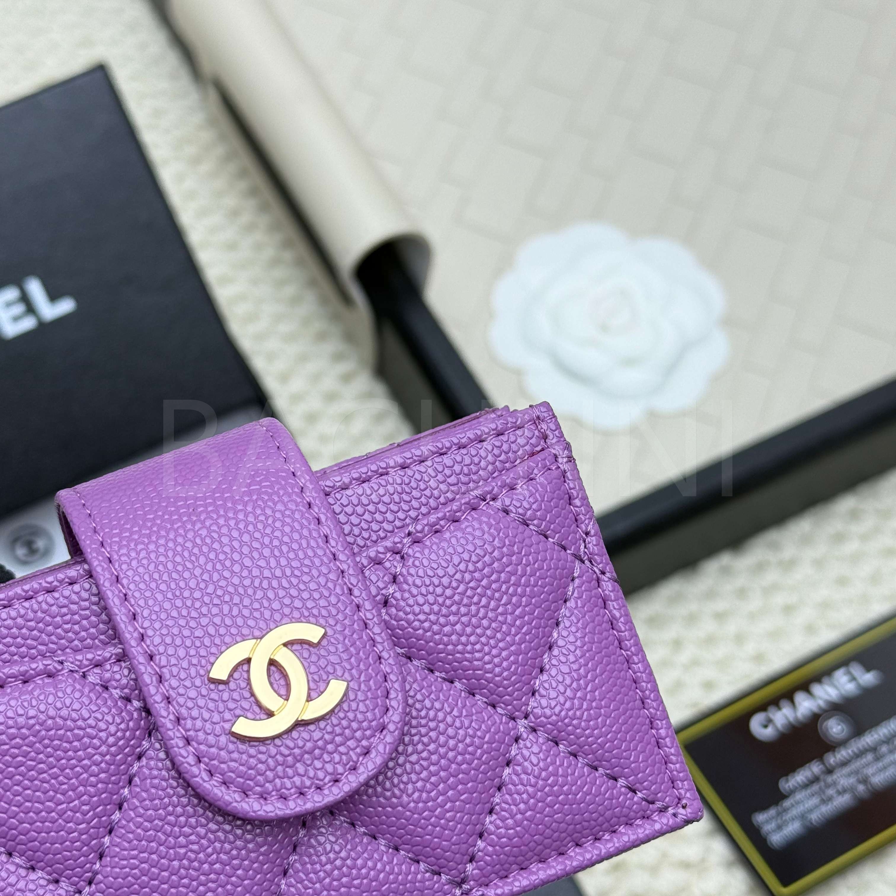 엠보싱 레더의 질감이 돋보이는 샤넬 클래식 플랩 카드지갑입니다.