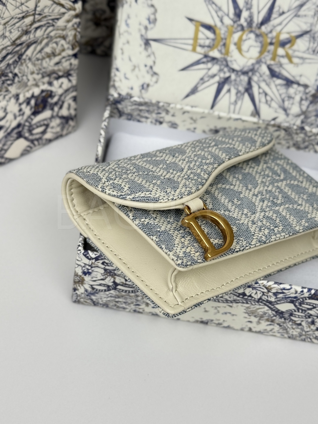 오블리크 자카드의 질감이 돋보이는 디올 플랩 카드지갑입니다.