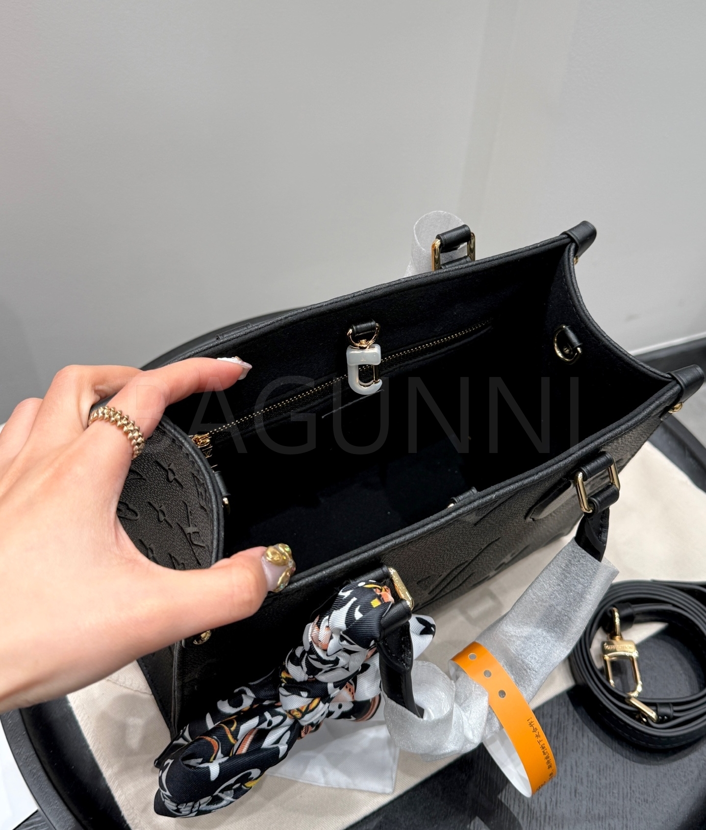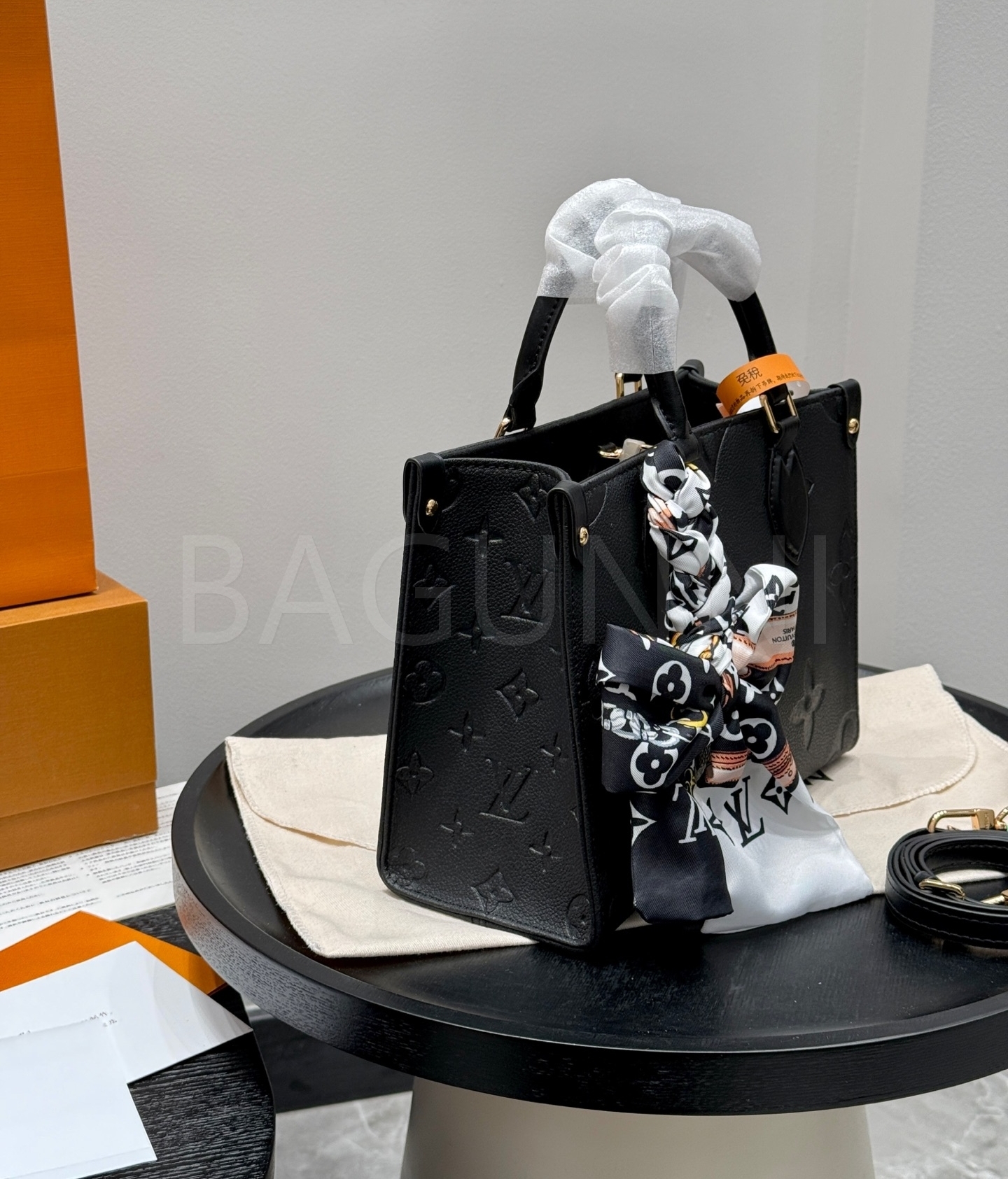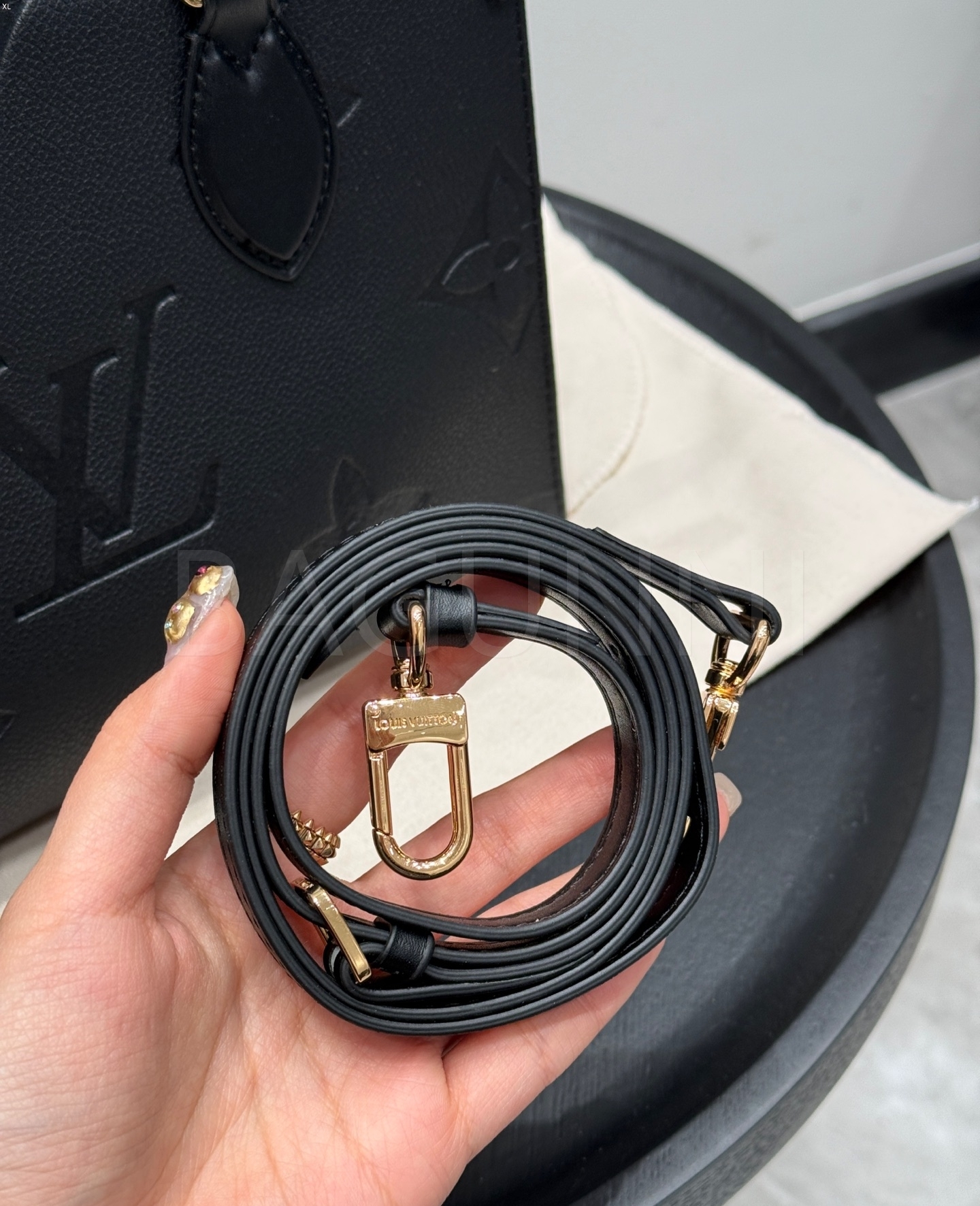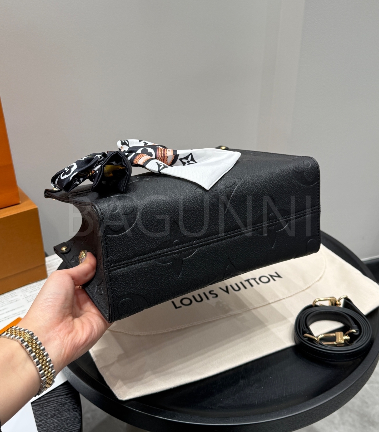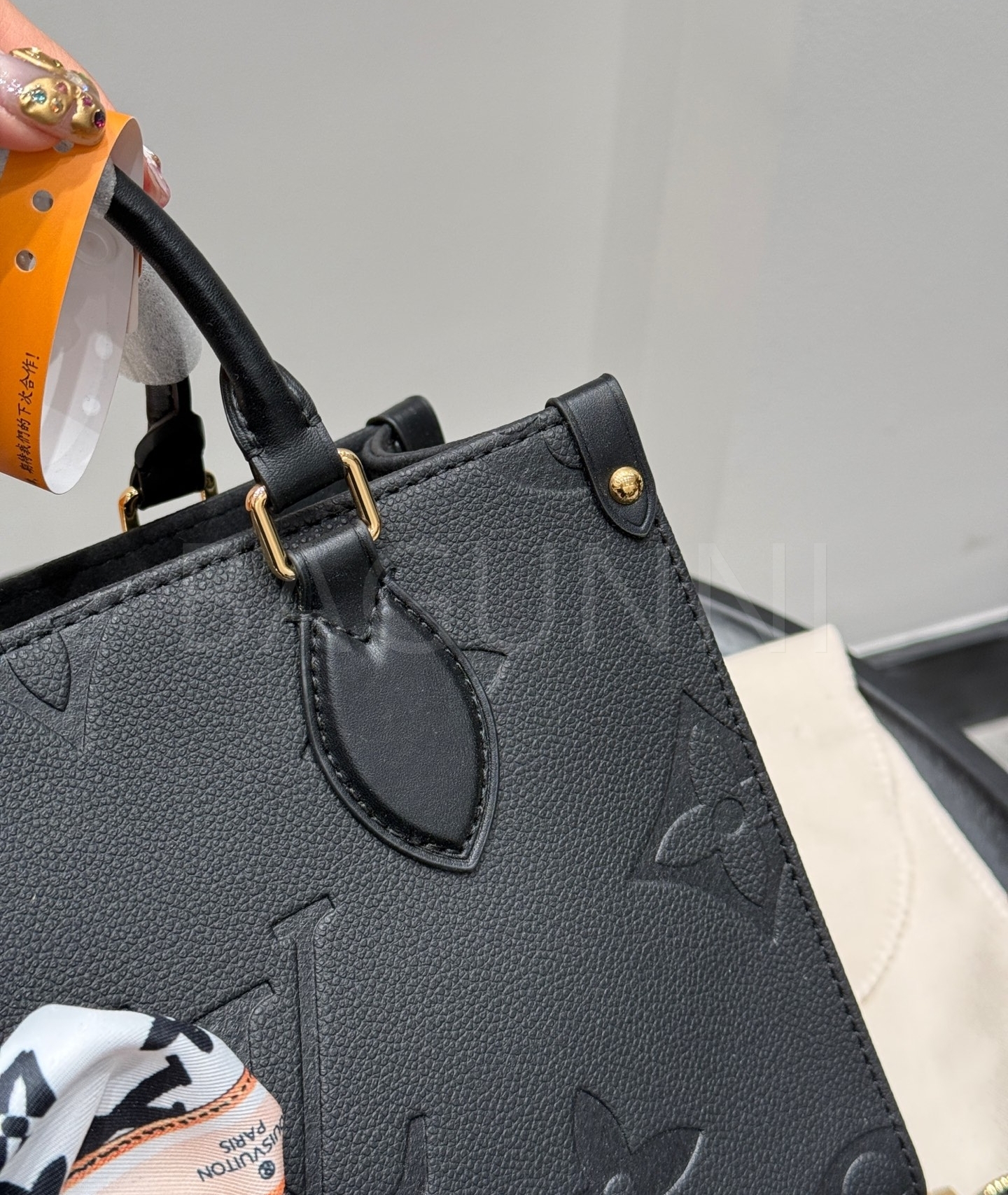 입체적인 엠보싱 가죽 질감이 매력적인 루이비통 앙프렝뜨 온더고 토트백입니다.