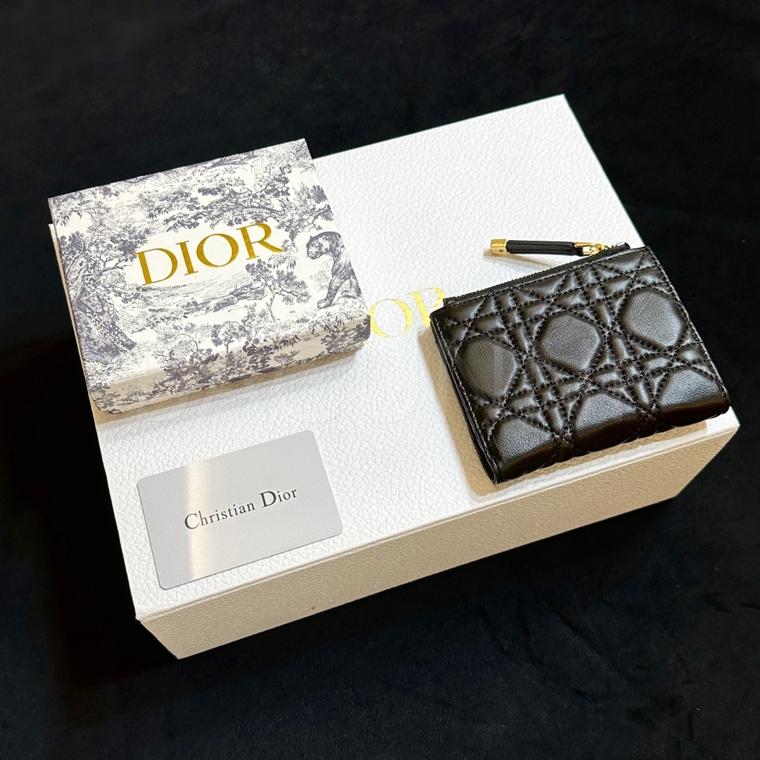 카프스킨의 질감이 돋보이는 디올 카로 카드지갑입니다.