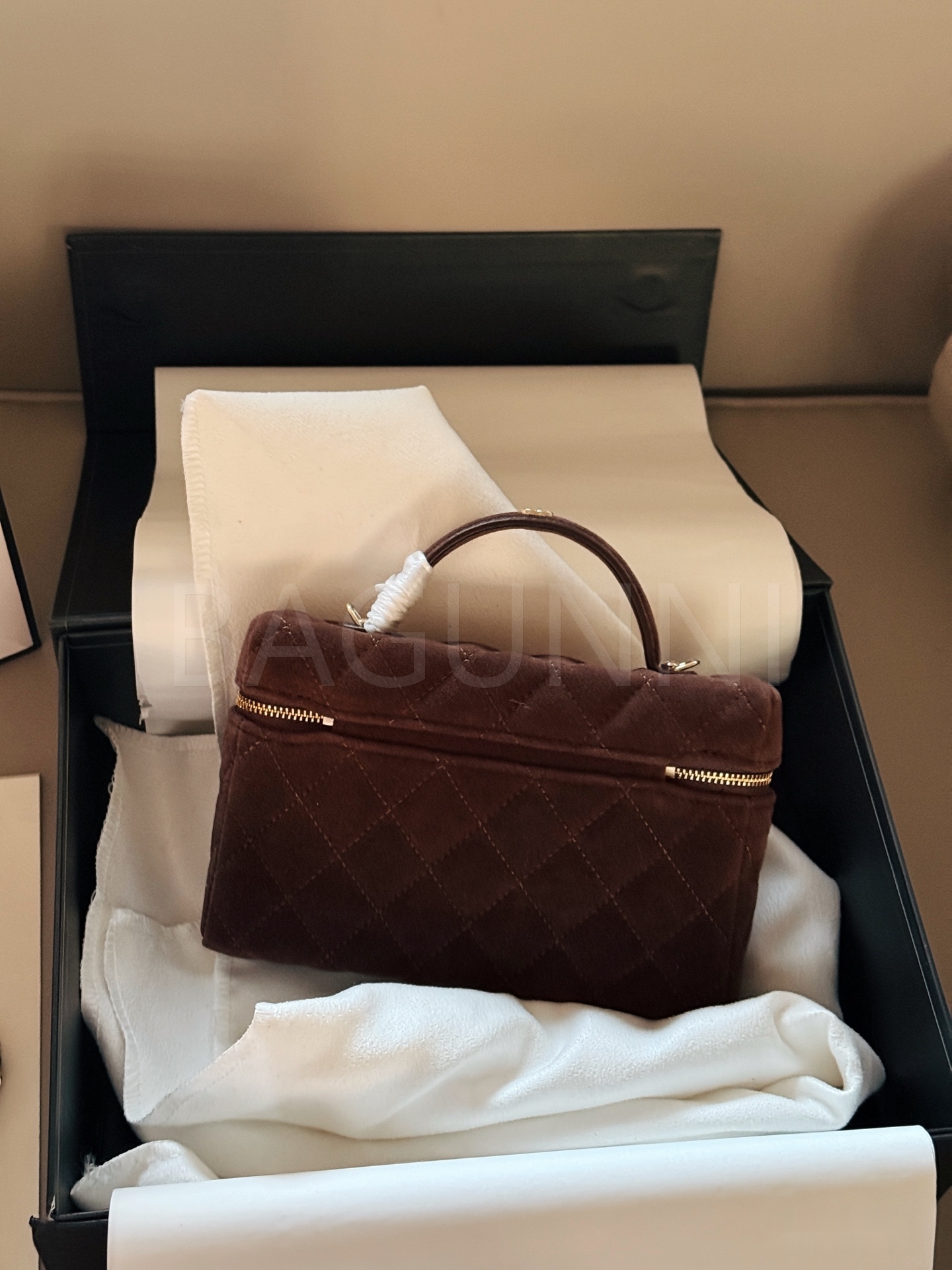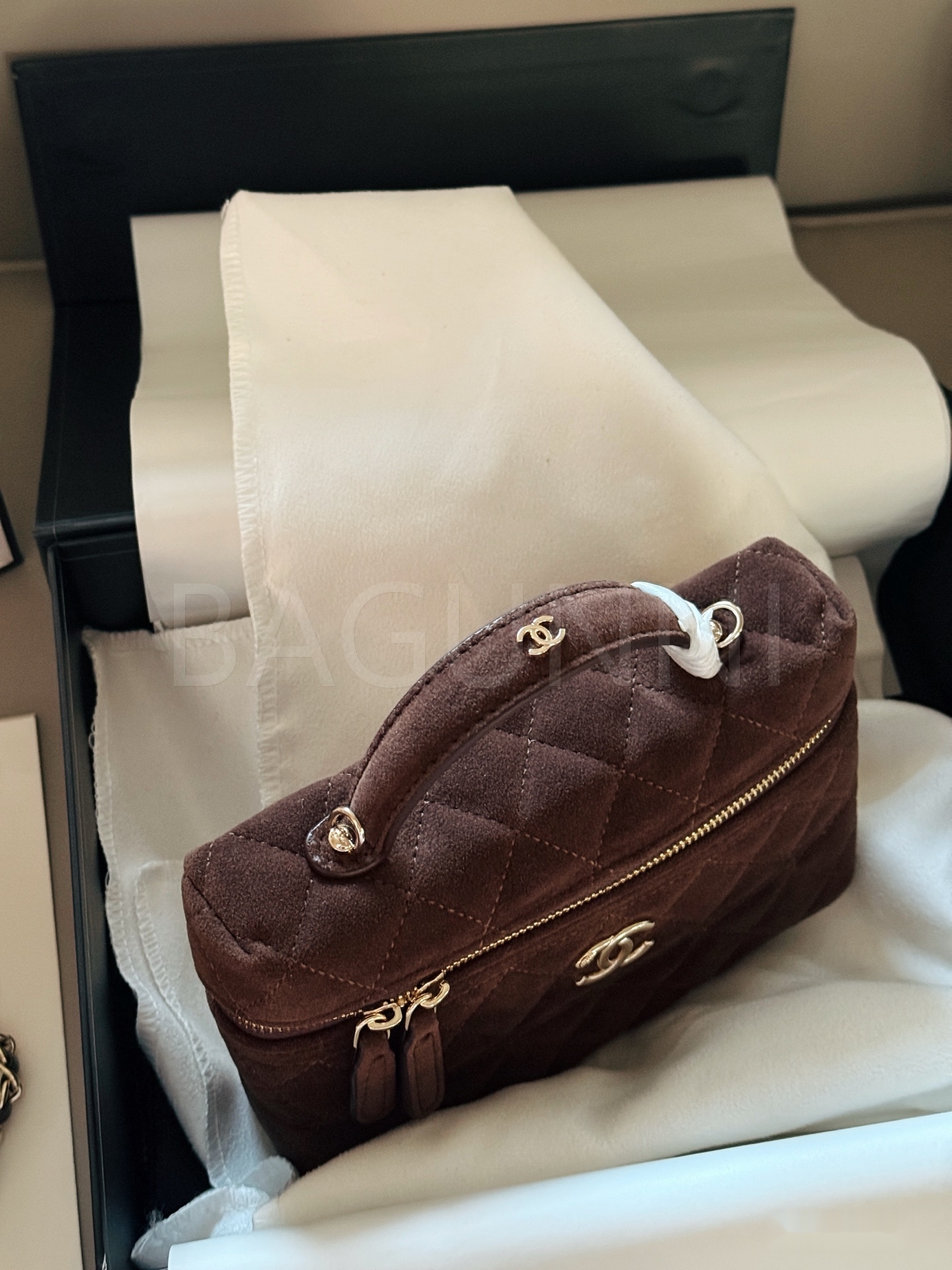 샤넬 스웨이드 탑핸들 베니티 백