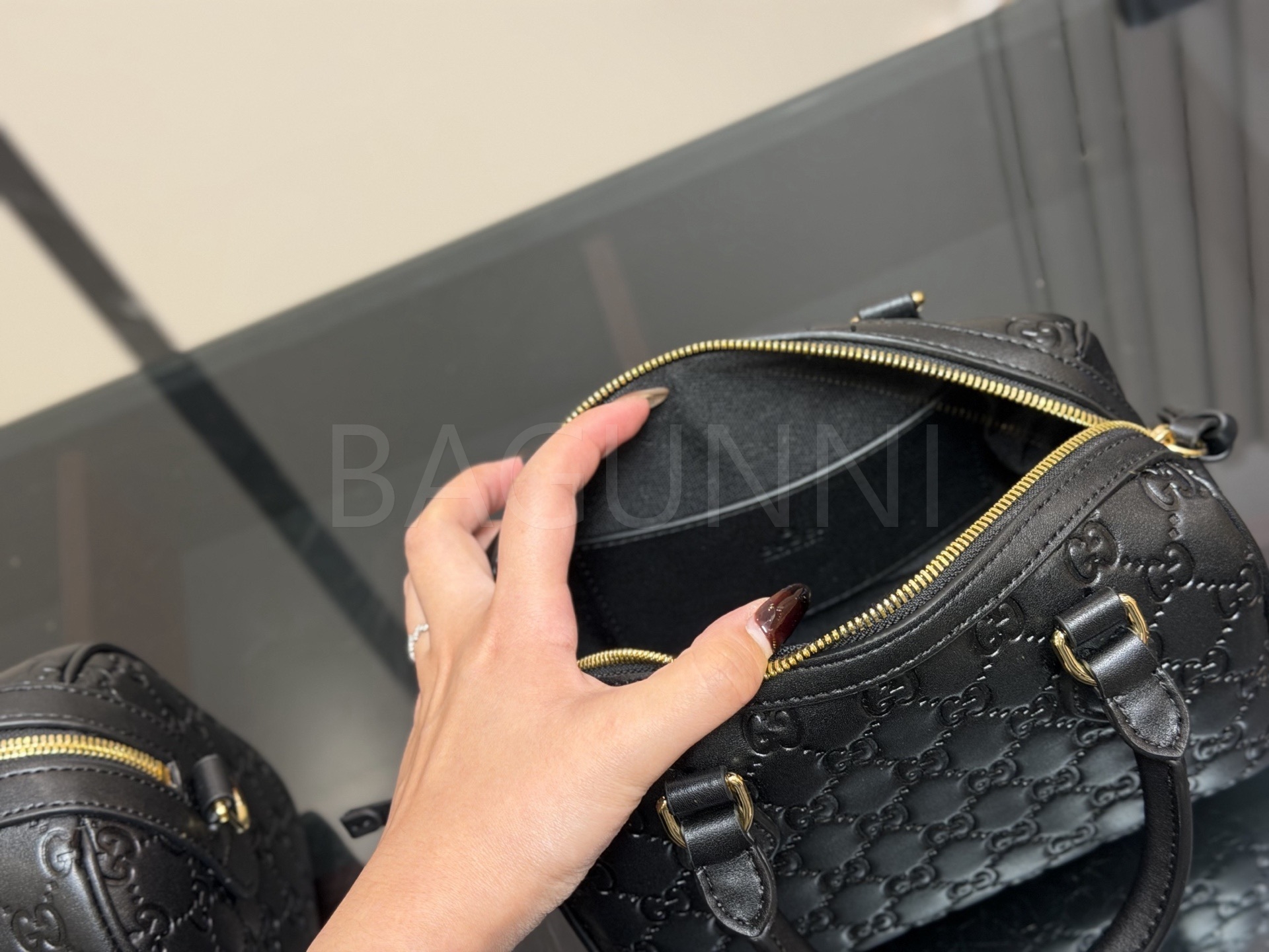 구찌 오피디아 보스턴백은 세련된 실루엣을 담은 아이템입니다.