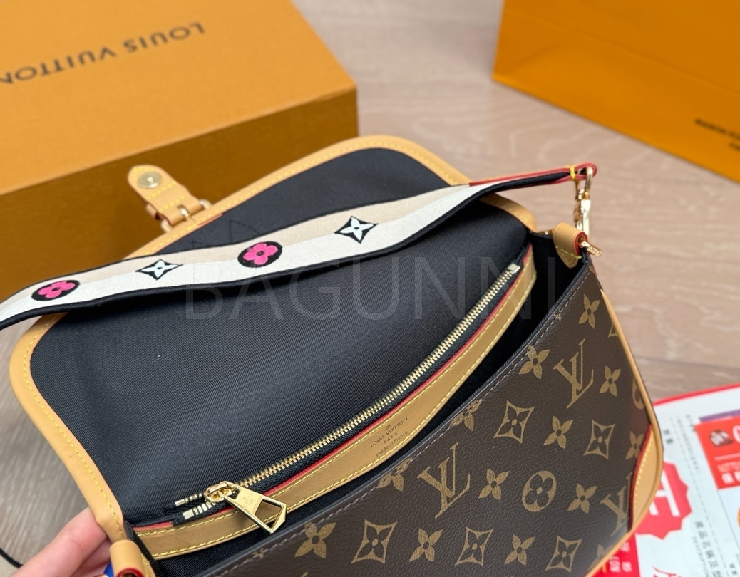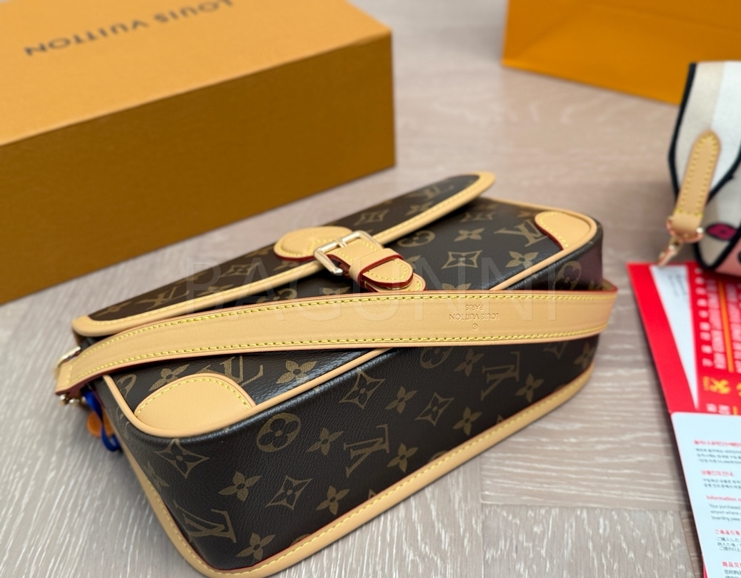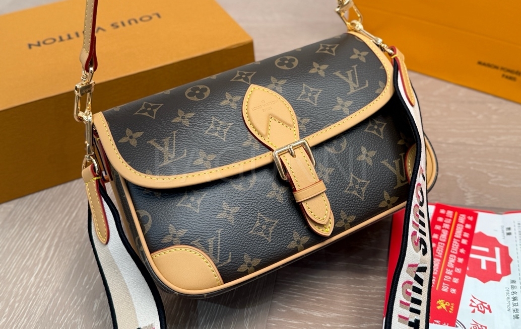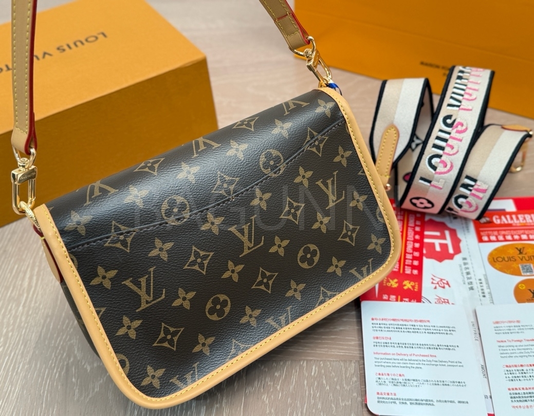 클래식한 캔버스 무드가 돋보이는 루이비통 다이앤 숄더백입니다.