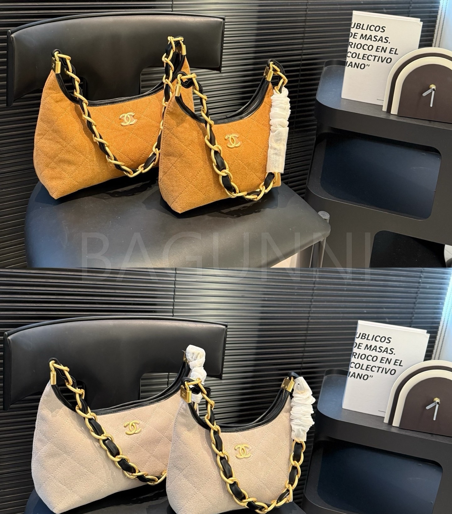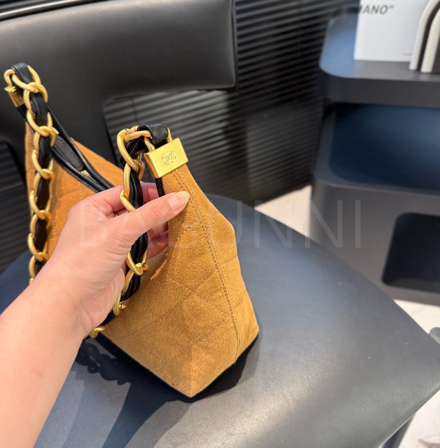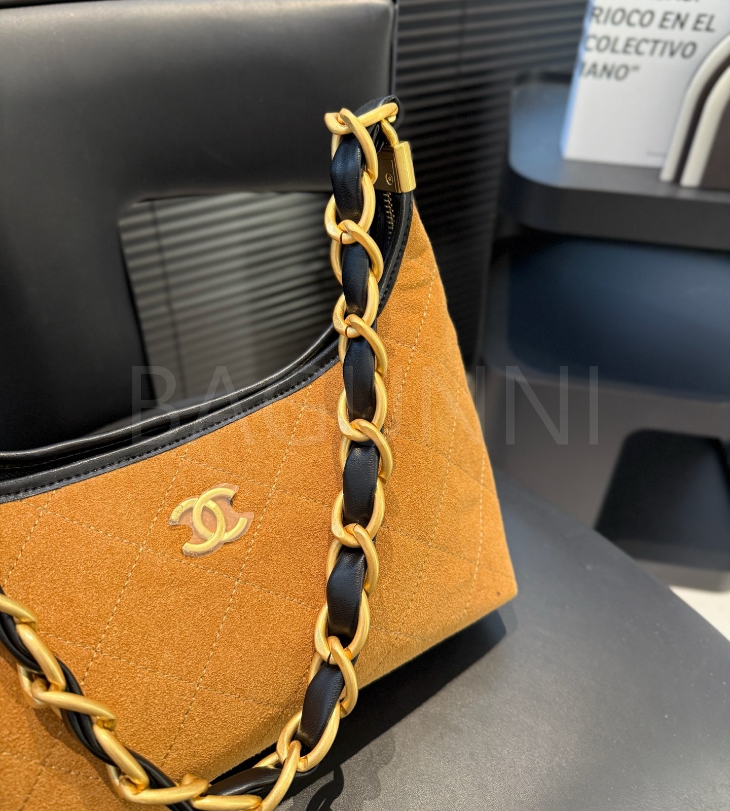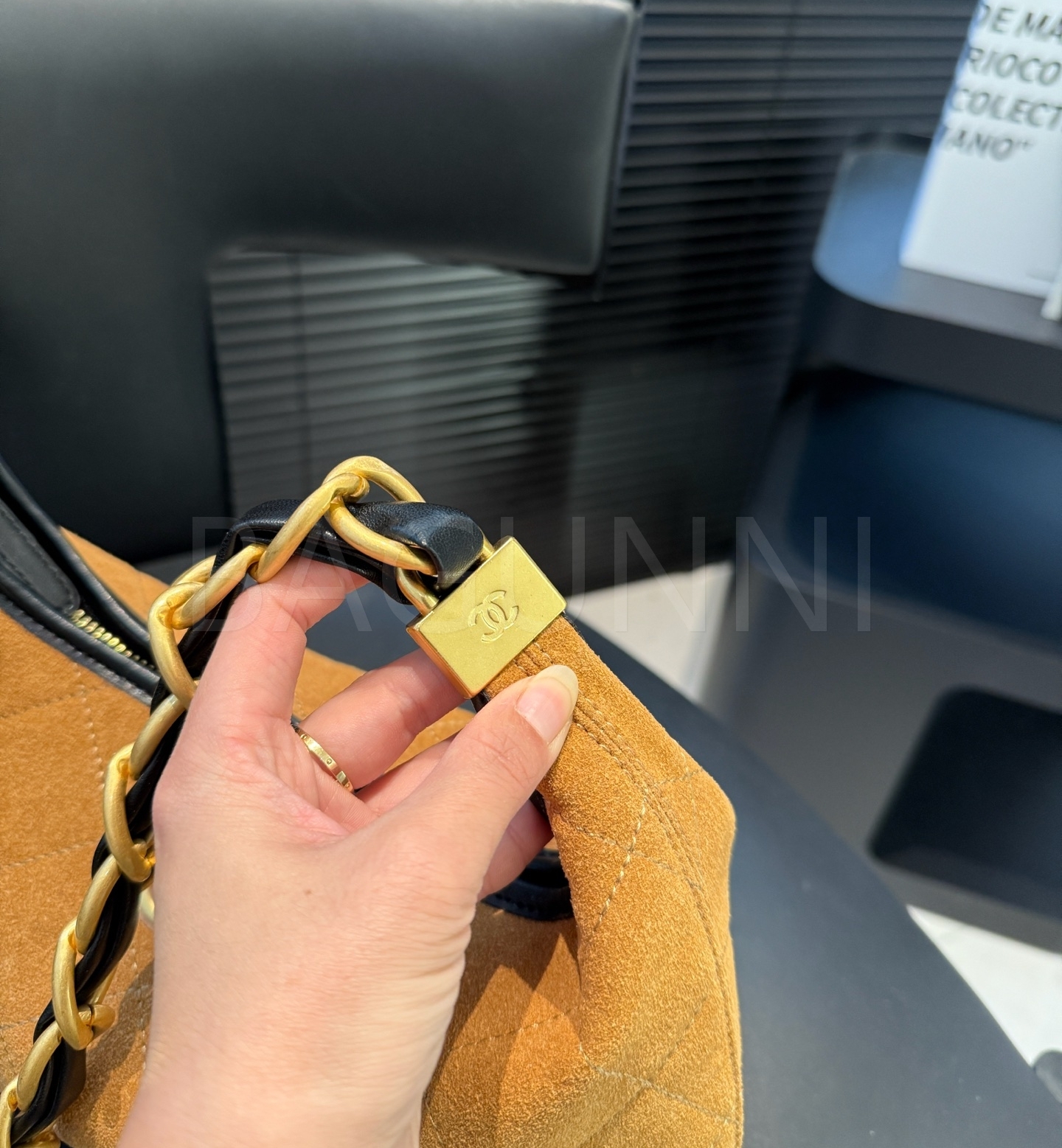 스웨이드 특유의 매력이 돋보이는 샤넬 스웨이드 호보 백입니다.