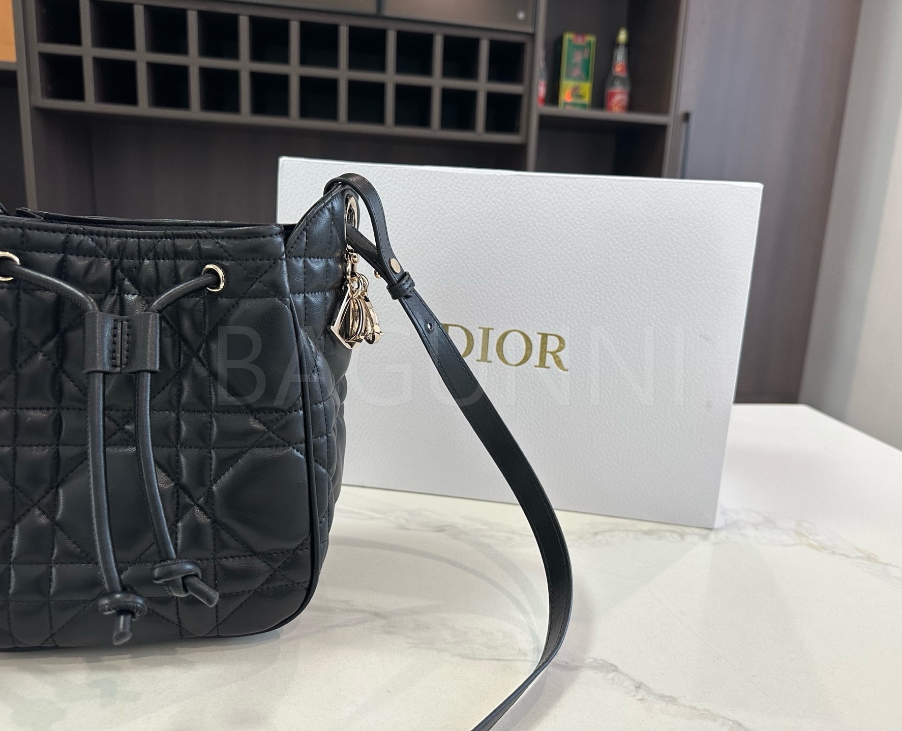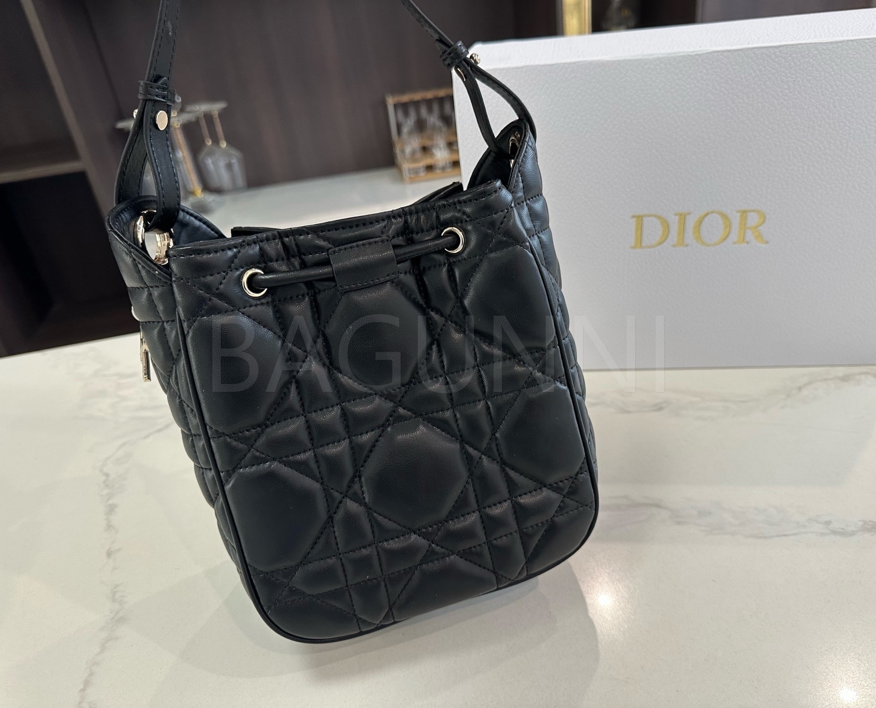 디올 까나쥬 버킷백입니다. 램스킨 특유의 질감이 자연스럽게 살아 있으며 브랜드 특유의 분위기를 편하게 즐기기 좋습니다.