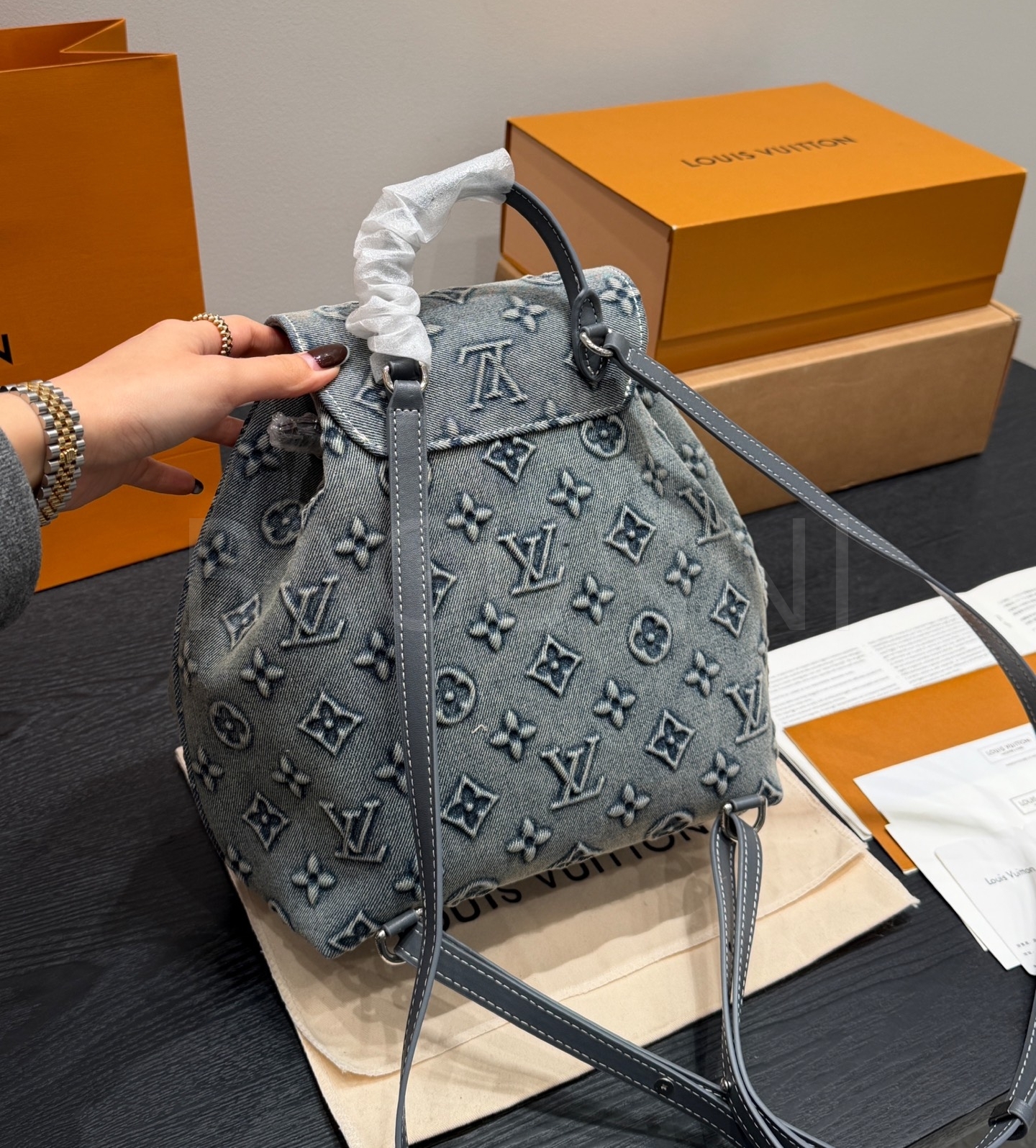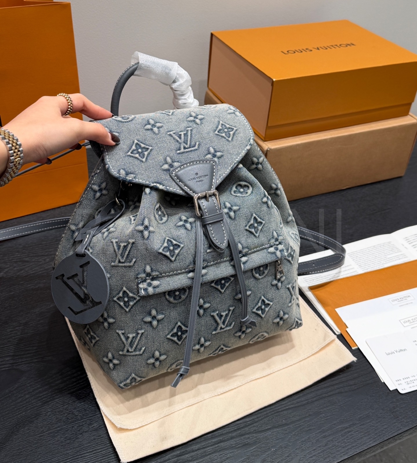 루이비통 몽수리 데님 백팩