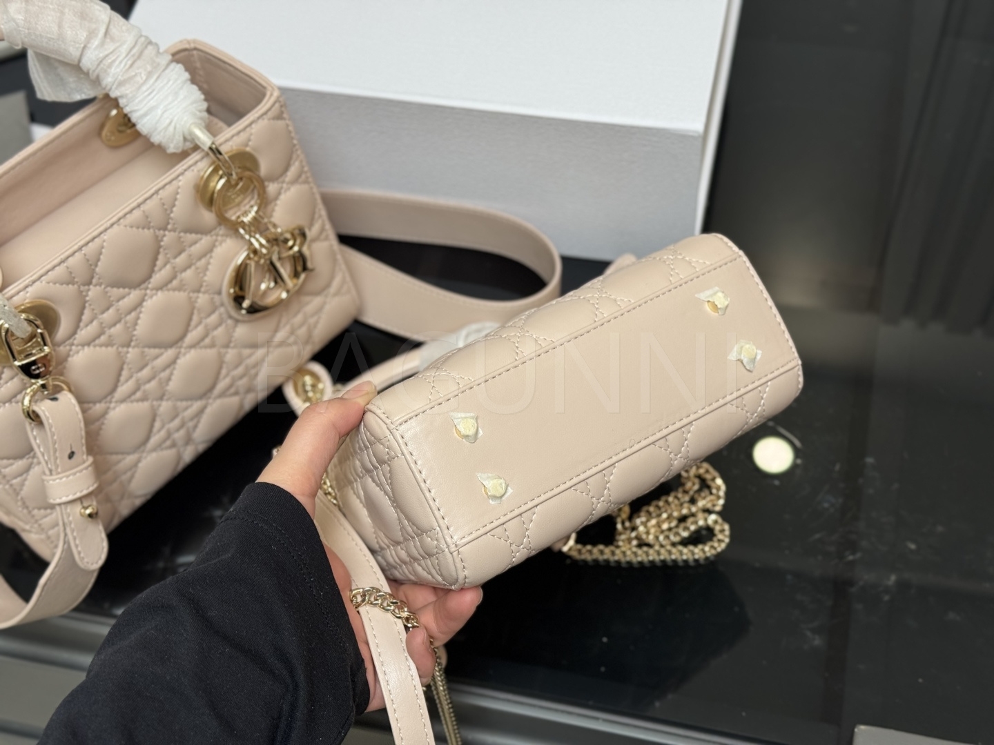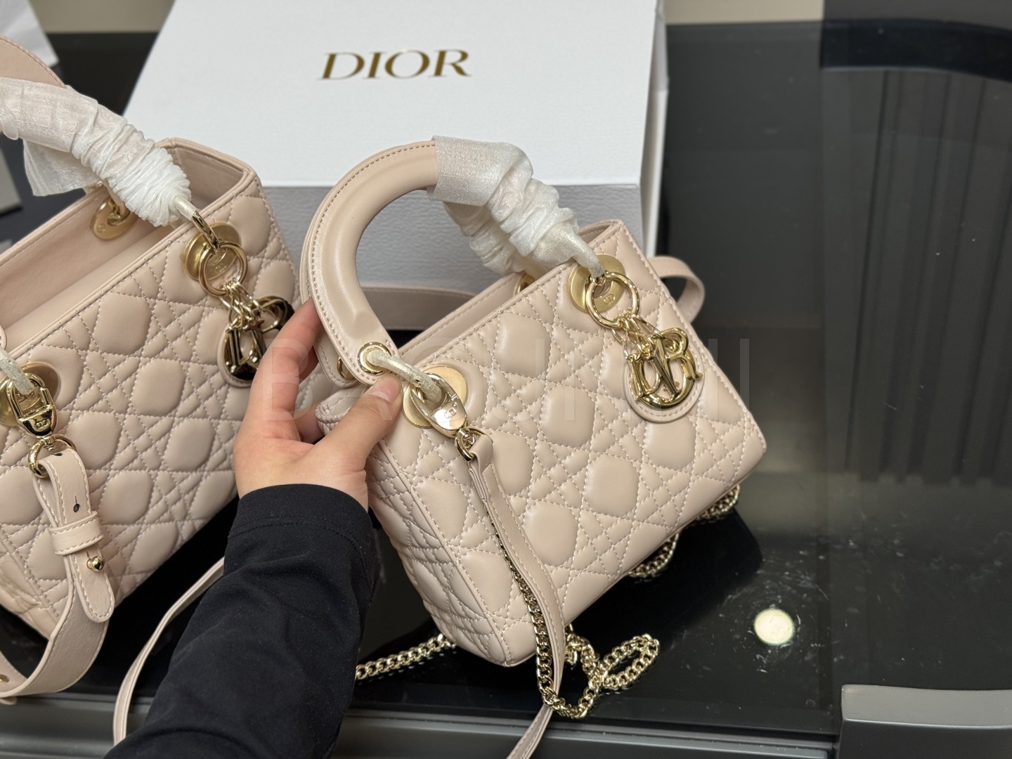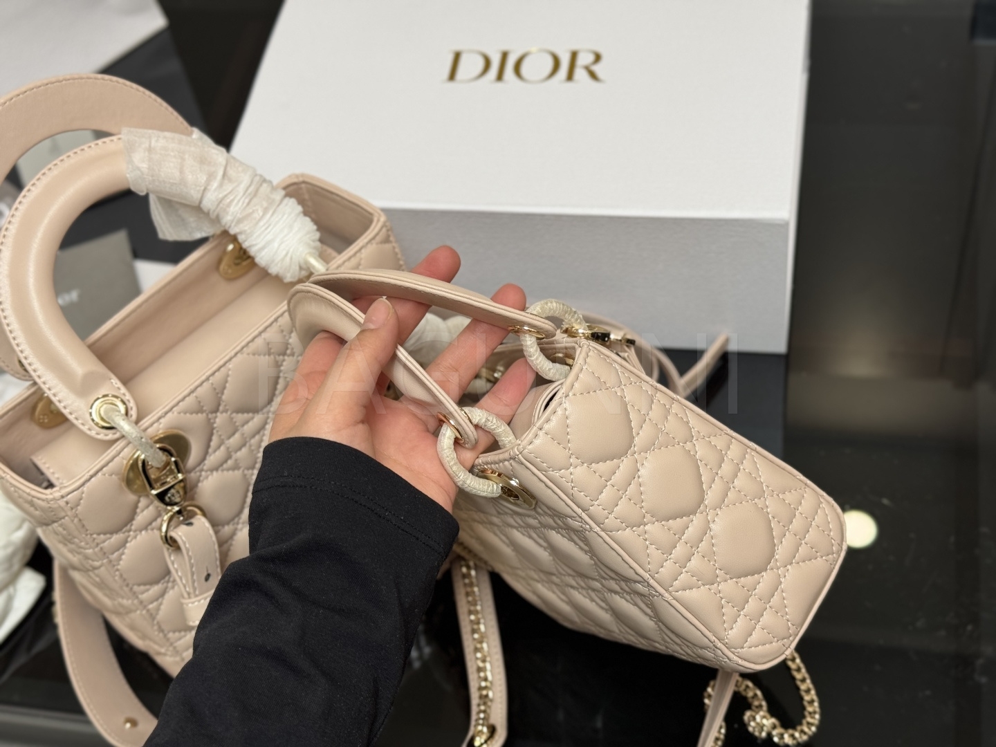 디올 레더 백입니다. 가죽 특유의 질감이 자연스럽게 살아 있으며 브랜드 특유의 분위기를 편하게 즐기기 좋습니다.