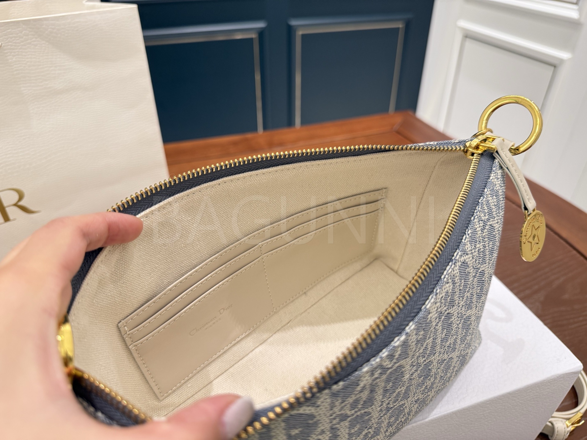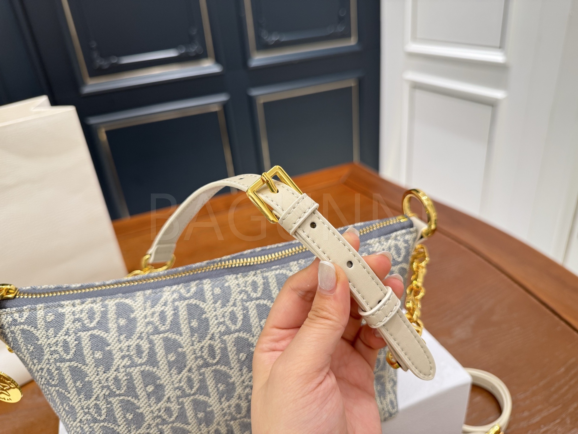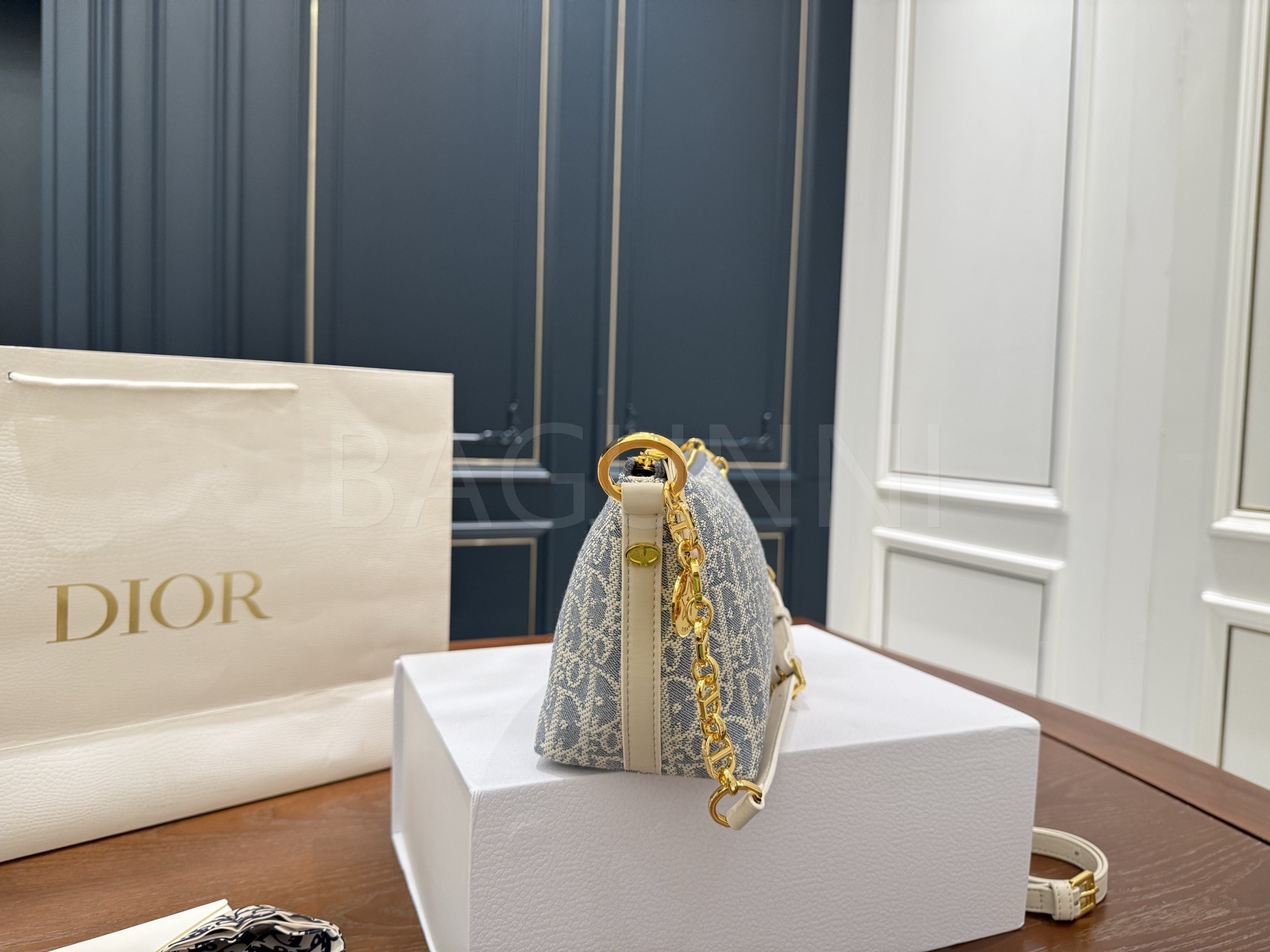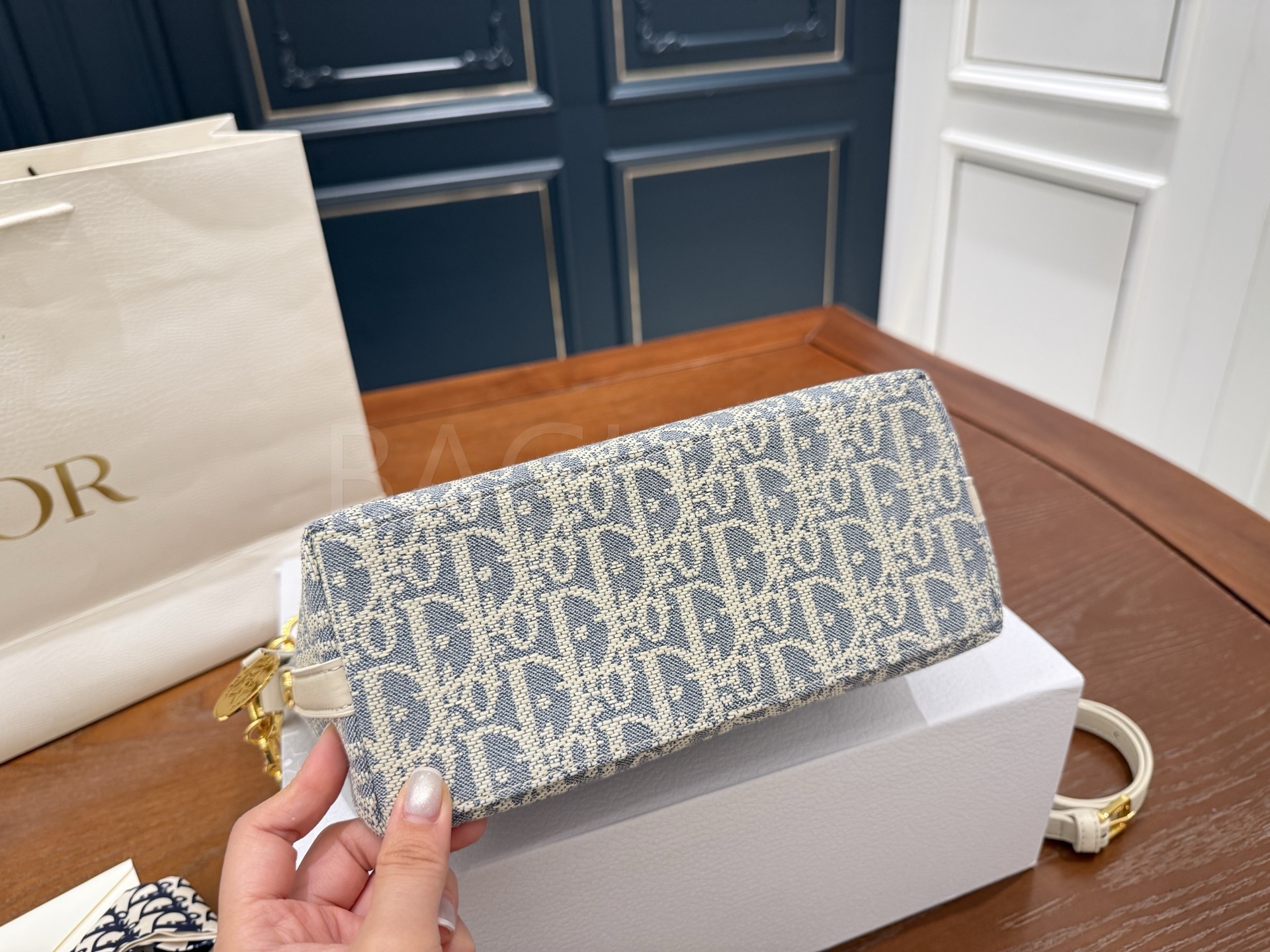 디올 디올스타 숄더백입니다. 가죽 특유의 질감이 자연스럽게 살아 있으며 블루 톤이 어우러져 브랜드 특유의 분위기를 편하게 즐기기 좋습니다.