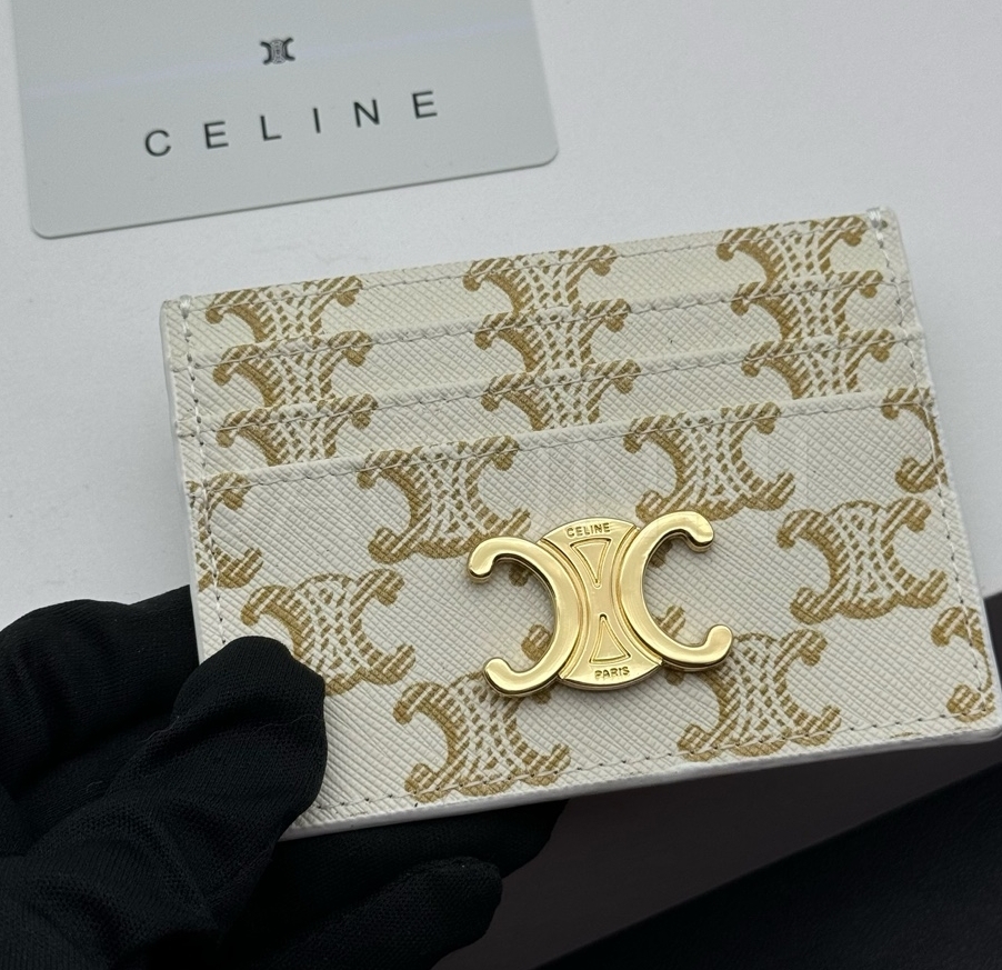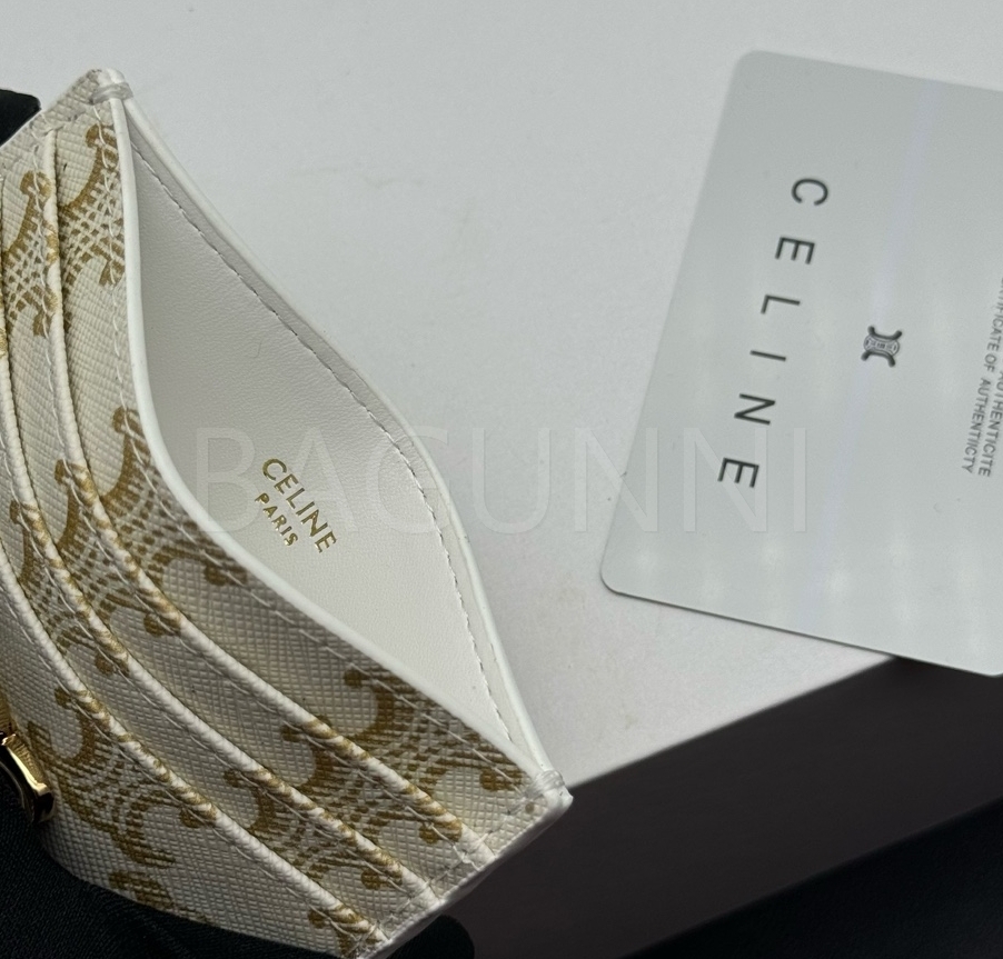 카프스킨의 질감이 돋보이는 셀린느 트리옹프 플랩 카드지갑입니다.