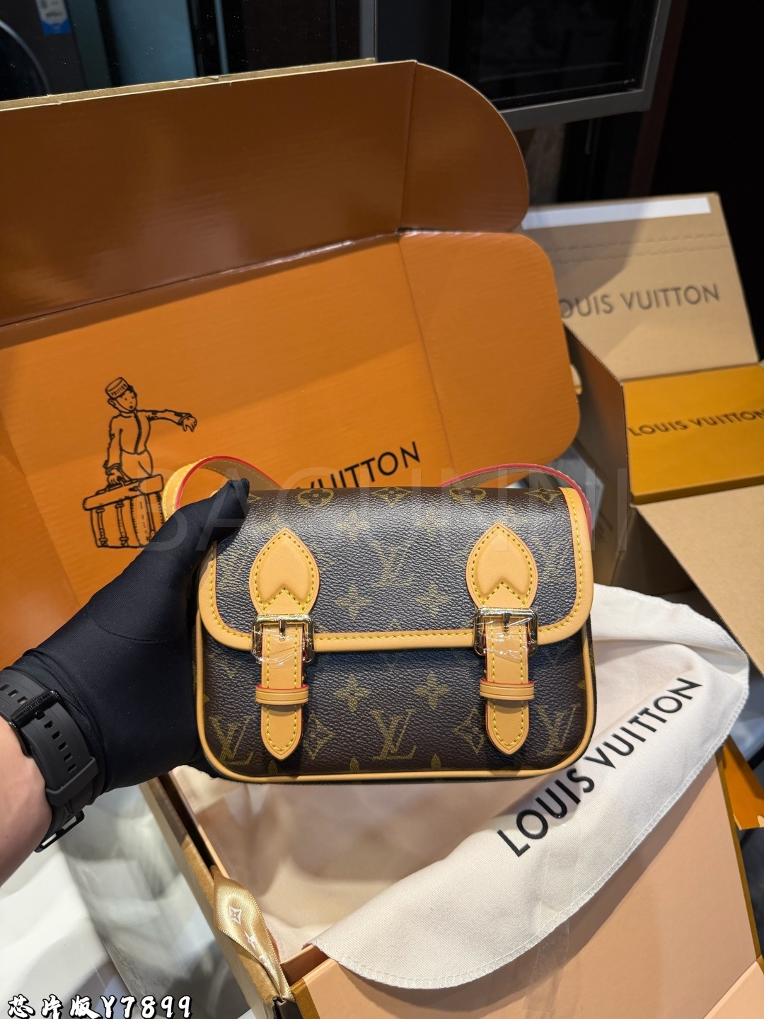 클래식한 캔버스 무드가 돋보이는 루이비통 새첼 메신저 백입니다.