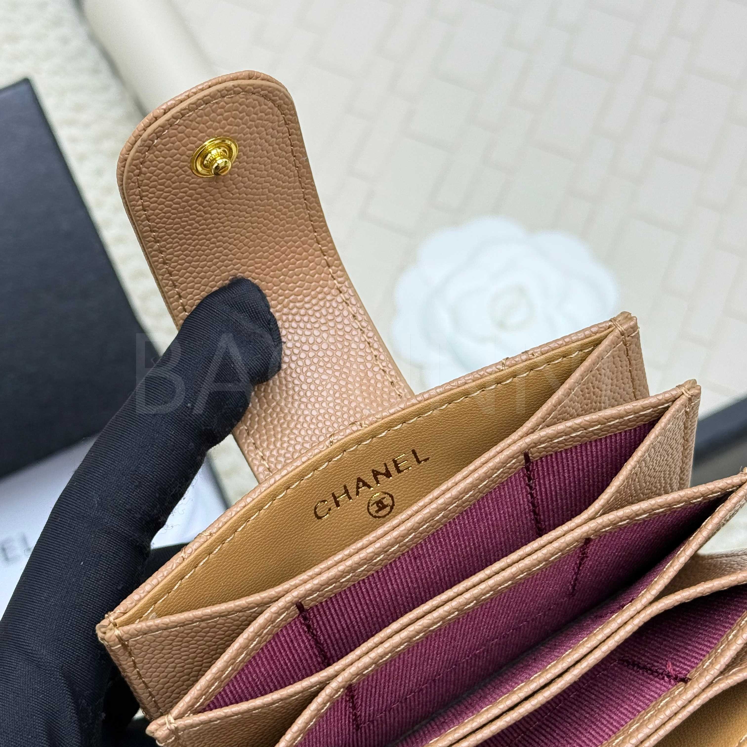 엠보싱 레더의 질감이 돋보이는 샤넬 클래식 플랩 카드지갑입니다.