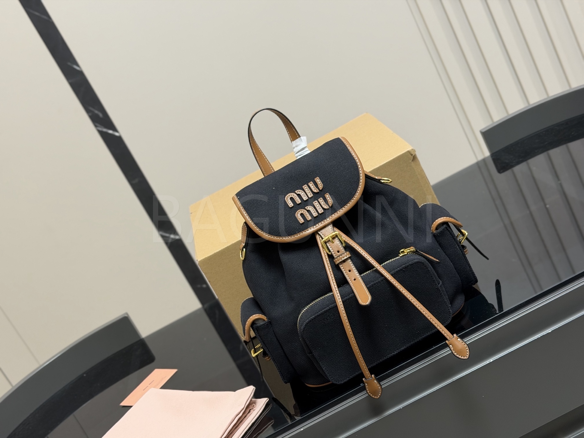 미우미우 로고 캔버스 백팩