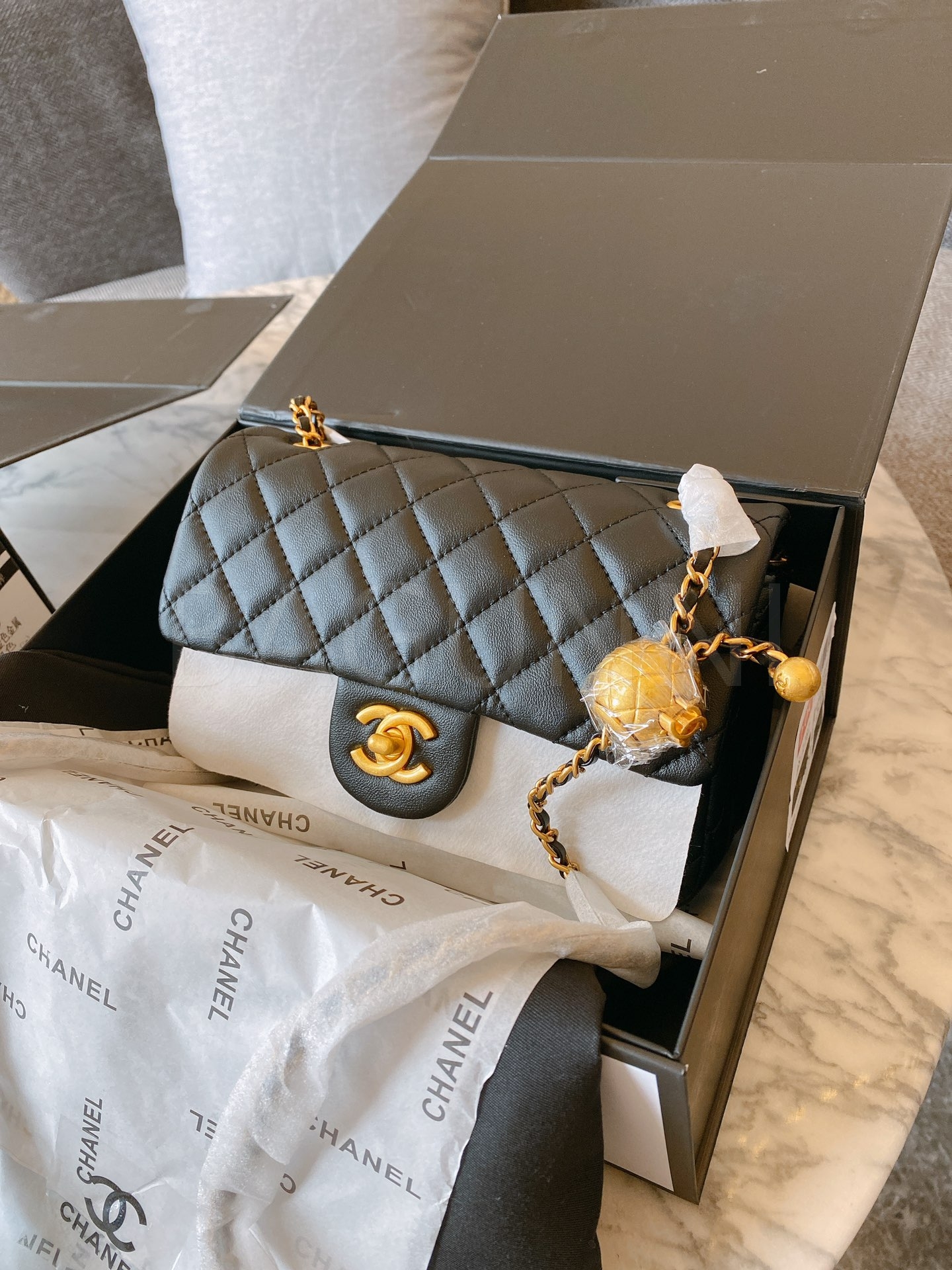 샤넬 금볼 스퀘어 플랩 백