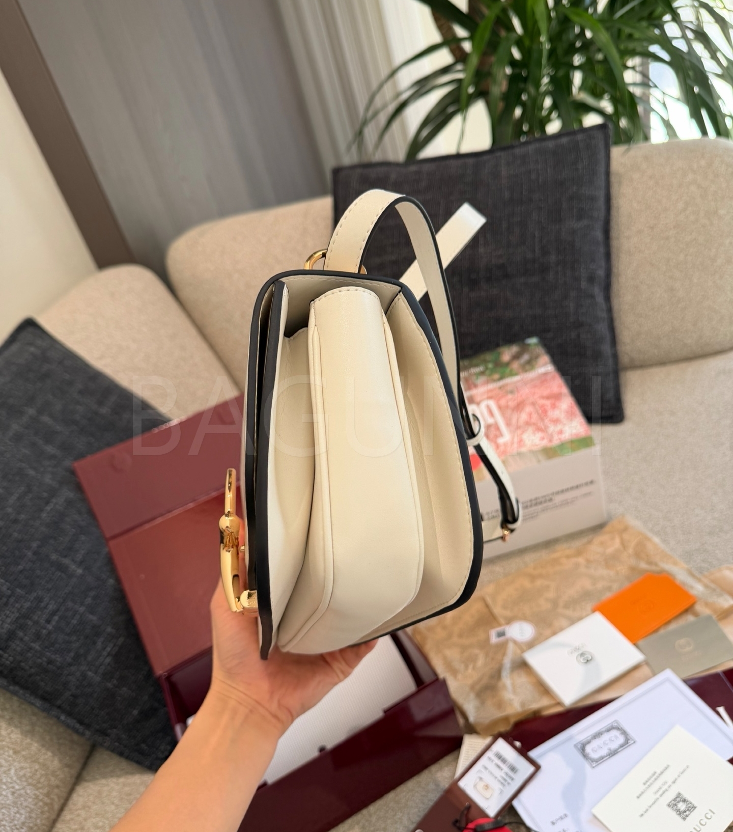 구찌 시에나 숄더백입니다. 블랙 톤이 어우러져 브랜드 특유의 분위기를 편하게 즐기기 좋습니다.