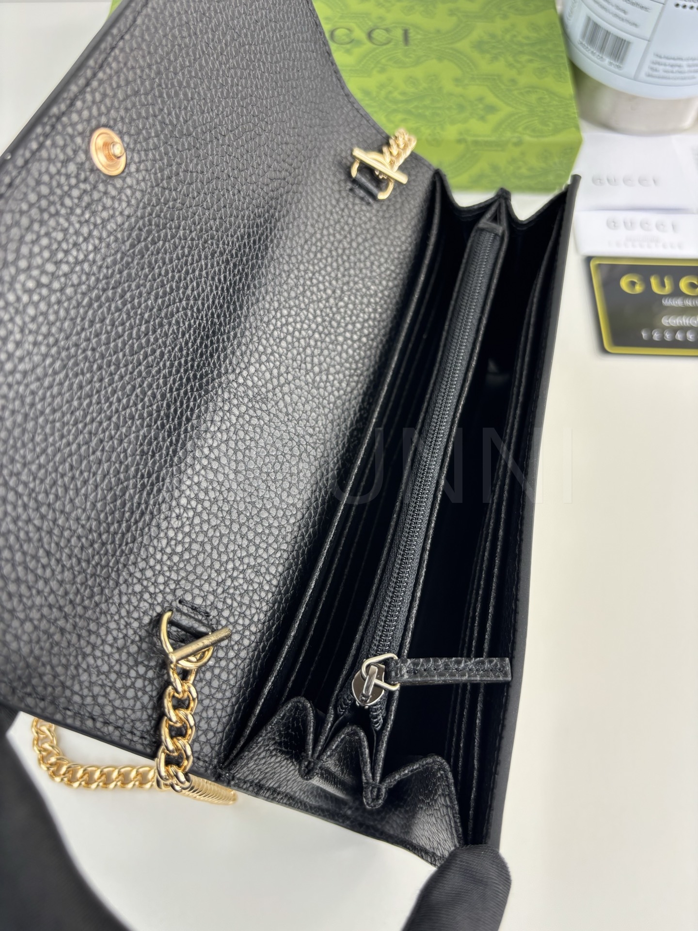 블랙와 체인 연출 가능으로 데일리로 쓰기 좋고, 작은 소지품을 깔끔하게 정리하기 좋습니다.