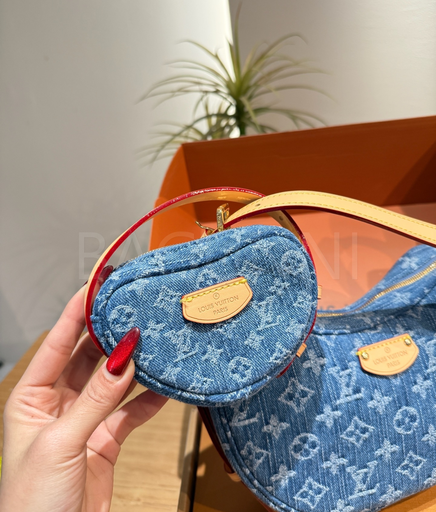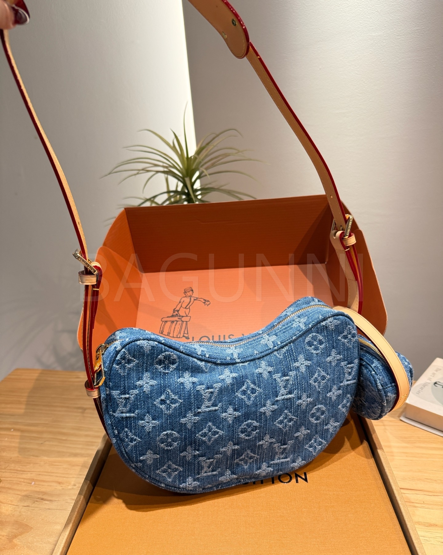 데님 특유의 캐주얼한 무드가 돋보이는 루이비통 데님 루프 숄더백입니다.