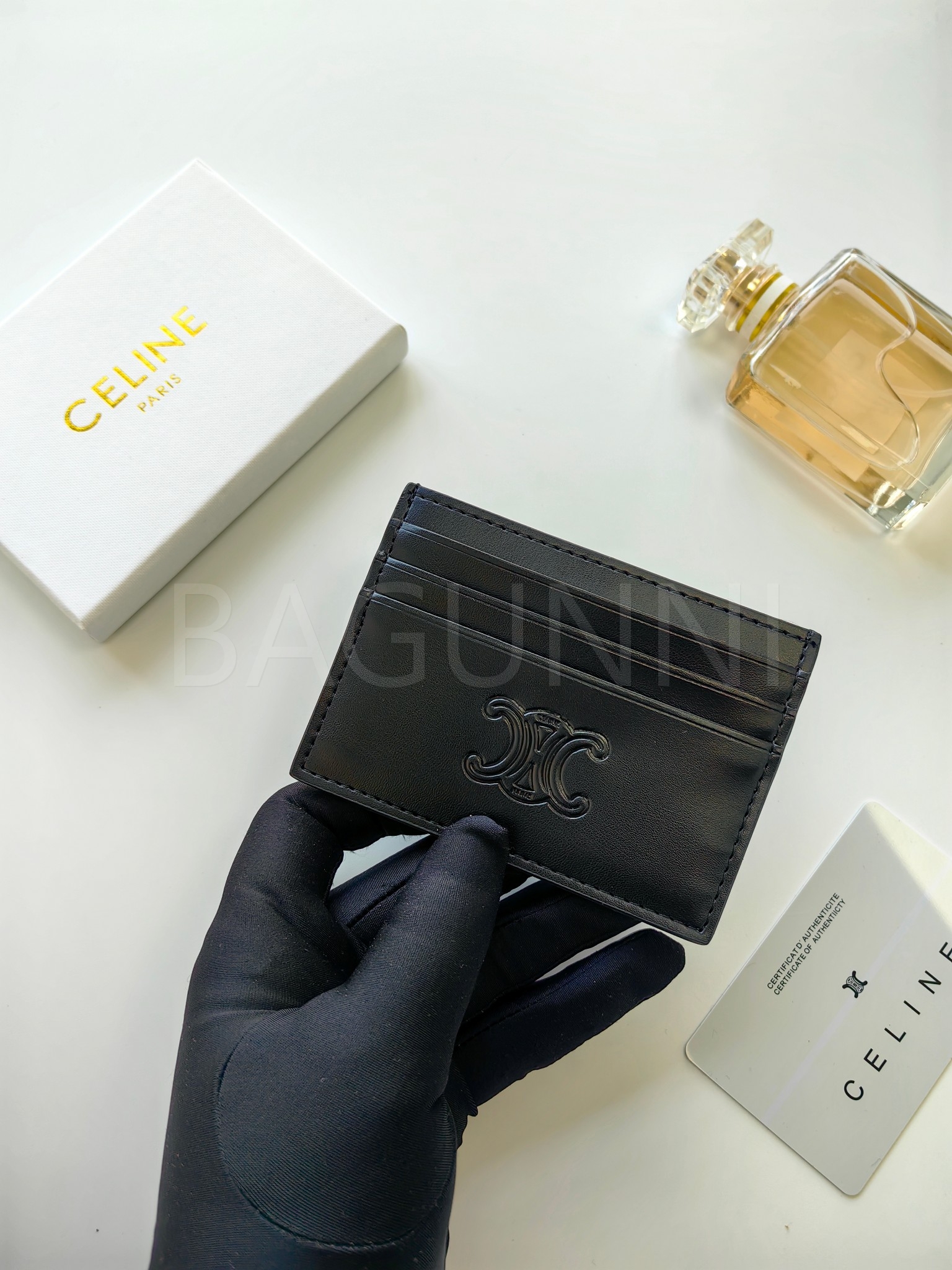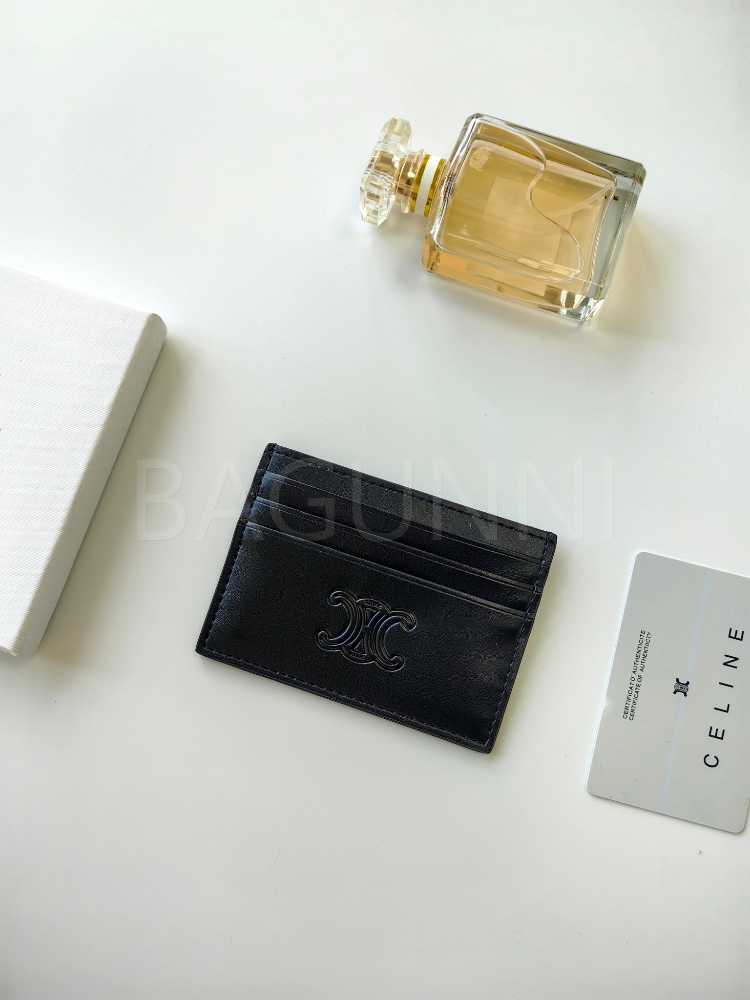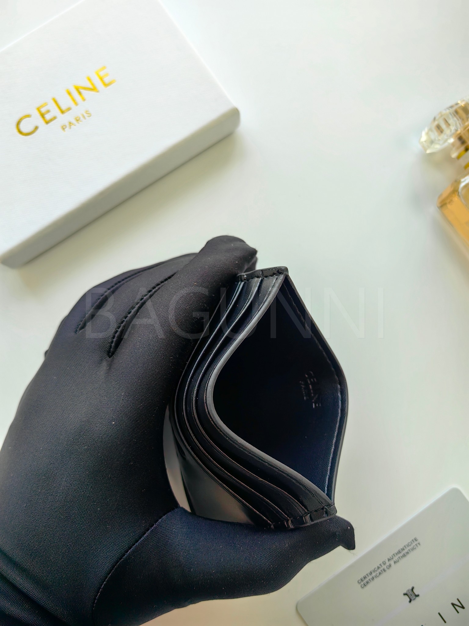 카프스킨의 질감이 돋보이는 셀린느 플랩 카드지갑입니다.