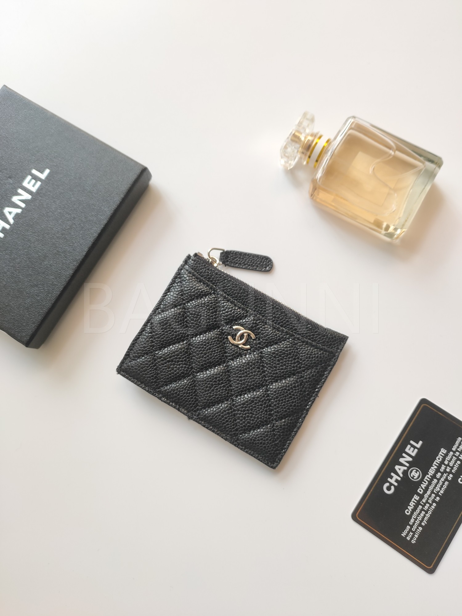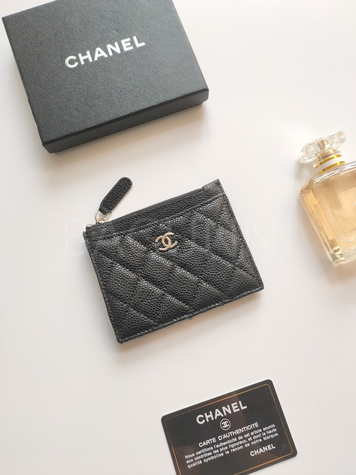 샤넬 특유의 무드가 자연스럽게 살아있는 지퍼 카드지갑입니다.