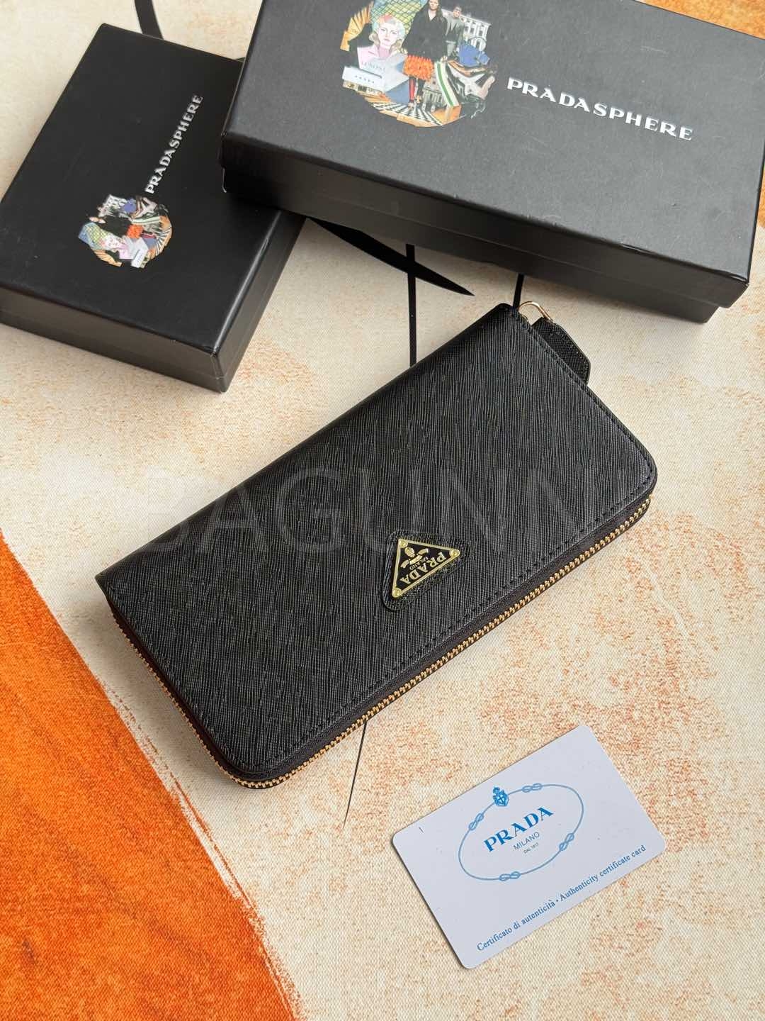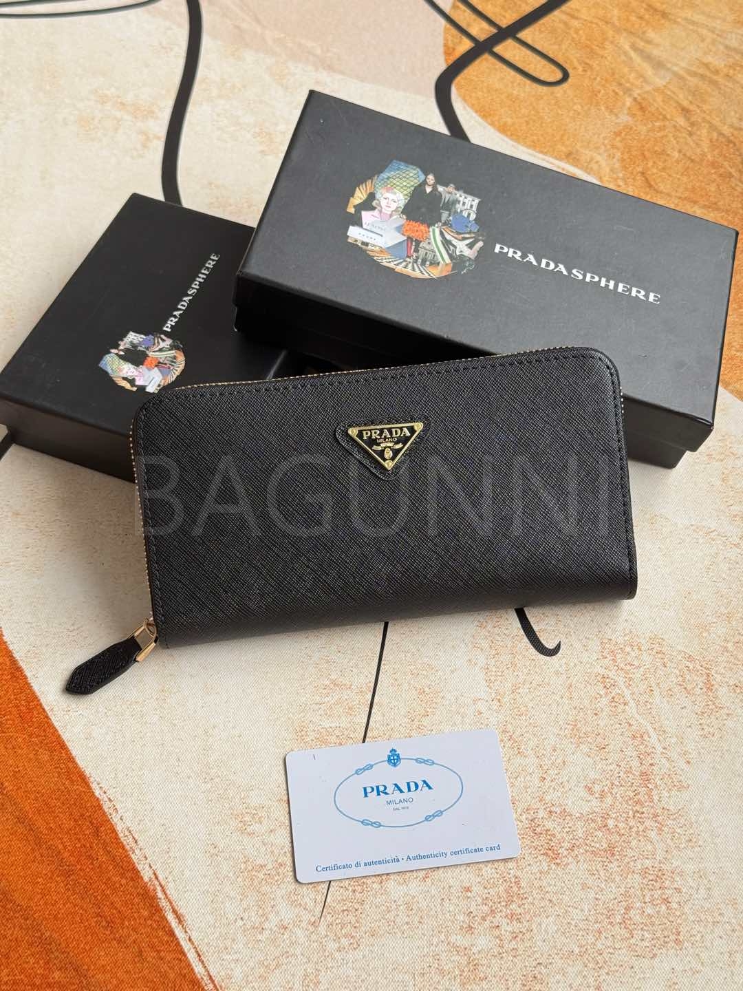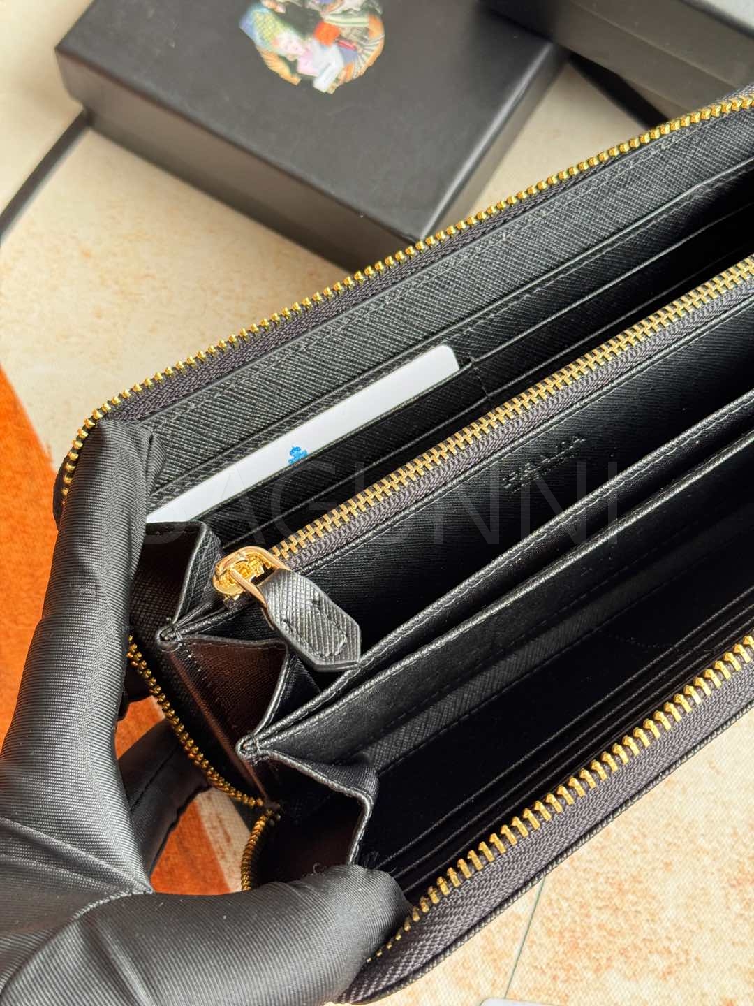사피아노 질감이 깔끔하게 살아있는 프라다 사피아노 지퍼 장지갑입니다.