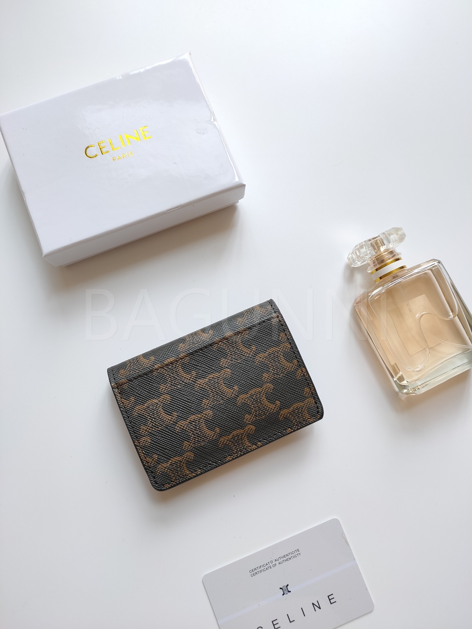 셀린느 특유의 무드가 자연스럽게 살아있는 트리옹프 플랩 카드지갑입니다.