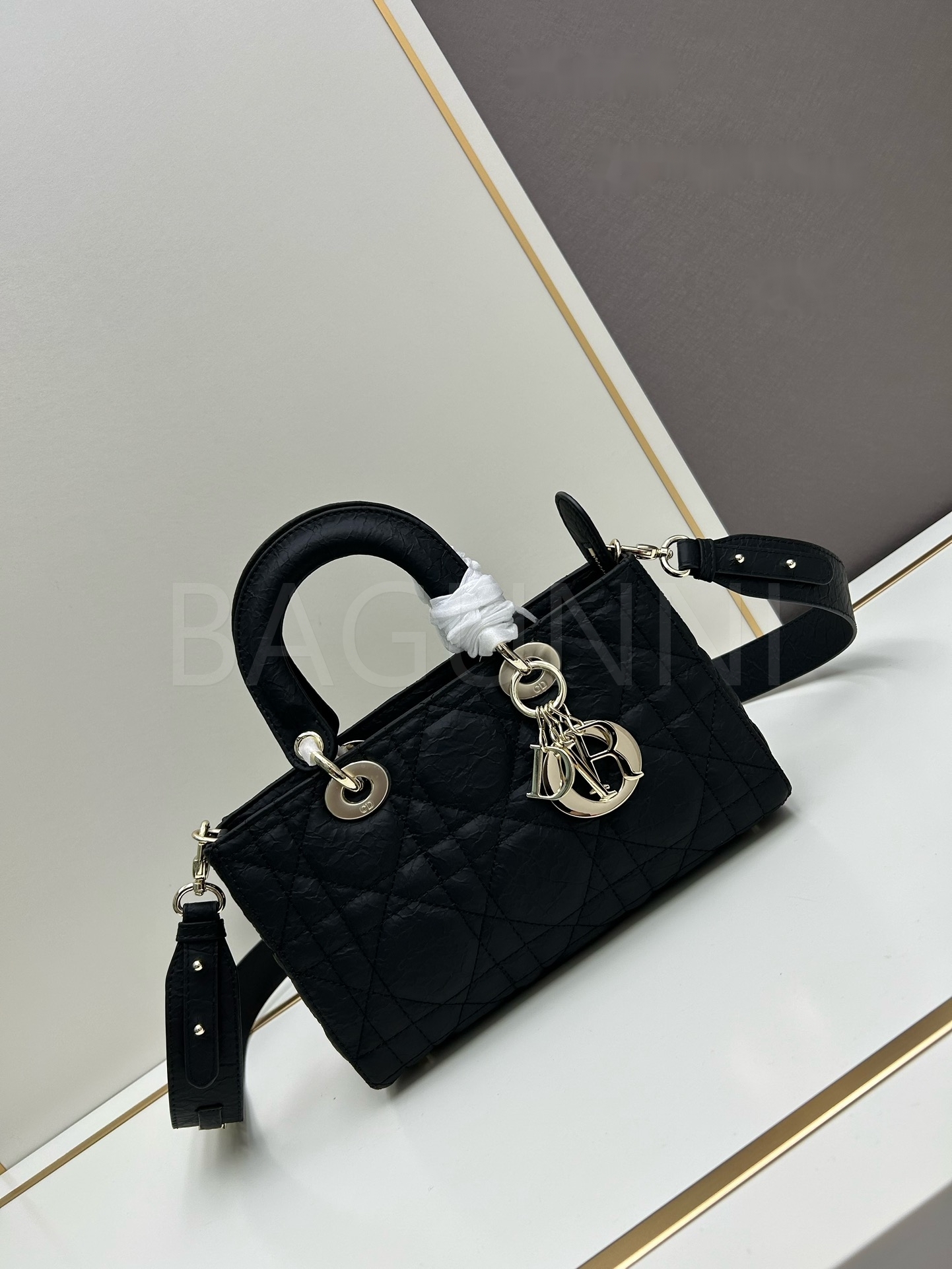 디올 레이디 디올 토트백입니다. 가죽 특유의 질감이 자연스럽게 살아 있으며 블랙 톤이 어우러져 브랜드 특유의 분위기를 편하게 즐기기 좋습니다.
