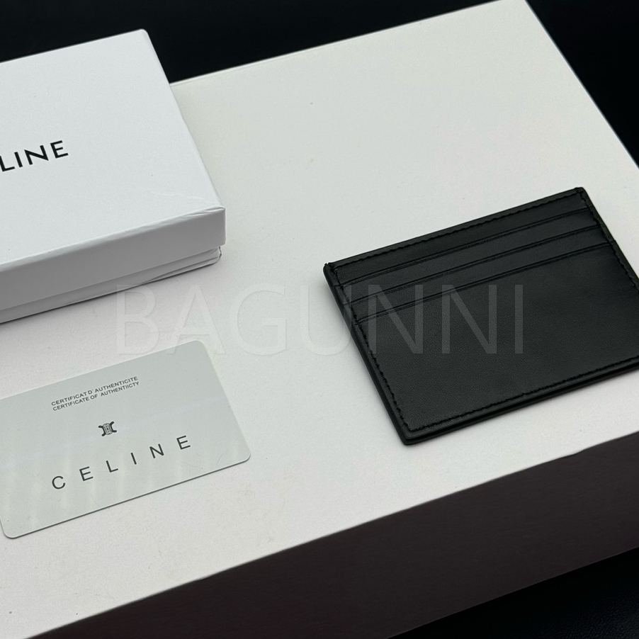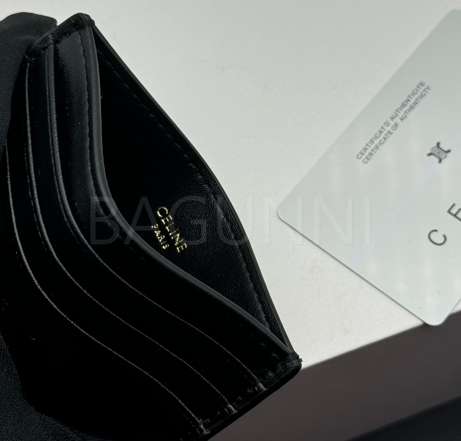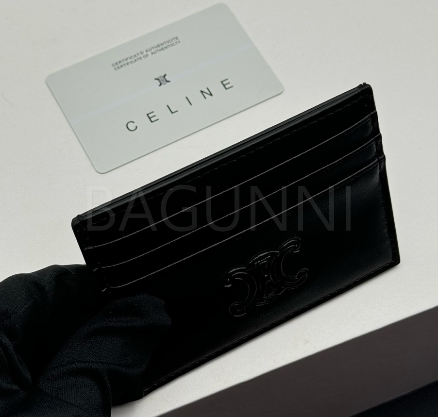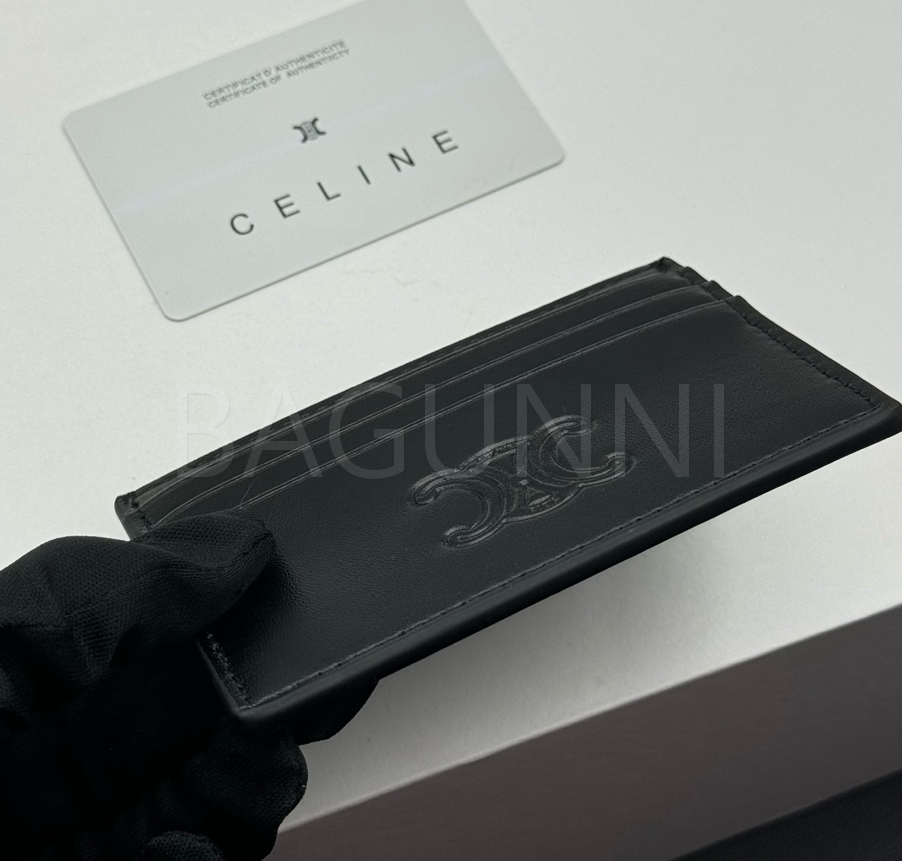 카프스킨의 질감이 돋보이는 셀린느 트리옹프 플랩 카드지갑입니다.