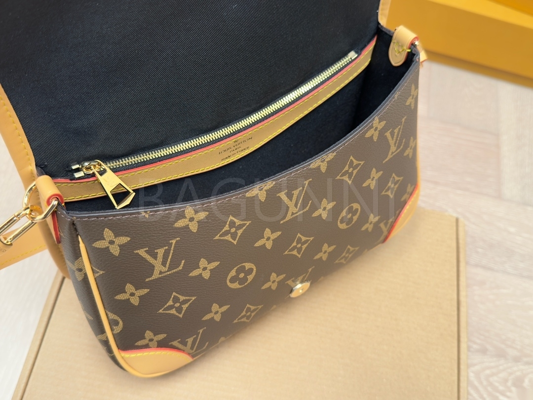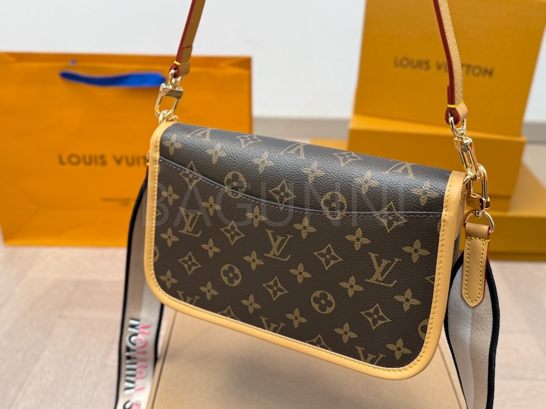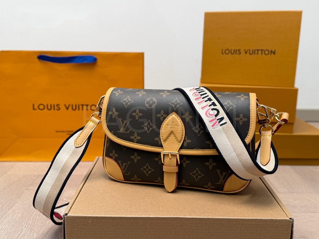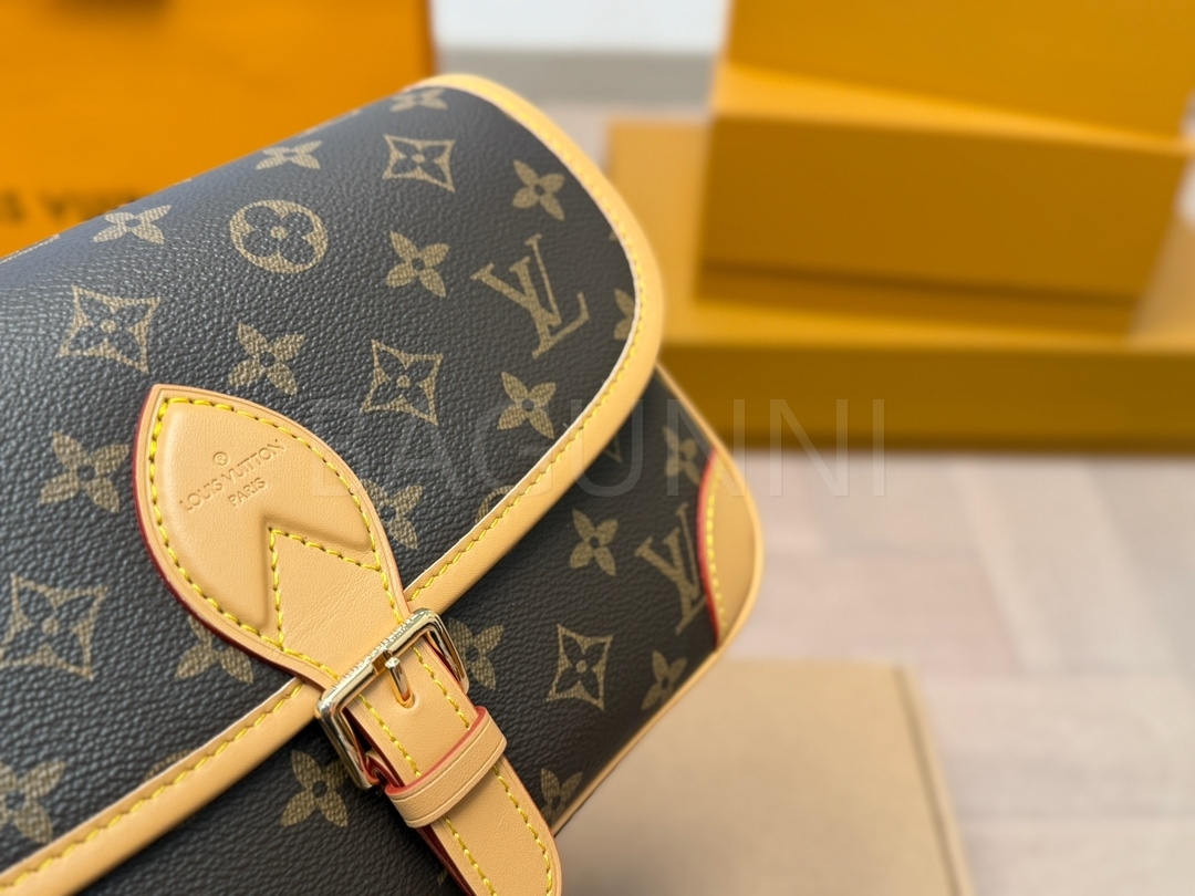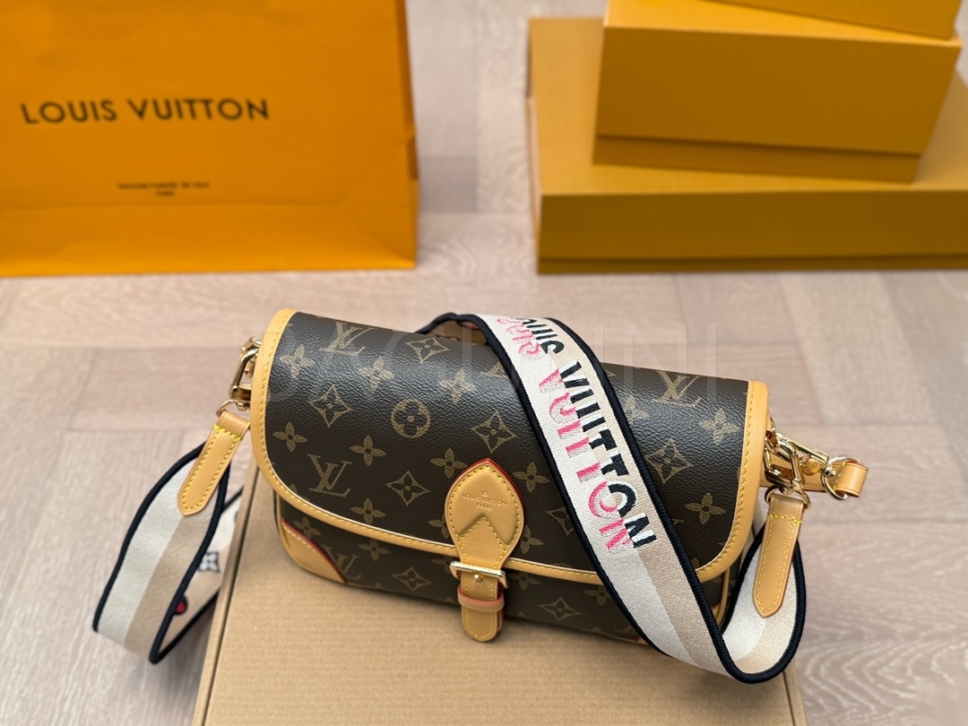 클래식한 캔버스 무드가 돋보이는 루이비통 다이앤 숄더백입니다.