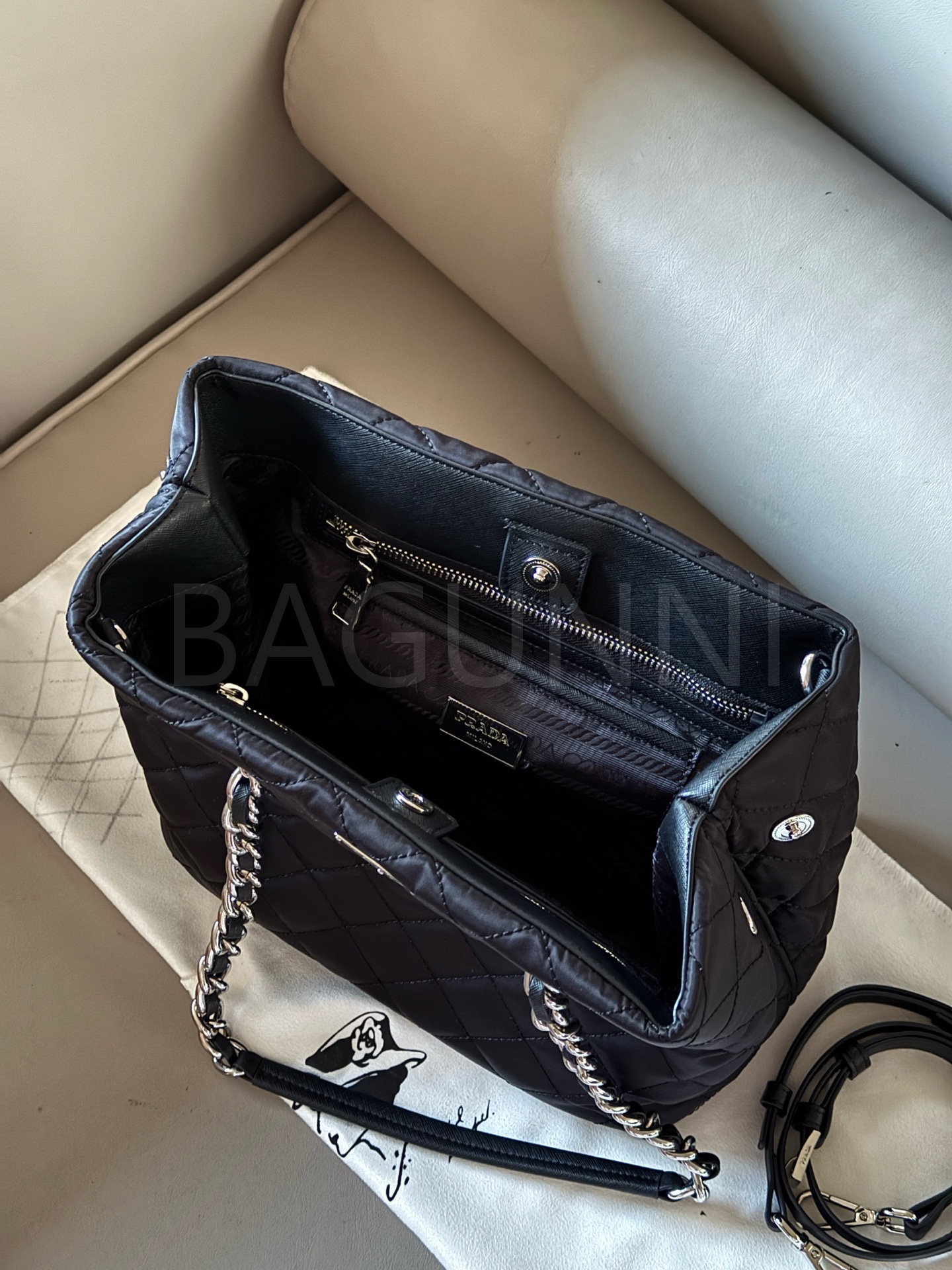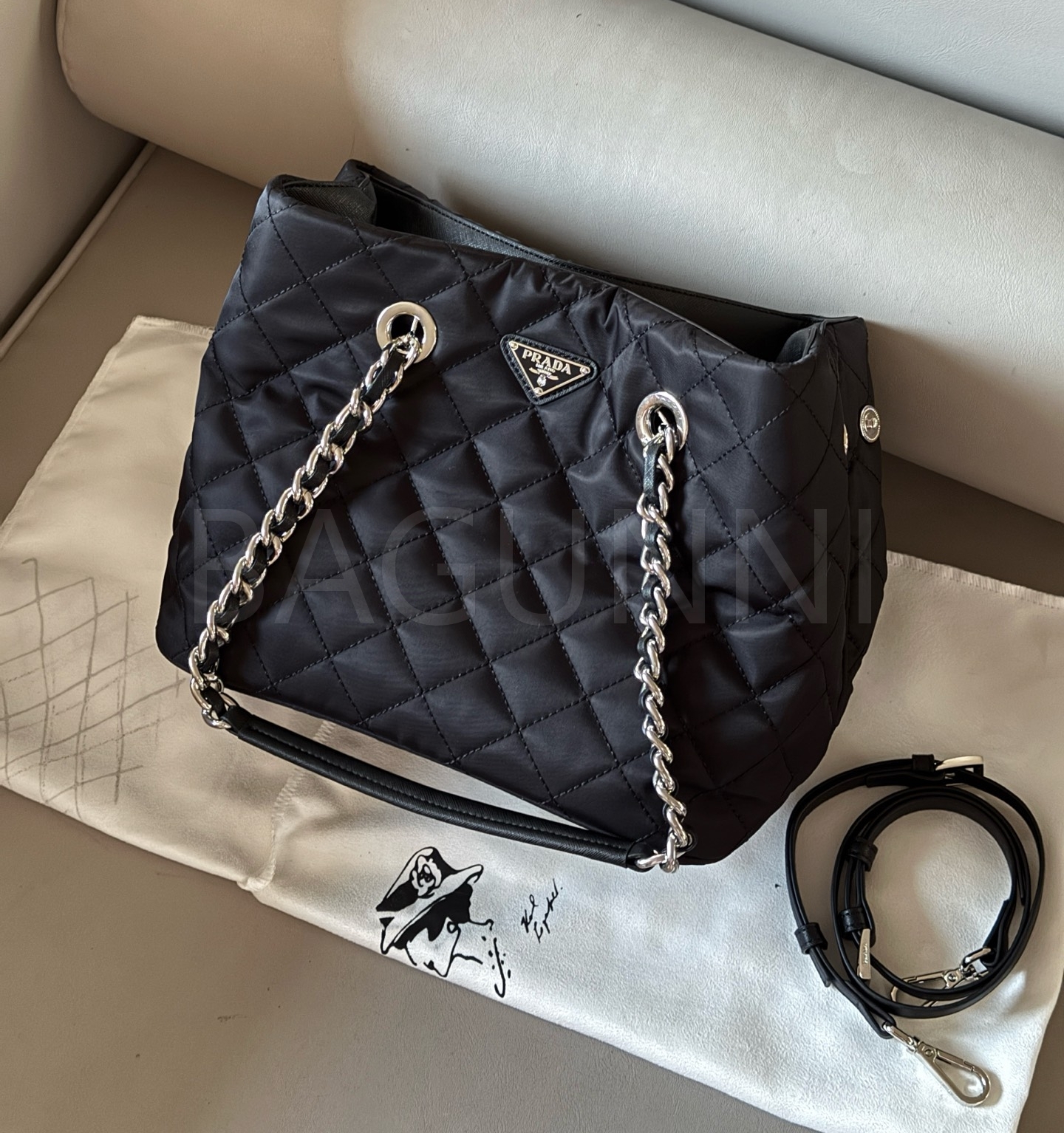 프라다 토트백은 세련된 실루엣을 담은 아이템입니다.