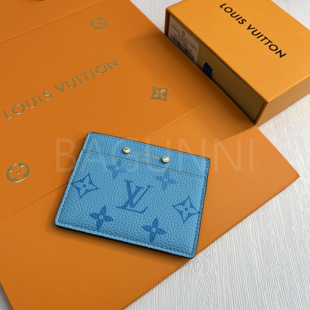 모노그램 앙프렝뜨 레더와 블루으로 데일리로 쓰기 좋고, 작은 소지품을 깔끔하게 정리하기 좋습니다.