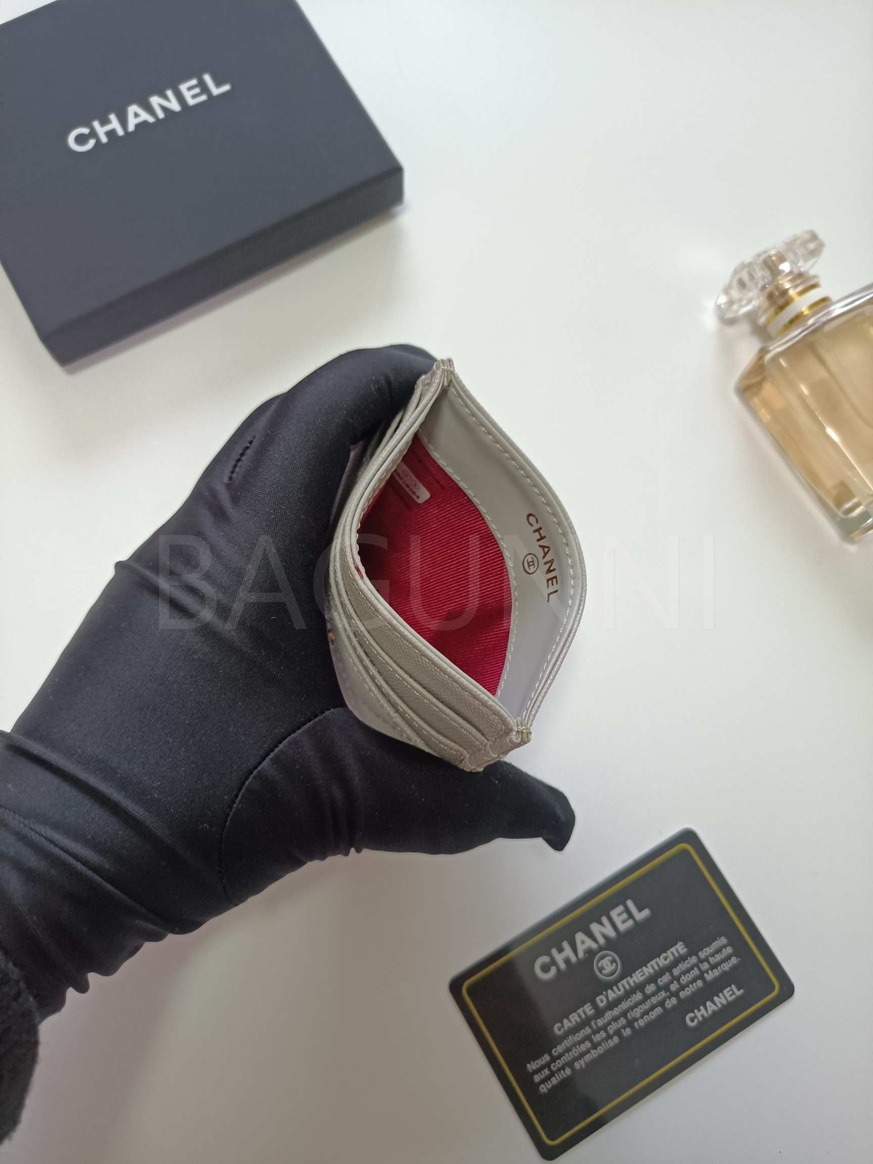 램스킨의 질감이 돋보이는 샤넬 클래식 플랩 카드지갑입니다.