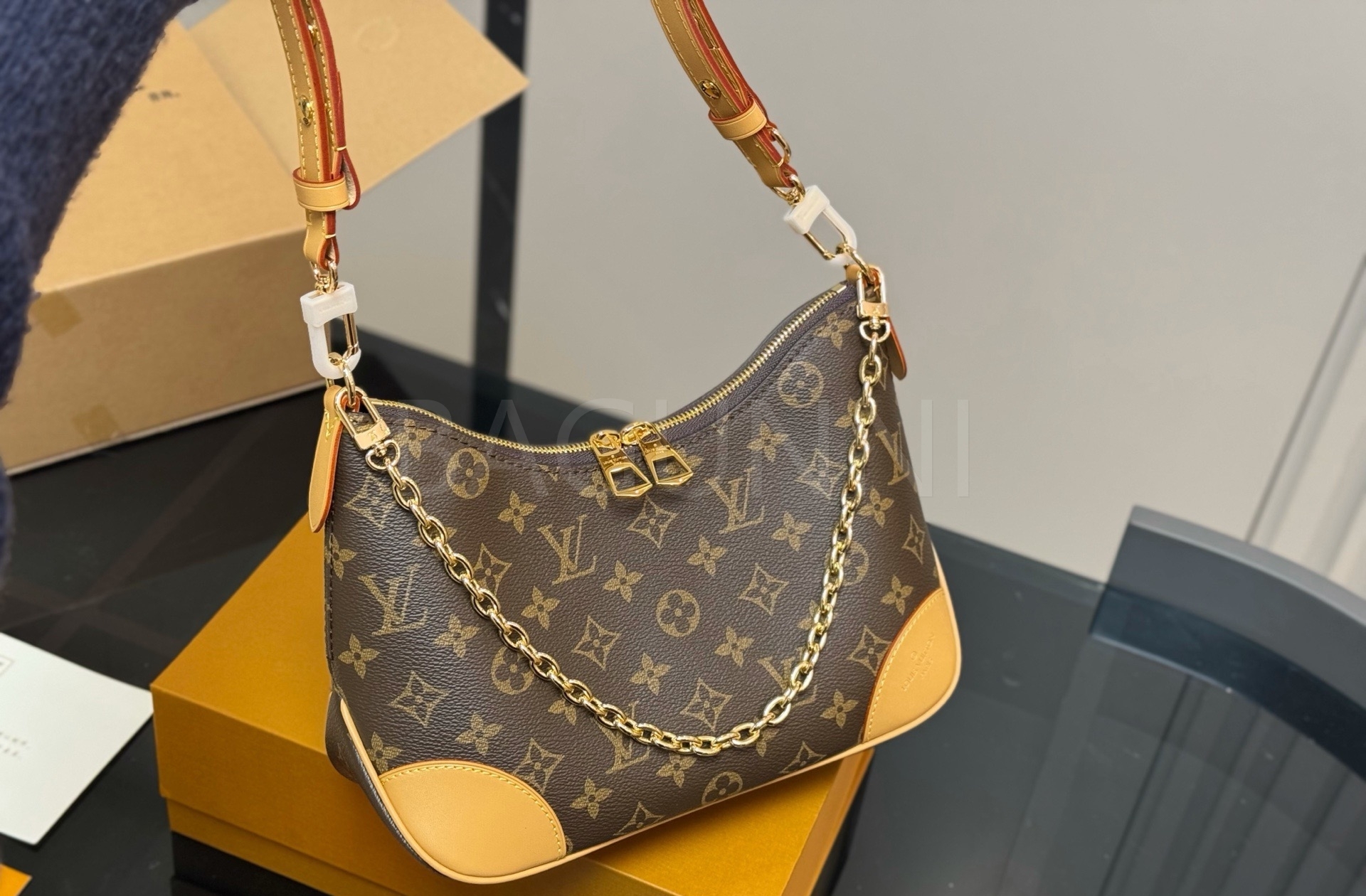 루이비통 체인 숄더백은 세련된 실루엣을 담은 아이템입니다.