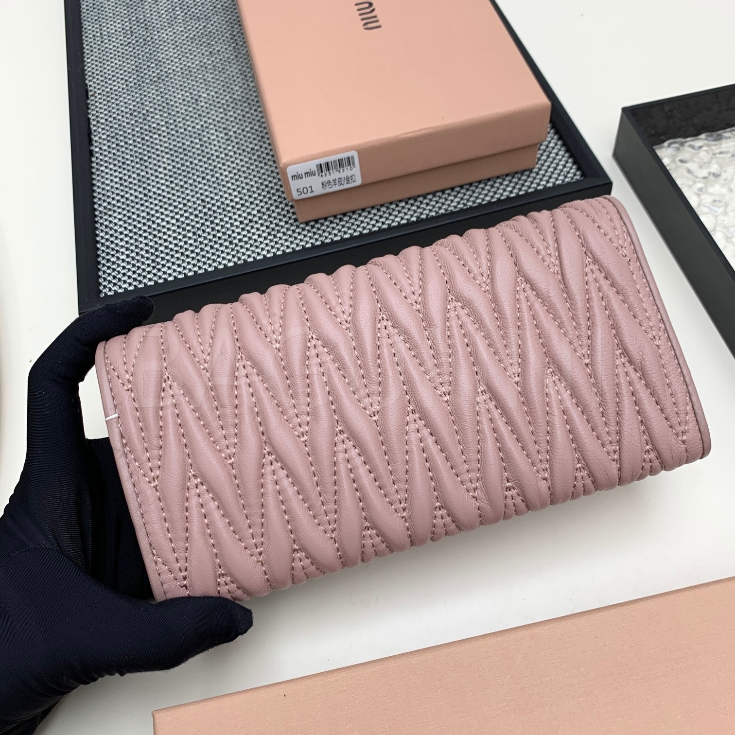 램스킨의 질감이 돋보이는 미우미우 지퍼 카드지갑입니다.