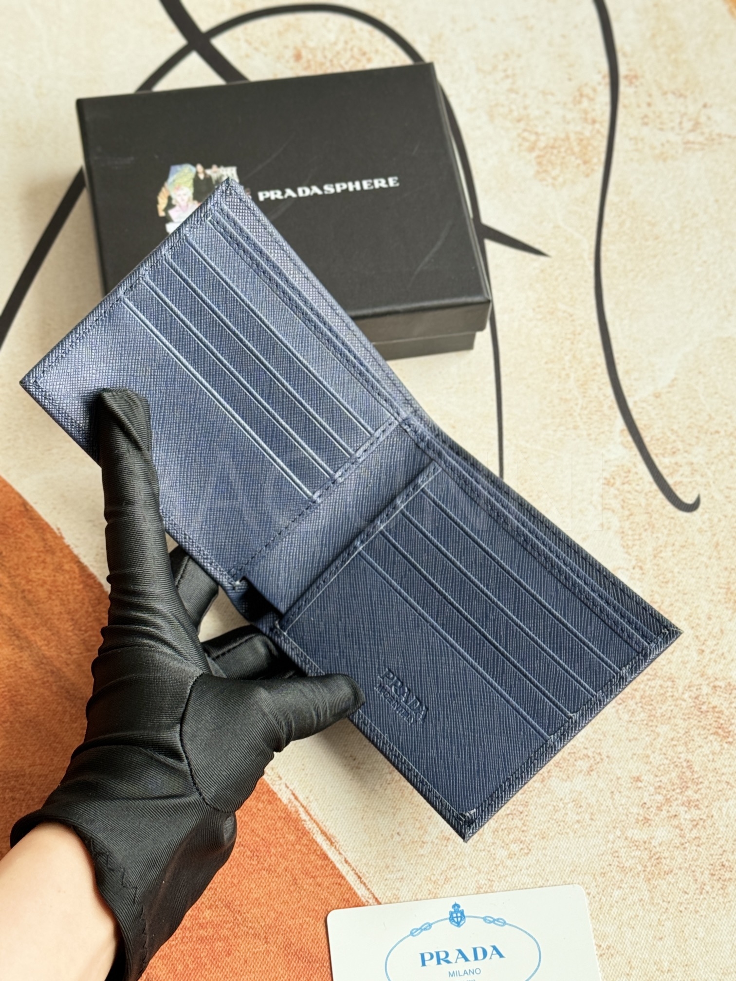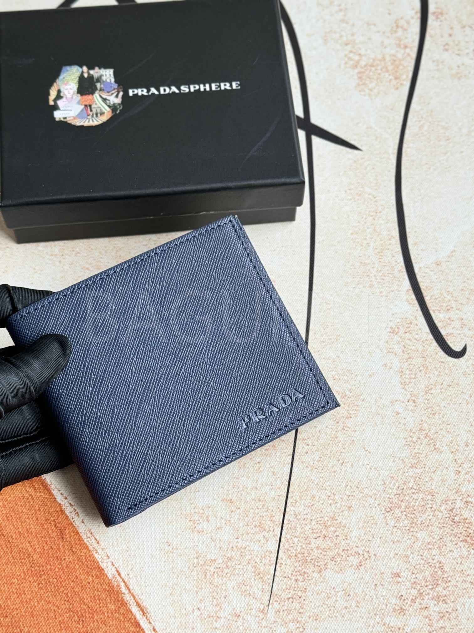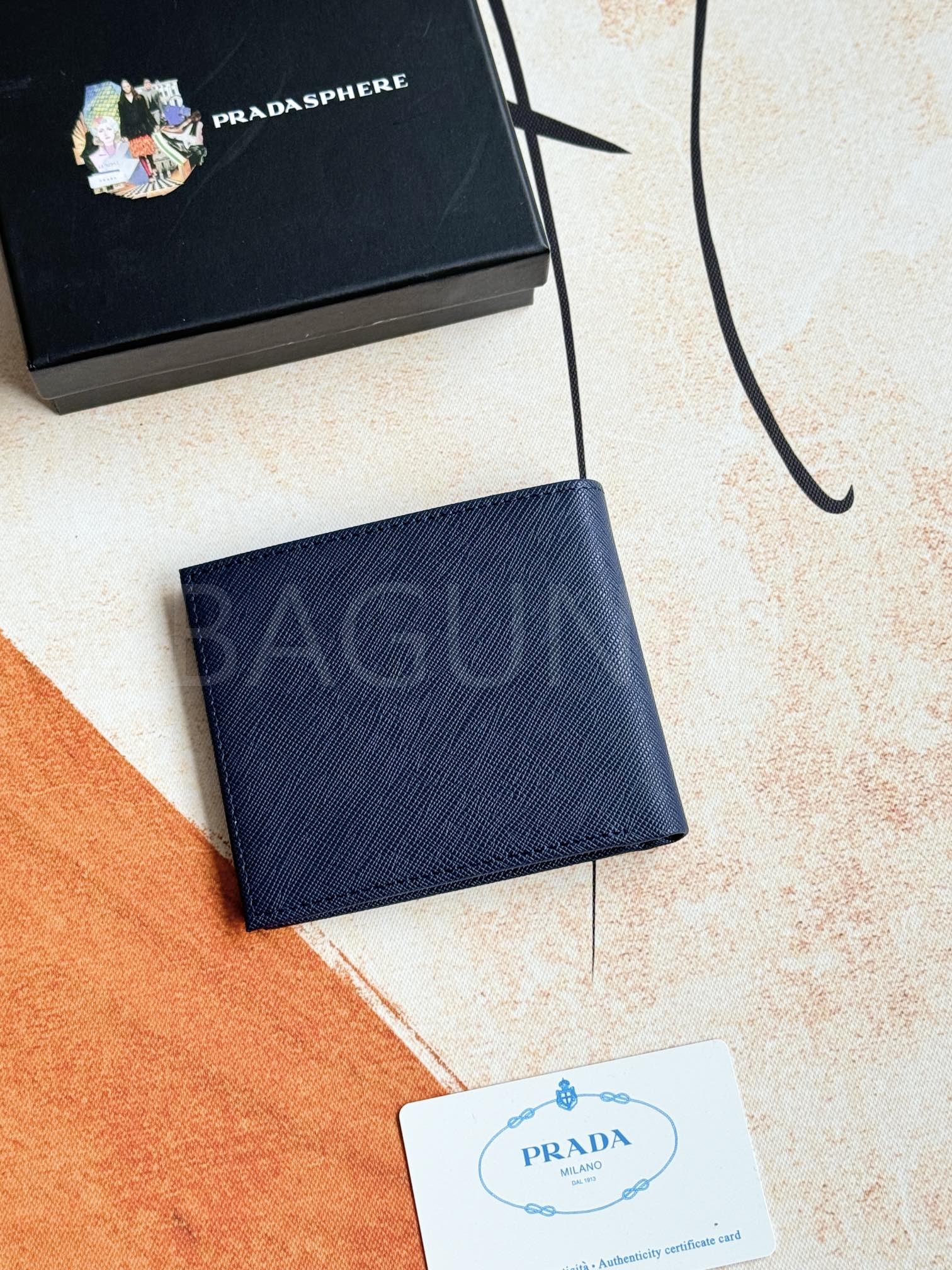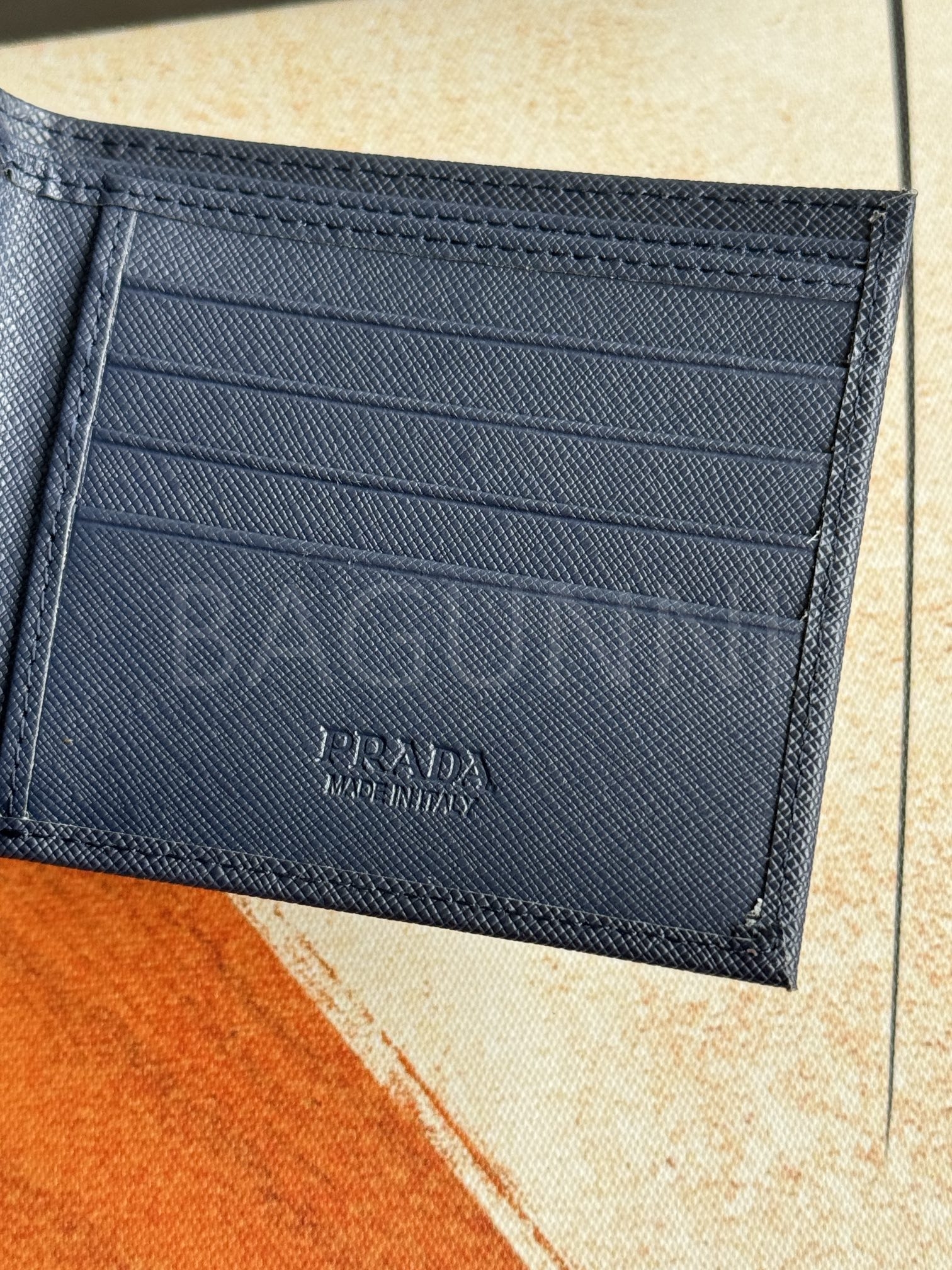카프스킨의 질감이 돋보이는 프라다 지갑입니다.