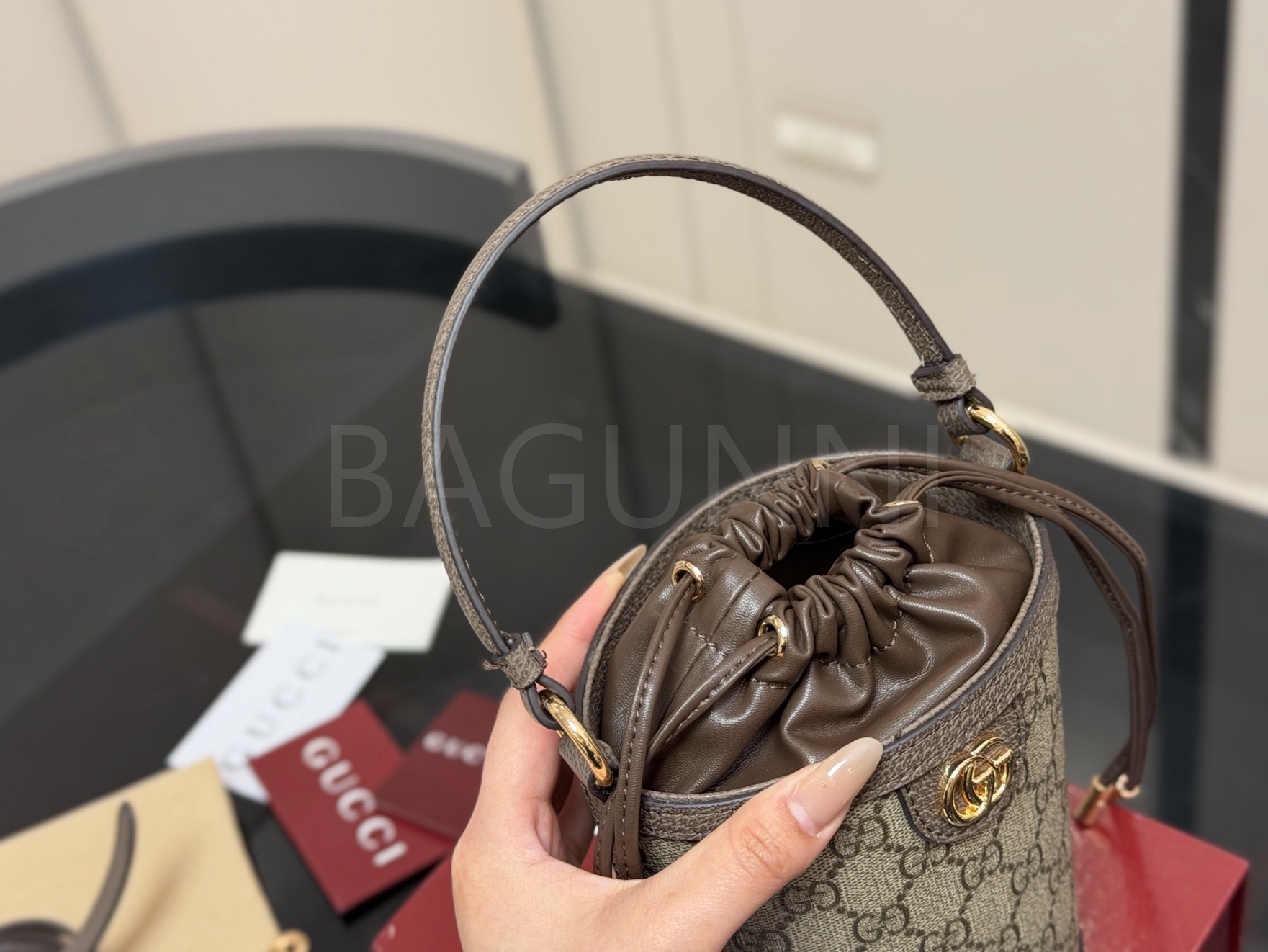 구찌 오피디아 버킷백입니다. 브랜드 특유의 분위기를 편하게 즐기기 좋습니다.