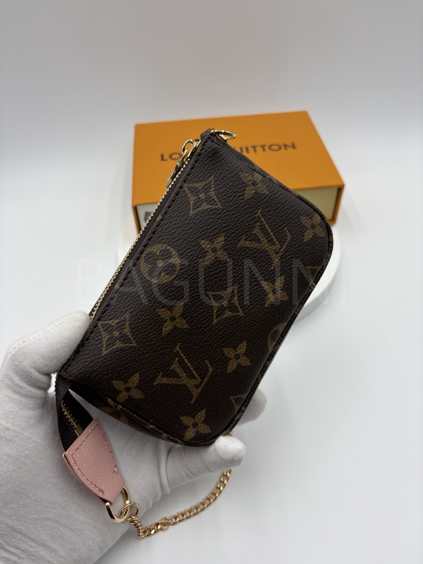 모노그램 앙프렝뜨 레더와 체인 연출 가능으로 데일리로 쓰기 좋고, 작은 소지품을 깔끔하게 정리하기 좋습니다.