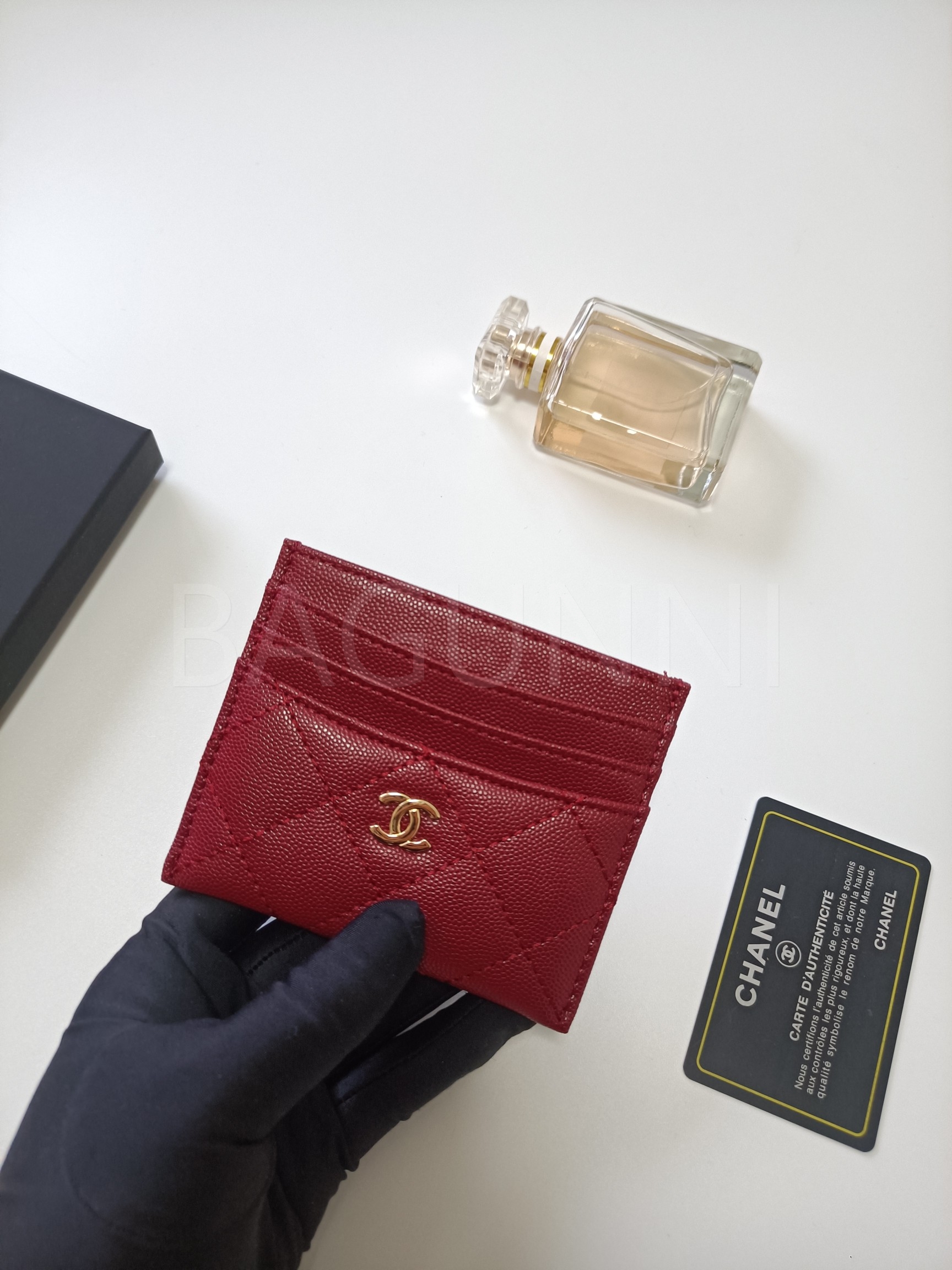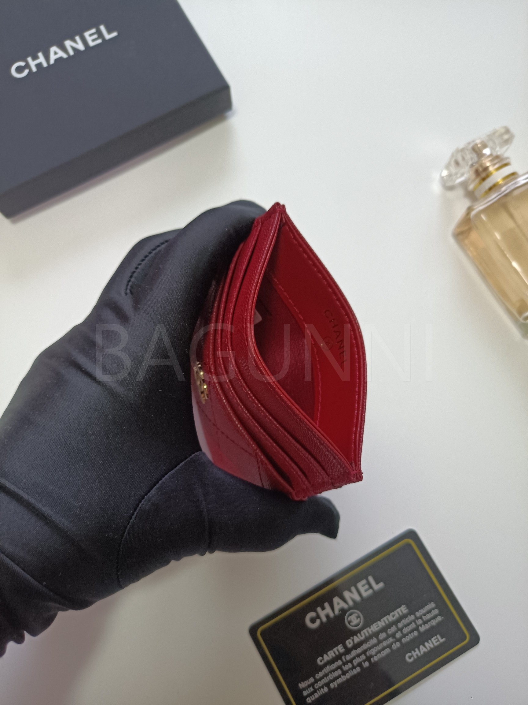 램스킨의 질감이 돋보이는 샤넬 클래식 플랩 카드지갑입니다.