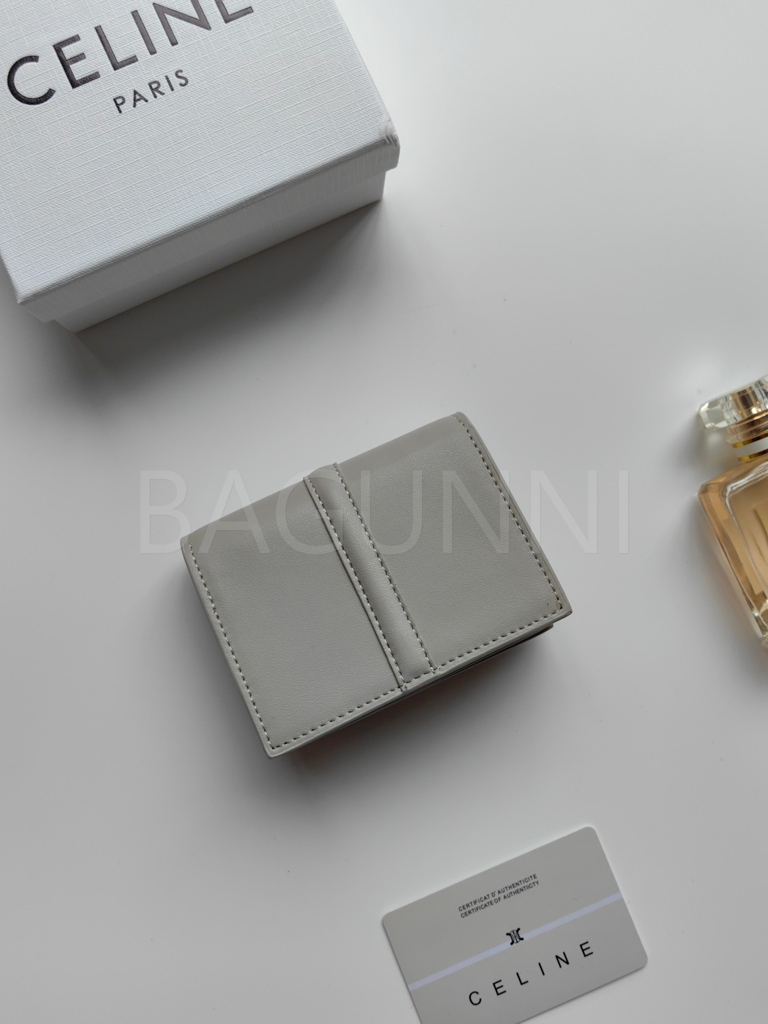 셀린느 특유의 무드가 자연스럽게 살아있는 트리옹프 플랩 카드지갑입니다.